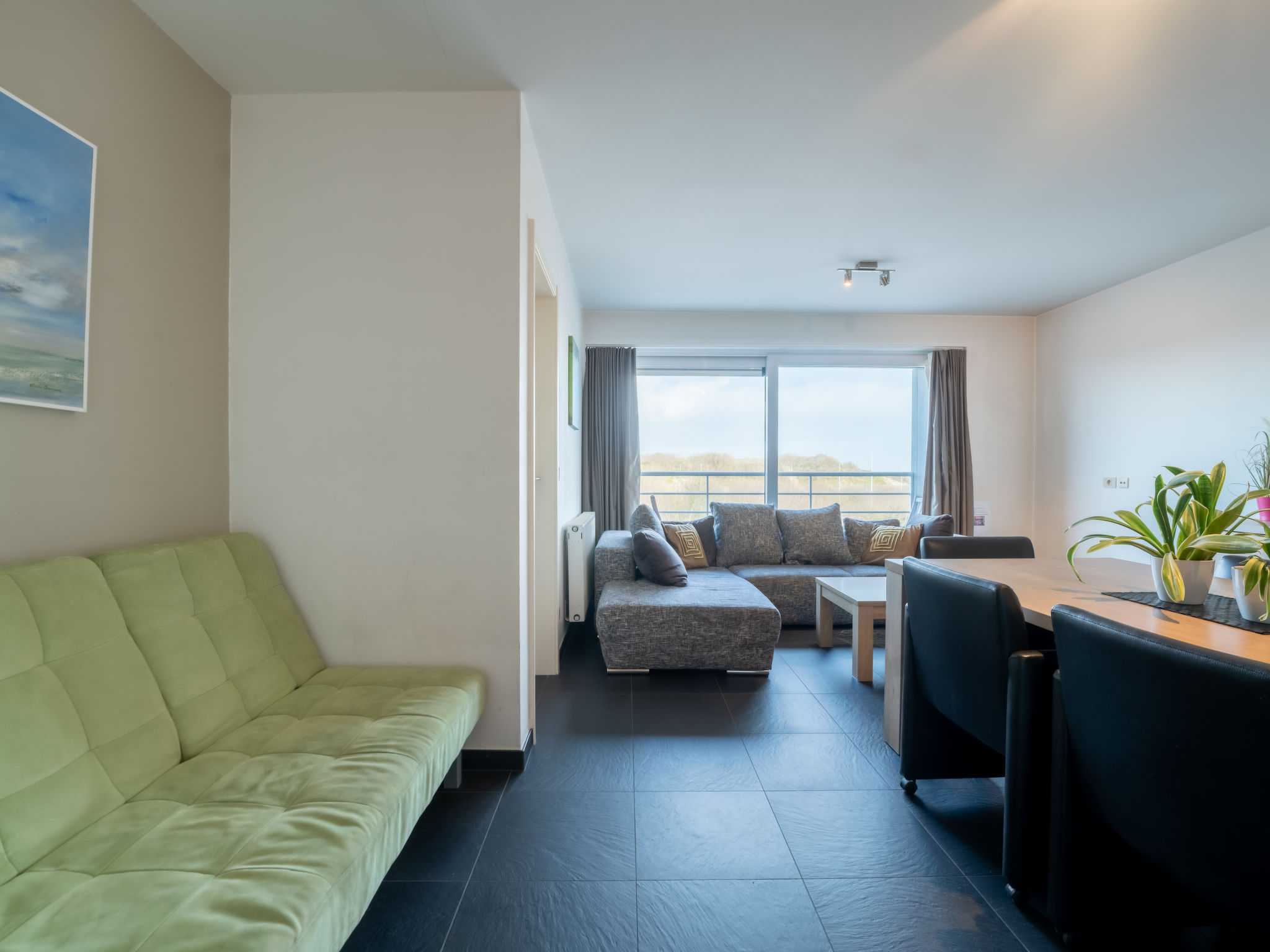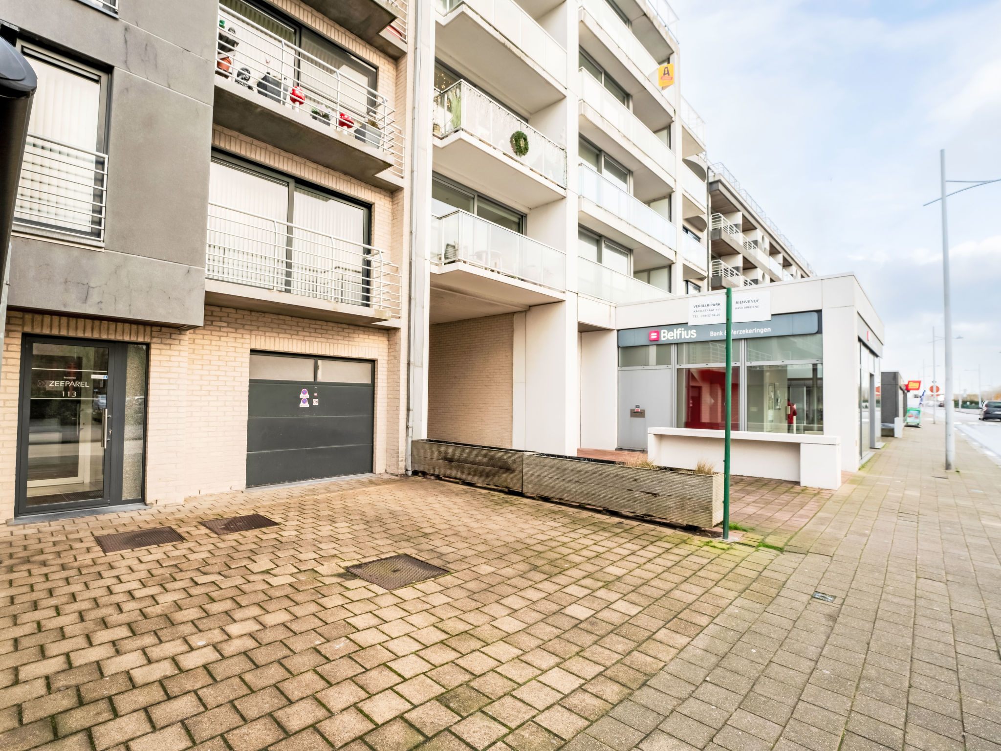 Moderne Residenz "Residentie Zeeparel", auf 5 Stockwerken. Im Ortszentrum von Bredene, 200 m vom Meer, 200 m vom Strand. Im Hause: Fahrstuhl. Öffentliche Parkplätze 20 m extra. Supermarkt, Restaurant, Bar 50 m, Fahrradverleih, Straßenbahn 200 m, Bahnstation "Oostende" 5 km. Nahe gelegene Sehenswürdigkeiten: Markt (dinsdagmorgen) 20 m, Familiepark De Sierk 4 km, Plopsaland De Panne 47 km, Brugge 20 km, Oostende 7 km, Blankenberge (Sea Life) 13 km. Wandergebiete: Beeweg 100 m, Landerijenpad 100 m, Spuikompad 100 m. Gruppen von jungen Leuten nicht erlaubt.