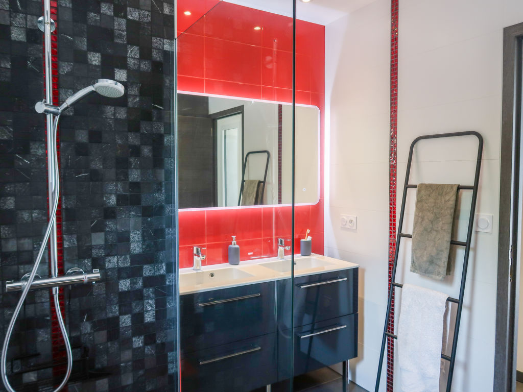Sehr moderne, schöne Villa "Cedelen", Baujahr 2019. 1 km vom Zentrum von Le-Plan-de-la-Tour, in einer Sackgasse, Richtung Südosten. Zur Alleinbenutzung: Grundstück 1'000 m2 (eingezäunt), schöner Garten mit Pflanzen und Bäumen, Schwimmbad (11 x 5 m, 160 cm tief, 01.01.-31.12.) mit Innentreppe und Rollladenabdeckung. Poolhaus, Boccia, Terrasse (40 m2), Gartenmöbel, Grill, Parkplatz (für 2 Autos). Einkaufsgeschäft 1 km, Einkaufszentrum 6 km, Bäckerei 1 km, Sandstrand "Sainte Maxime" 10 km. Wanderwege ab Haus 300 m. Nahe gelegene Sehenswürdigkeiten: Ste.Maxime 10 km, Sainte Tropez 18 km, Domaine Viticole Les Marquets 30 m. Der Besitzer akzeptiert keine Gruppen. Bitte beachten: Der Besitzer wohnt auf dem gleichen Grundstück.