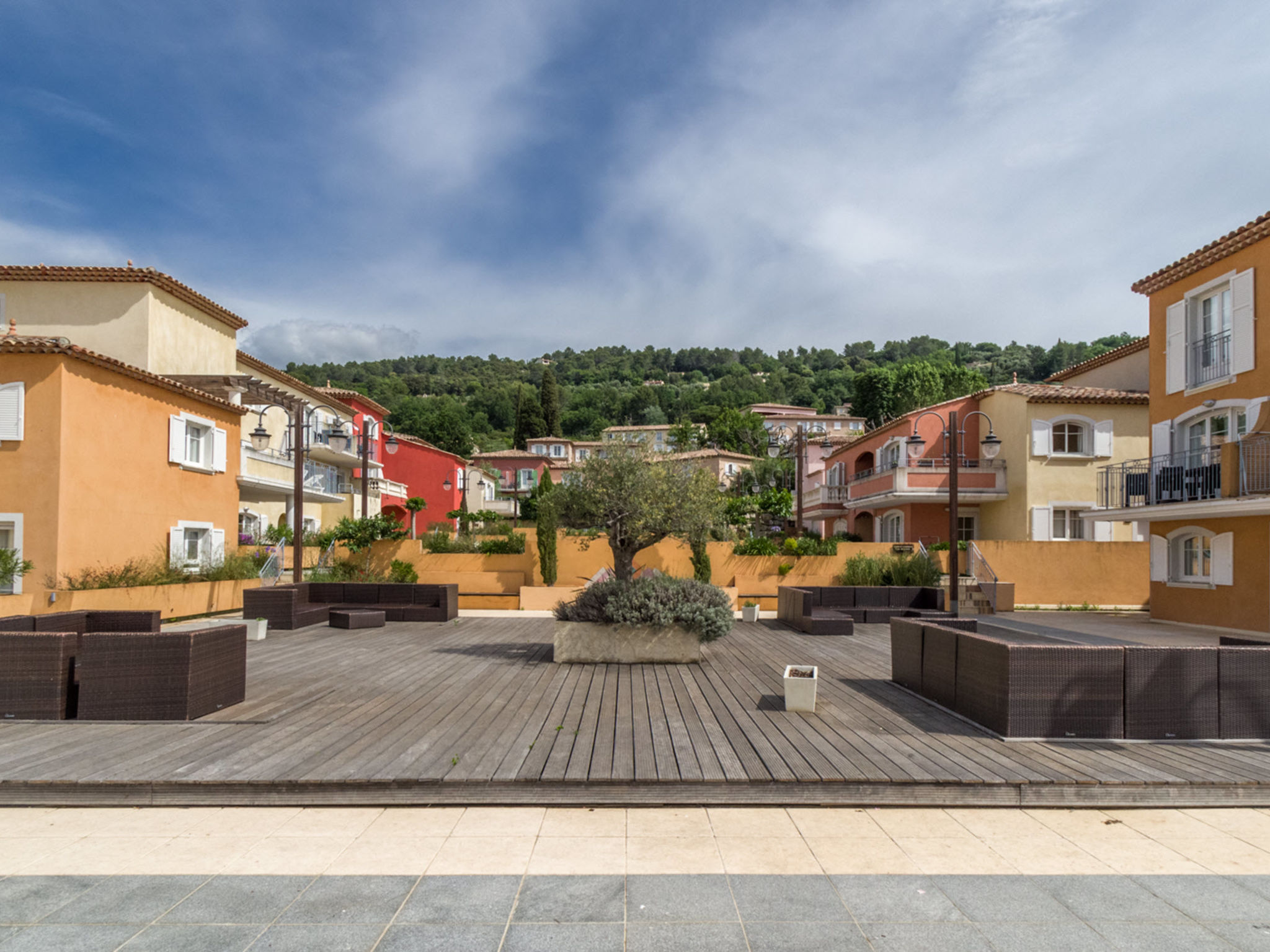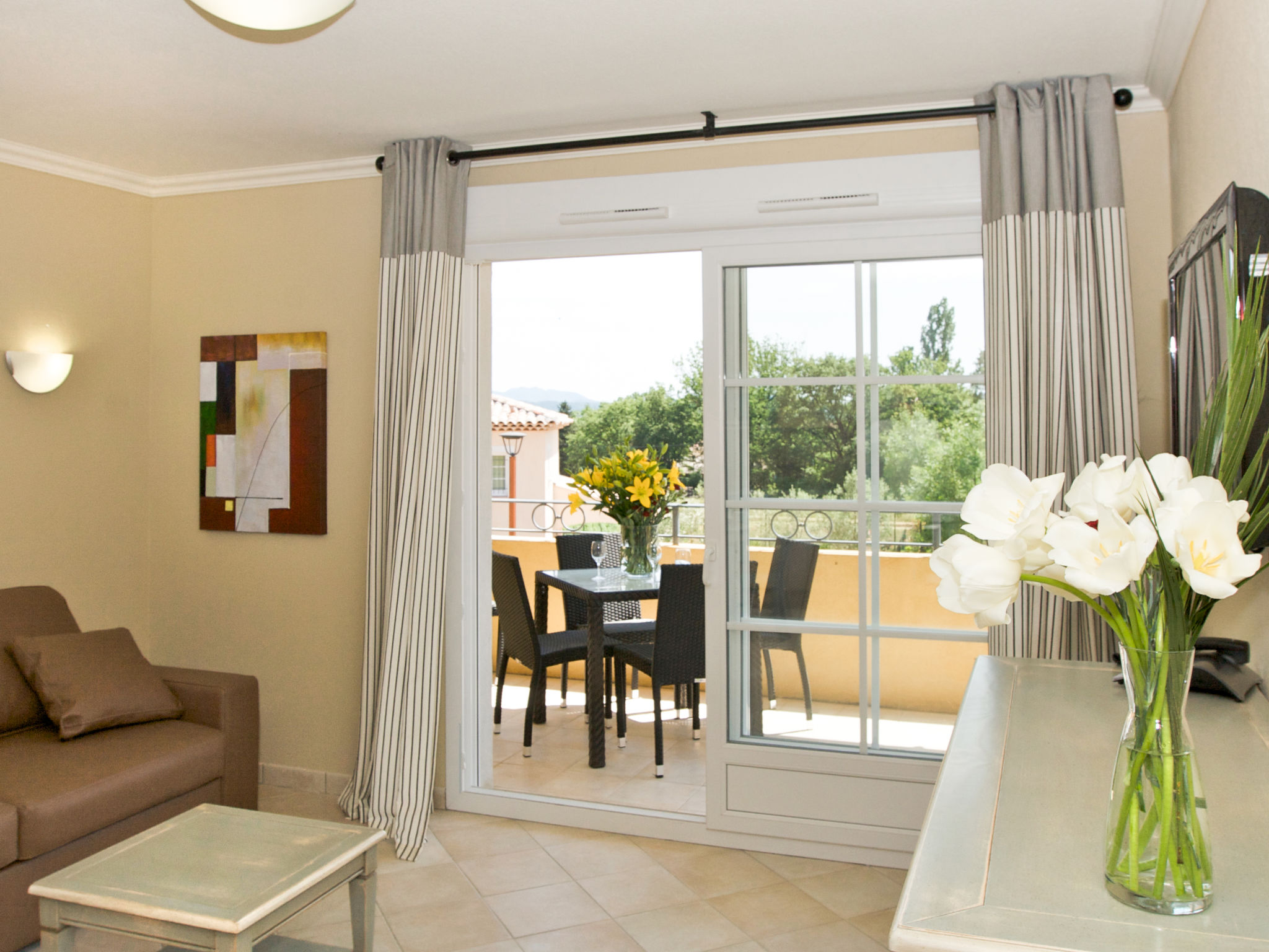 Ferienanlage "Domaine de Camiole", auf 3 Stockwerken. 18 Häuser in der Residenz. 183 Wohnungen in der Residenz. 1 km vom Zentrum von Callian, am Ortsrand, 25 km vom Zentrum von Grasse, 32 km vom Zentrum von Mandelieu, 32 km vom Meer, 8 km vom See. Zur Mitbenutzung: Grundstück 70'000 m2, Bäumen, 2 Schwimmbäder (saisonale Verfügbarkeit: 04.Apr.-30.Sep.). Kinderbecken, Tischtennis, Boccia. In der Anlage: Sauna, Fitnessraum, Massage (extra). Dampfbad, Sprudelbad (extra). Tischtennis, Waschmaschine, Wäschetrockner (zur Mitbenutzung, extra). Frühstück möglich (extra). Parkplatz. Einkaufsgeschäft 1 km, Sandstrand 32 km. Das Foto ist nur ein Wohnungsbeispiel. Die Mietobjekte können sich in Wohnfläche, Raumaufteilung, Ausstattung und Einrichtung unterscheiden. Zusätzlich zu den zwei Außenpools gibt es einen Wellnessbereich bestehend aus einem beheizten Hallenbad, Sprudelbad, Sauna und Dampfbad (kein Zutritt für Kinder unter 18 Jahren).
