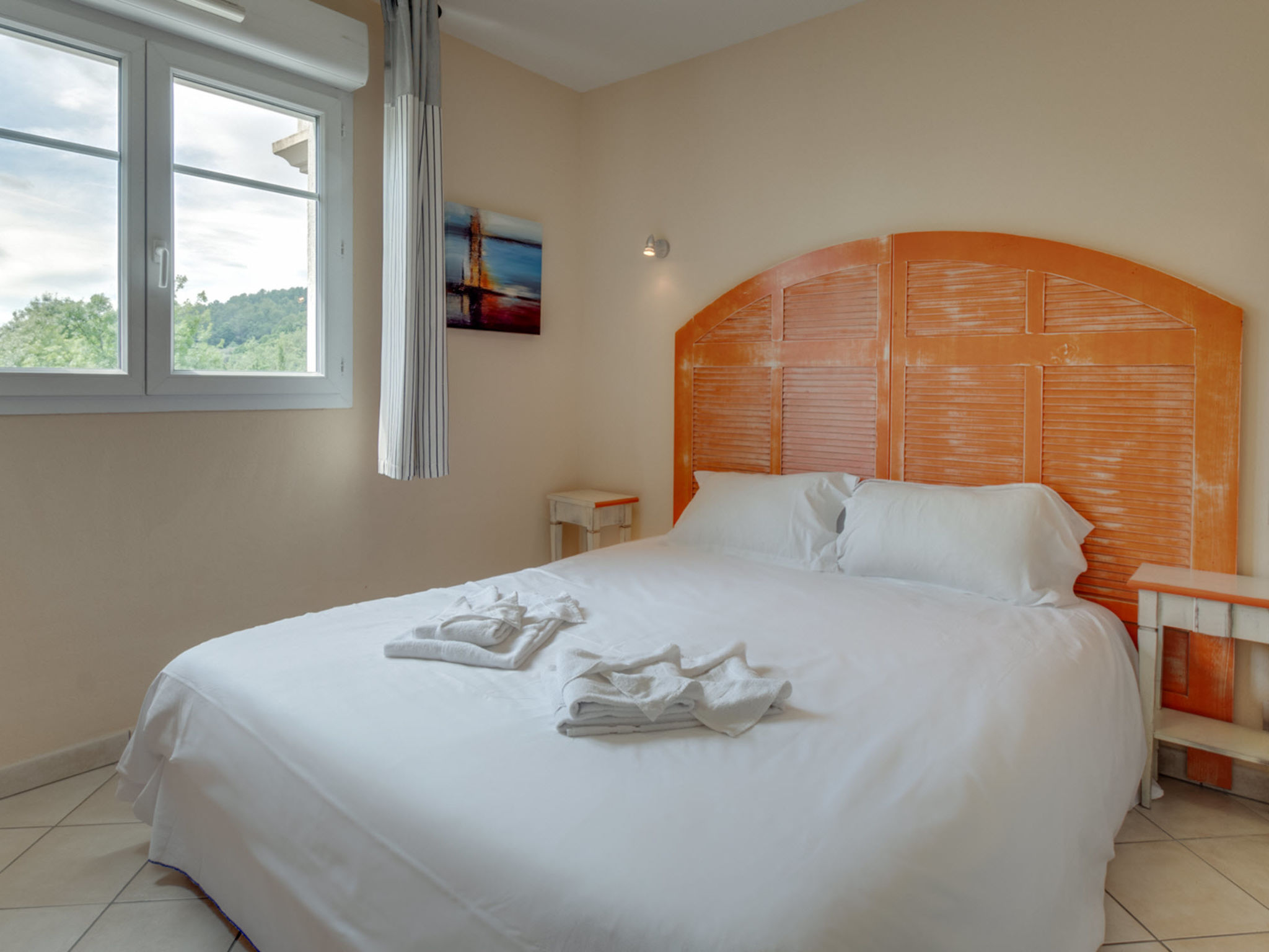 Ferienanlage "Domaine de Camiole", auf 3 Stockwerken. 18 Häuser in der Residenz. 183 Wohnungen in der Residenz. 1 km vom Zentrum von Callian, am Ortsrand, 25 km vom Zentrum von Grasse, 32 km vom Zentrum von Mandelieu, 32 km vom Meer, 8 km vom See. Zur Mitbenutzung: Grundstück 70'000 m2, Bäumen, 2 Schwimmbäder (saisonale Verfügbarkeit: 04.Apr.-30.Sep.). Kinderbecken, Tischtennis, Boccia. In der Anlage: Sauna, Fitnessraum, Massage (extra). Dampfbad, Sprudelbad (extra). Tischtennis, Waschmaschine, Wäschetrockner (zur Mitbenutzung, extra). Frühstück möglich (extra). Parkplatz. Einkaufsgeschäft 1 km, Sandstrand 32 km. Das Foto ist nur ein Wohnungsbeispiel. Die Mietobjekte können sich in Wohnfläche, Raumaufteilung, Ausstattung und Einrichtung unterscheiden. Zusätzlich zu den zwei Außenpools gibt es einen Wellnessbereich bestehend aus einem beheizten Hallenbad, Sprudelbad, Sauna und Dampfbad (kein Zutritt für Kinder unter 18 Jahren).