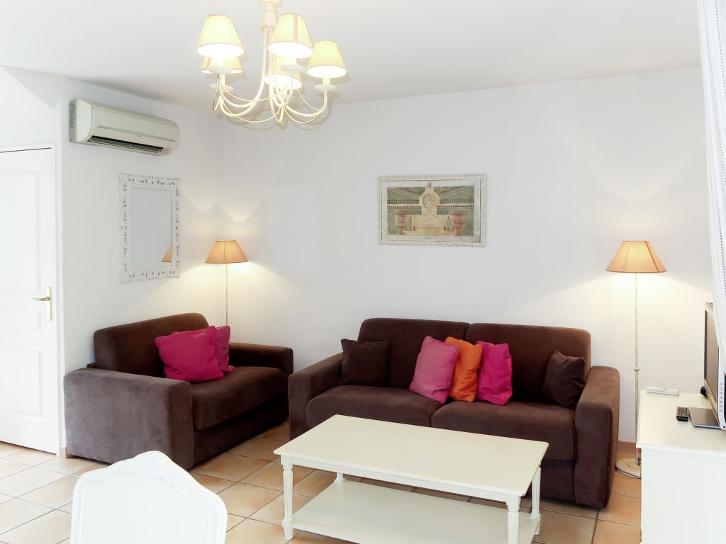 "Les Bastides des Chaumettes (MTA130)", 3-Zimmer-Reihenhaus 40 bis 55 m2. Objekt geeignet für 4 Erwachsene. Zweckmässig und schön eingerichtet: Wohn-/Schlafzimmer mit 1 Doppeldiwanbett, Esstisch, TV und Klimaanlage. Ausgang zur Terrasse. 1 Zimmer mit 1 franz. Bett. 1 Zimmer mit 2 Betten. Kochnische (Geschirrspüler, 4 Glaskeramikherd Platten, Mikrowelle, Tiefkühler, elektrische Kaffeemaschine). Bad oder Dusche/WC. E-Heizung. Terrasse. Terrassenmöbel. Zur Verfügung: Kinderhochstuhl, Babybett (extra). Internet (Wireless LAN, extra). Parkplatz. Maximal 2 Haustiere/Hunde erlaubt. Alternativ kann das Reihenhaus auch auf 2 Ebenen angelegt sein. Bedingt durch das Coronavirus (COVID-19) ergreift diese Unterkunft Maßnahmen, um die Sicherheit der Gäste und Mitarbeiter zu gewährleisten. Einige Services und Einrichtungen können daher nur eingeschränkt bzw. teilweise auch gar nicht nutzbar sein.