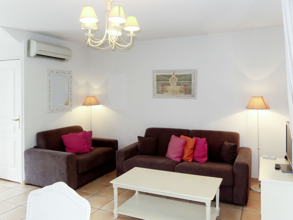 "Les Bastides des Chaumettes (MTA131)", 3-Zimmer-Reihenhaus 63 m2 auf 2 Stockwerken. Objekt geeignet für 6 Erwachsene. Zweckmässig und schön eingerichtet: Wohn-/Schlafzimmer mit 1 Diwanbett, 1 Doppeldiwanbett, Esstisch, TV und Klimaanlage. Ausgang zur Terrasse. Kochnische (Geschirrspüler, 4 Glaskeramikherd Platten, Mikrowelle, Tiefkühler, elektrische Kaffeemaschine). Dusche, sep. WC. Obergeschoss: 1 Zimmer mit 1 franz. Bett. 1 Zimmer mit 2 Betten. Schlafnische mit 1 Bett. Bad, sep. WC. E-Heizung. Terrasse. Terrassenmöbel. Zur Verfügung: Kinderhochstuhl, Babybett (extra). Internet (Wireless LAN, extra). Parkplatz. Maximal 2 Haustiere/Hunde erlaubt. Bedingt durch das Coronavirus (COVID-19) ergreift diese Unterkunft Maßnahmen, um die Sicherheit der Gäste und Mitarbeiter zu gewährleisten. Einige Services und Einrichtungen können daher nur eingeschränkt bzw. teilweise auch gar nicht nutzbar sein.