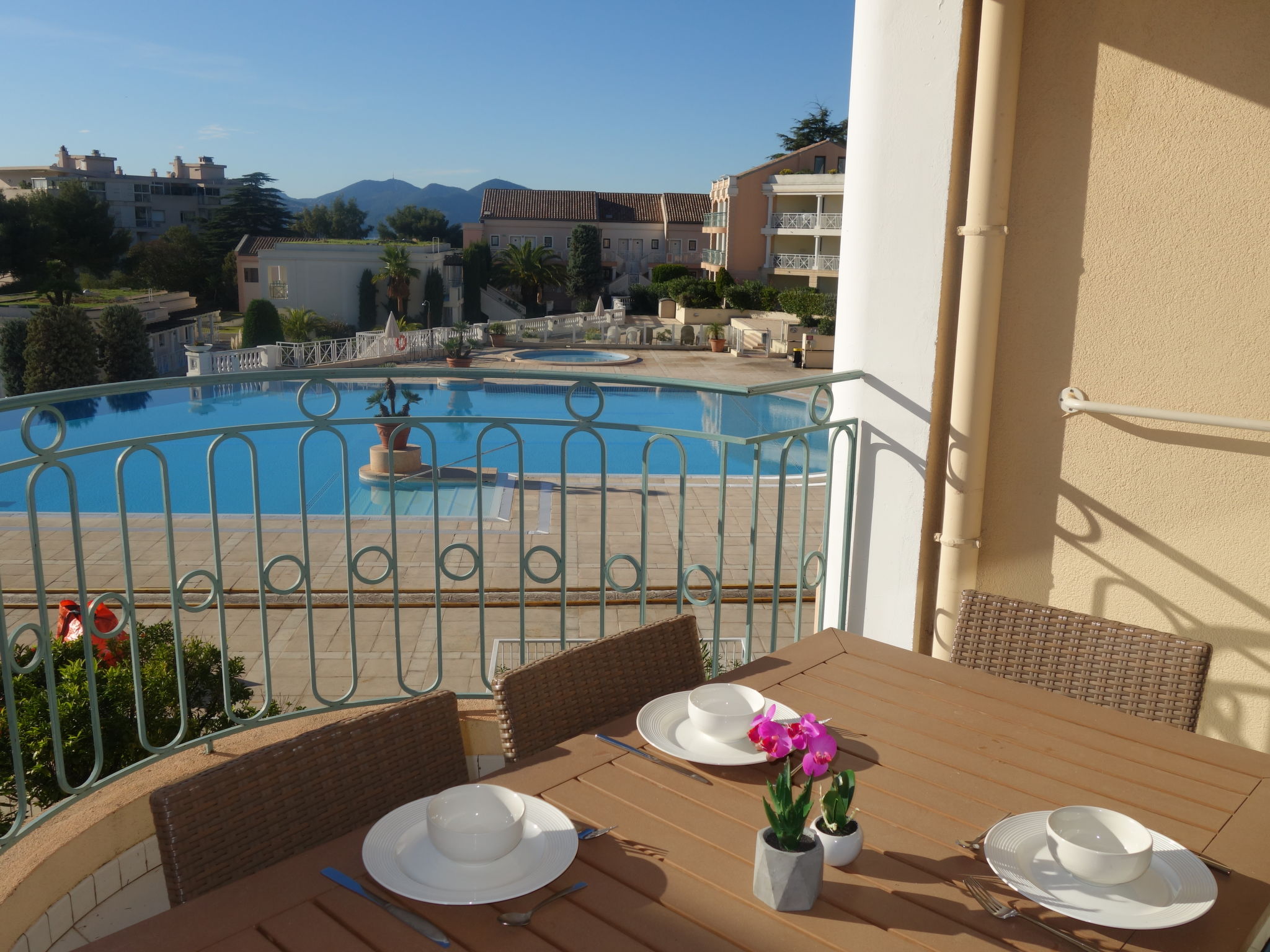 Kinderfreundliche, komfortable Ferienanlage "Villa Francia", auf 2 Stockwerken. Am Ortsrand, 2.5 km vom Zentrum von Cannes, 650 m vom Meer, 650 m vom Strand. Zur Mitbenutzung: gepflegter Garten Pflanzen und Blumen, Schwimmbad geschützt, eingezäunt (40 x 30 m, 60 - 300 cm tief, saisonale Verfügbarkeit: 01.Jun.-30.Sep.) mit Innentreppe. Kinderbecken, Aussendusche, Tennis (15.05.-30.09.) (extra), Tischtennis, Kinderspielplatz. In der Anlage: Empfang, Restaurant, Waschmaschine, Wäschetrockner (zur Mitbenutzung, extra). Parkplatz (überdacht) auf dem Grundstück. Lebensmittelgeschäft, Restaurant, Bäckerei 50 m, Bushaltestelle 300 m, Sandstrand "Des sports" 650 m. Sporthafen 2 km. Nahe gelegene Sehenswürdigkeiten: Palais des Festivals 2.5 km, Suquet 1.9 km, Aquasplash - Antibes land 21 km, Antibes 14 km, Nice 35 km, Aqualand Frejus 38 km. Bitte beachten: Fahrzeug empfohlen.