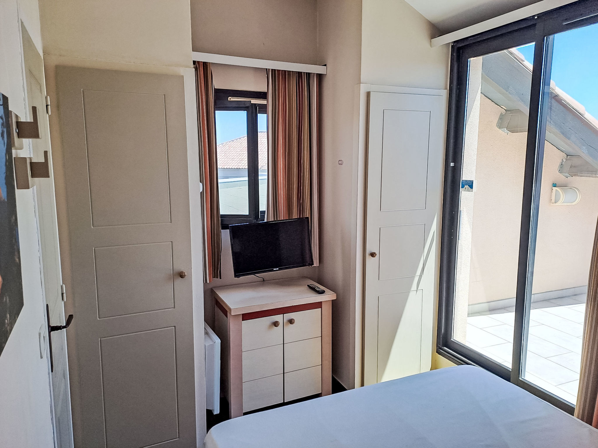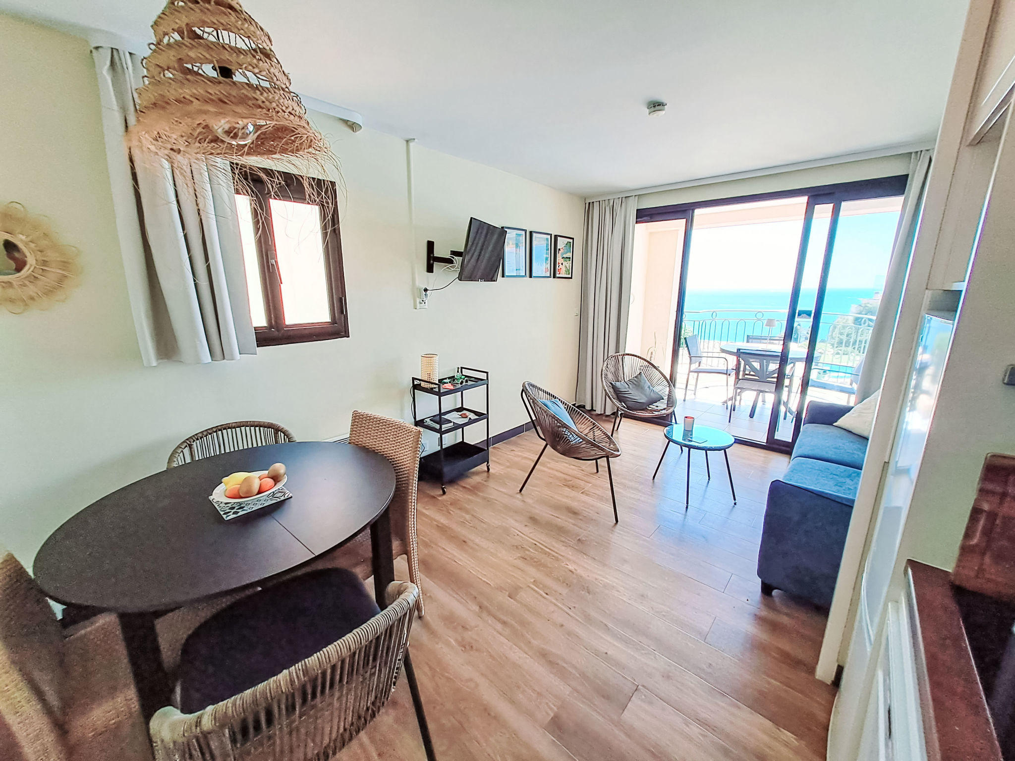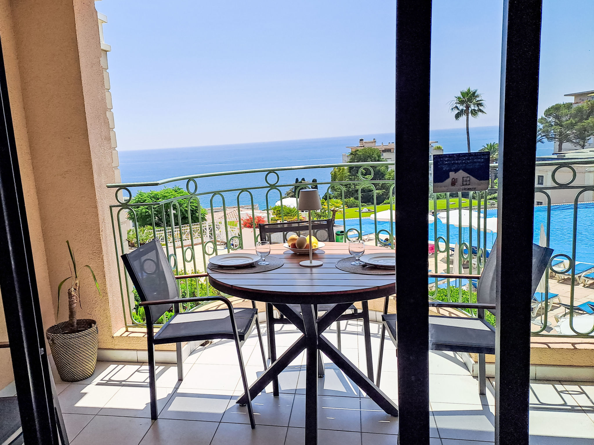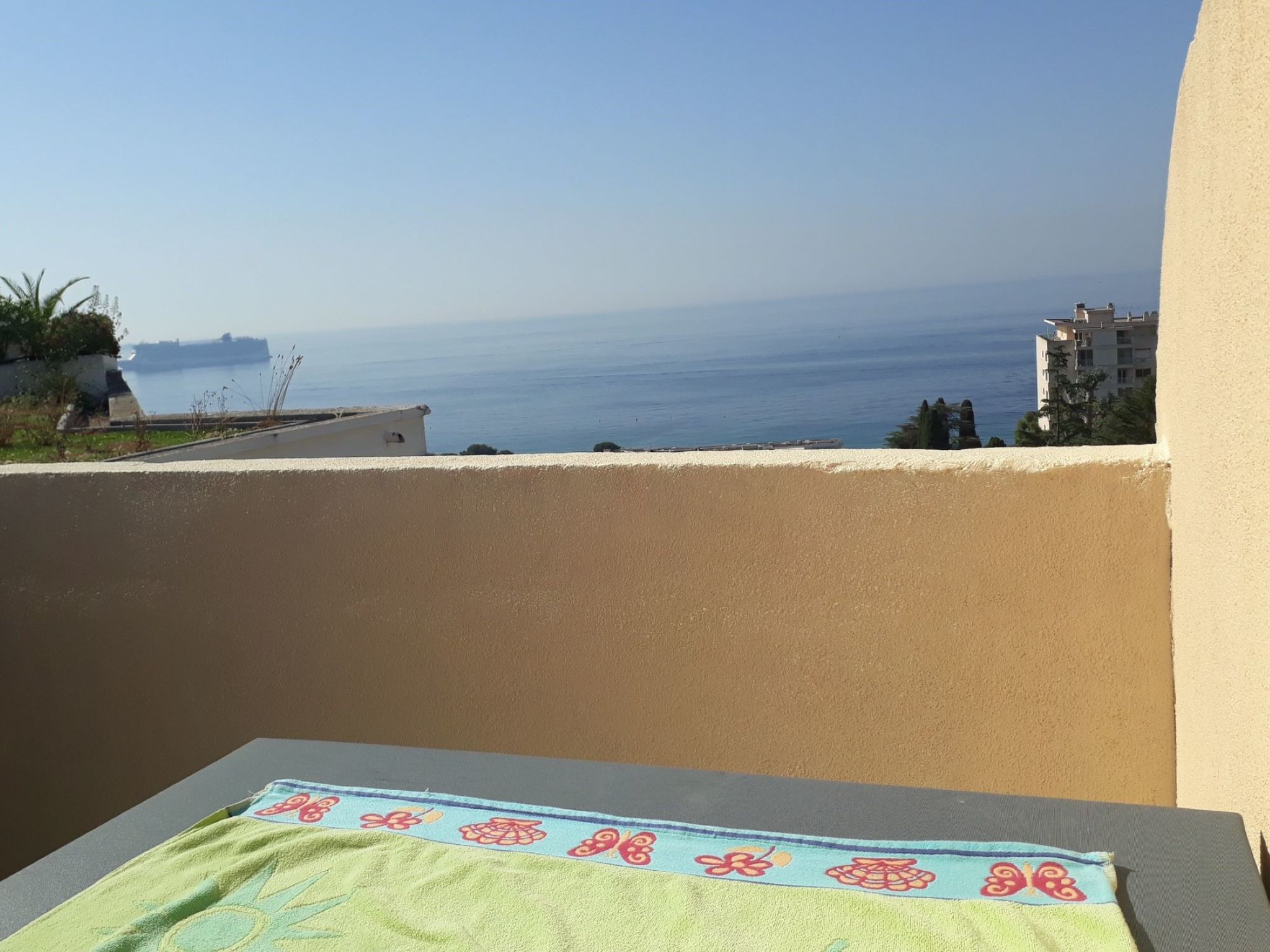 3-Zimmer-Maisonette-Wohnung 40 m2 im 2. Stock. Komfortabel und schön eingerichtet: Wohn-/Esszimmer mit Panoramafenster mit TV. Ausgang zur Terrasse. 1 kleines Zimmer mit 1 x 2 Etagenbetten (90 cm, Länge 190 cm). Offene Küche (Geschirrspüler, 4 Glaskeramikherd Platten, Mikrowelle, elektrische Kaffeemaschine). Dusche/WC. E-Heizung. Obergeschoss: 1 Zimmer mit Panoramafenster mit 1 franz. Bett (1 x 140 cm, Länge 190 cm), TV. Ausgang zur Terrasse. Bad/WC. Terrasse 10 m2, Terrasse 15 m2. Terrassenmöbel. Sehr schöne Panoramasicht auf das Meer und das Schwimmbad. Zur Verfügung: Waschmaschine. Internet (Wireless LAN, gratis). Bitte beachten: Rauchmelder. Inserat einer Privatperson nach Artikel 155, IV, CGI. 06029013282AK
