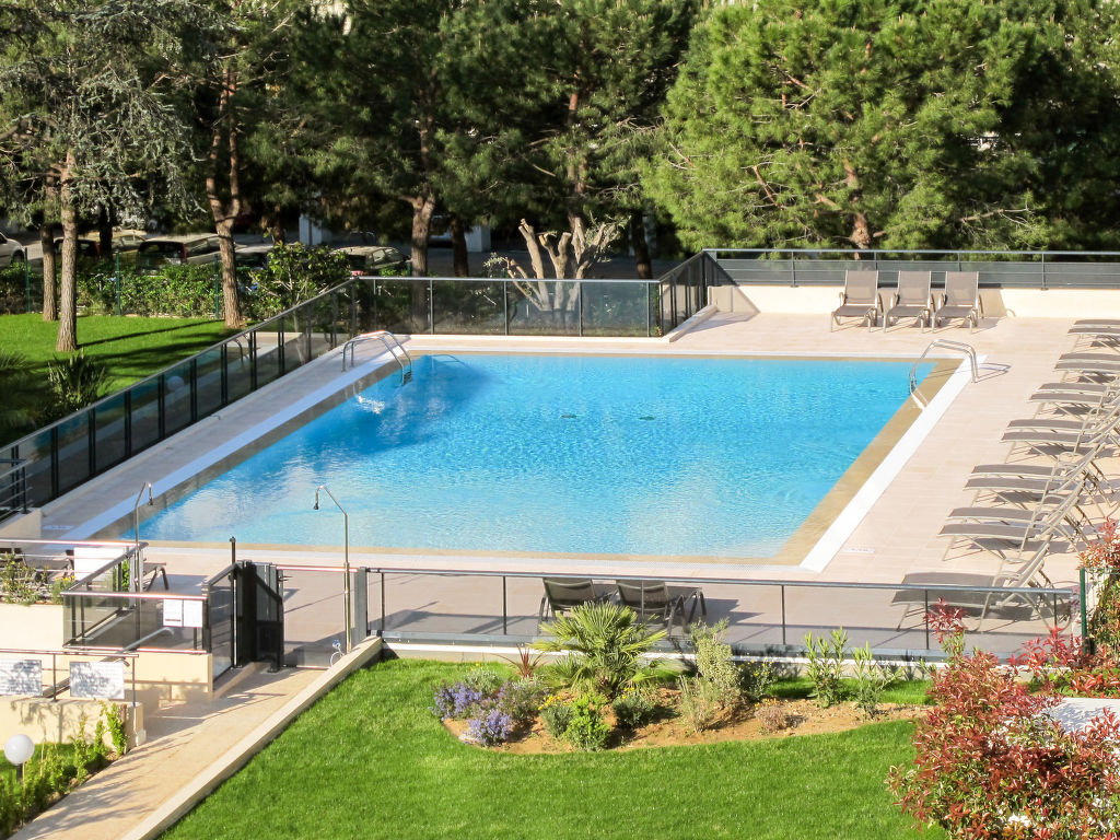 Moderne Ferienanlage "Le Lido", auf 5 Stockwerken. 100 Wohnungen in der Residenz. 2 km vom Zentrum von Cagnes-sur-Mer, 10 km vom Zentrum von Nizza, 12 km vom Zentrum von Antibes, zentrale Lage, 400 m vom Meer. Zur Mitbenutzung: Grundstück 5 ha mit Rasen und Bäumen, Schwimmbad (15 x 10 m, saisonale Verfügbarkeit: 21.Mar.-07.Nov.). Dusche/WC im Poolbereich, Terrasse. In der Anlage: Empfang, Frühstücksraum, Sauna, Fitnessraum, Massage (extra). Dampfbad, Sprudelbad, Billard, Fahrstuhl, Waschmaschine, Wäschetrockner (zur Mitbenutzung, extra). Frühstück möglich (extra). Parkplatz (beschränkte Anzahl), Gemeinschaftsgarage (extra). Einkaufsgeschäft 100 m, Kieselstrand 400 m. Golfplatz (18 Loch) 10 km. Das Foto ist nur ein Wohnungsbeispiel. Die Mietobjekte können sich in Wohnfläche, Raumaufteilung, Ausstattung und Einrichtung unterscheiden.