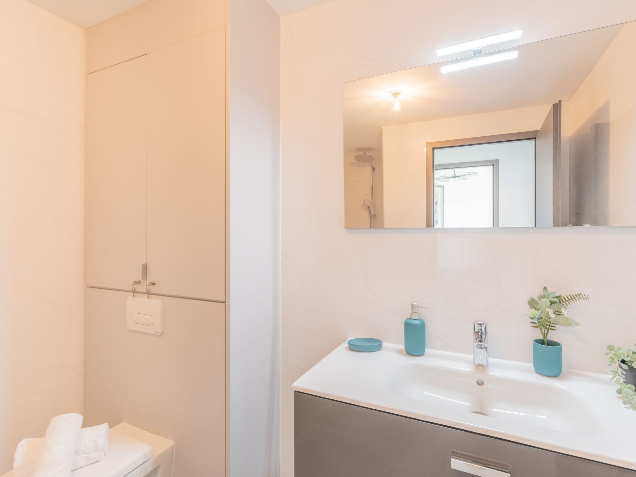 2-Zimmer-Wohnung 51 m2 im 4. Stock. Sehr schön und modern eingerichtet: Wohn-/Esszimmer mit 1 Diwanbett (140 cm, Länge 190 cm), TV (Flachbildschirm). Ausgang zur Terrasse. 1 Zimmer mit 1 franz. Bett (160 cm, Länge 200 cm). Offene Küche (Backofen, Geschirrspüler, 3 Induktionskochplatten, Toaster, Wasserkocher, Mikrowelle, Tiefkühler, elektrische Kaffeemaschine). Dusche/WC. Klimaanlage. Terrasse 8 m2. Terrassenmöbel. Zur Verfügung: Waschmaschine, Kinderhochstuhl, Babybett. Internet (Wireless LAN, gratis). Bitte beachten: geeignet für Familien. Nichtraucher-Unterkunft. Rauchmelder. Inserat einer Privatperson nach Artikel 155, IV, CGI.