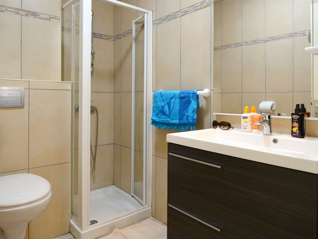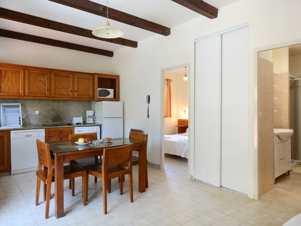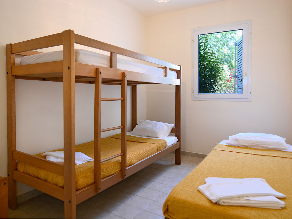 3-Zimmer-Wohnung, Erdgeschoss oder 1. Etage, ca. 42 m². Wohn-/Schlafraum mit Doppelbettcouch (1,60 m breit), Essplatz und Küchenzeile (2-4 Ceranfelder, Mikrowelle, Geschirrspüler, Kühlschrank, Kaffeemaschine, Toaster). Schlafzimmer mit franz. Bett. Kleines Schlafzimmer mit Etagenbett und Ausziehbett (0,80 m breit). Dusche/WC oder Bad/WC. Alternativ ist die Aufteilung auf zwei Ebenen möglich.