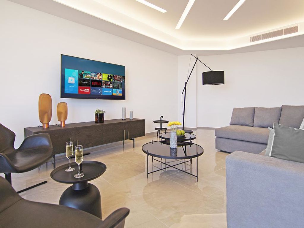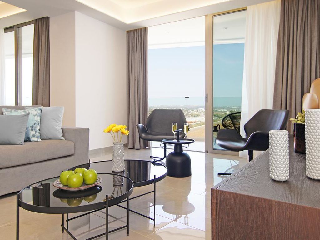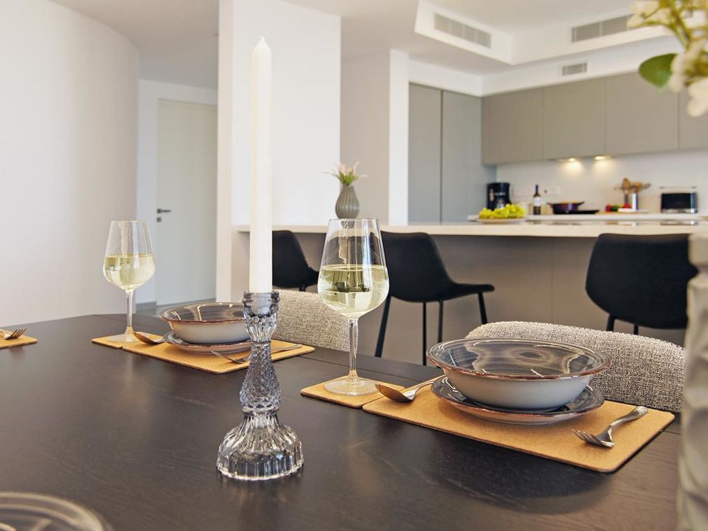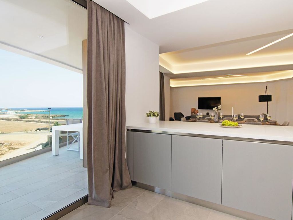 Moderner, luxuriöser Residenz "ATSC302". Hausausstattung: Fahrstuhl, Klimaanlage, Waschmaschine (zur Alleinbenutzung). Zufahrt & Parkmöglichkeiten: reservierter Parkplatz. Ganzjährig Zufahrt bis zum Haus möglich. Lage: im Ortszentrum von Protaras, am Ortsrand von Paralimni, ruhige Lage am Meer. Aussicht von der Wohnung auf das Meer. Umgebung des Hauses: Grundstück (zur Mitbenutzung), Garten (zur Mitbenutzung). Infrastruktur und Distanzen: Supermarkt 900 m, Restaurant 900 m, Sandstrand 100 m.