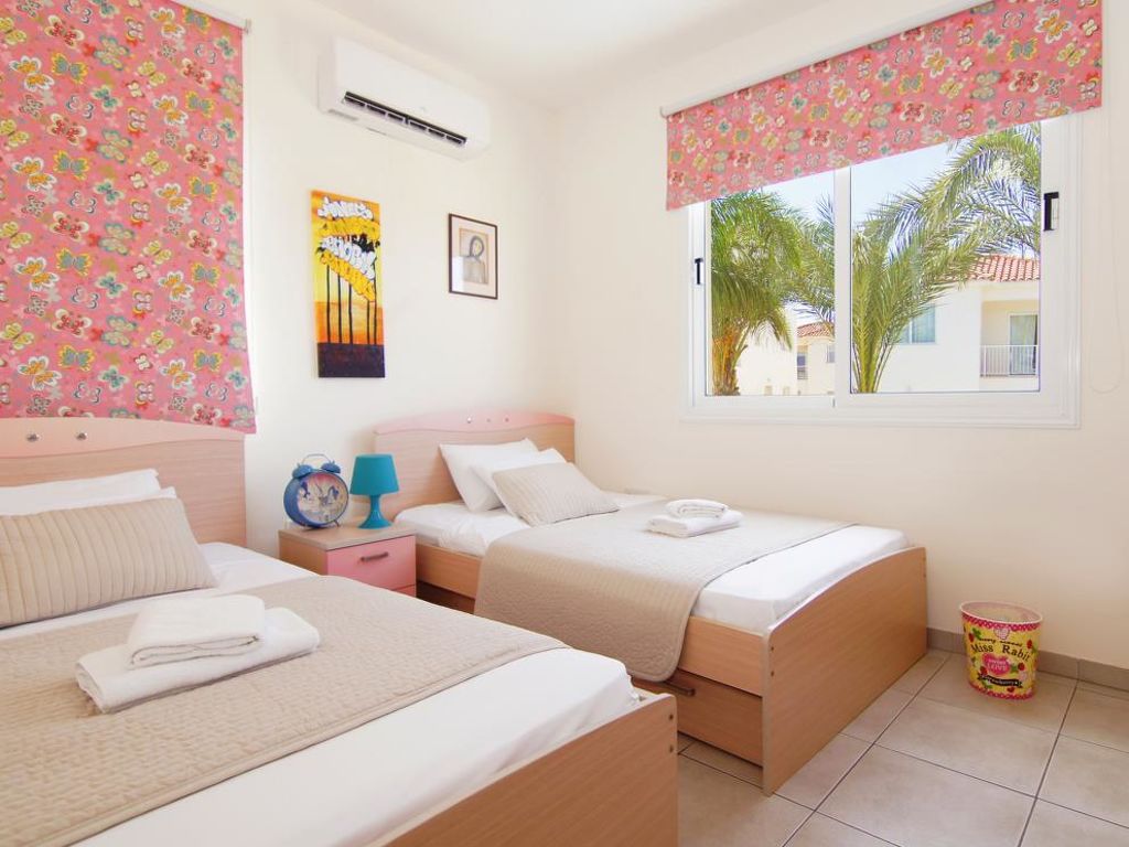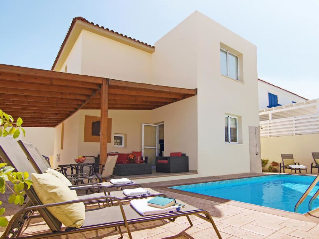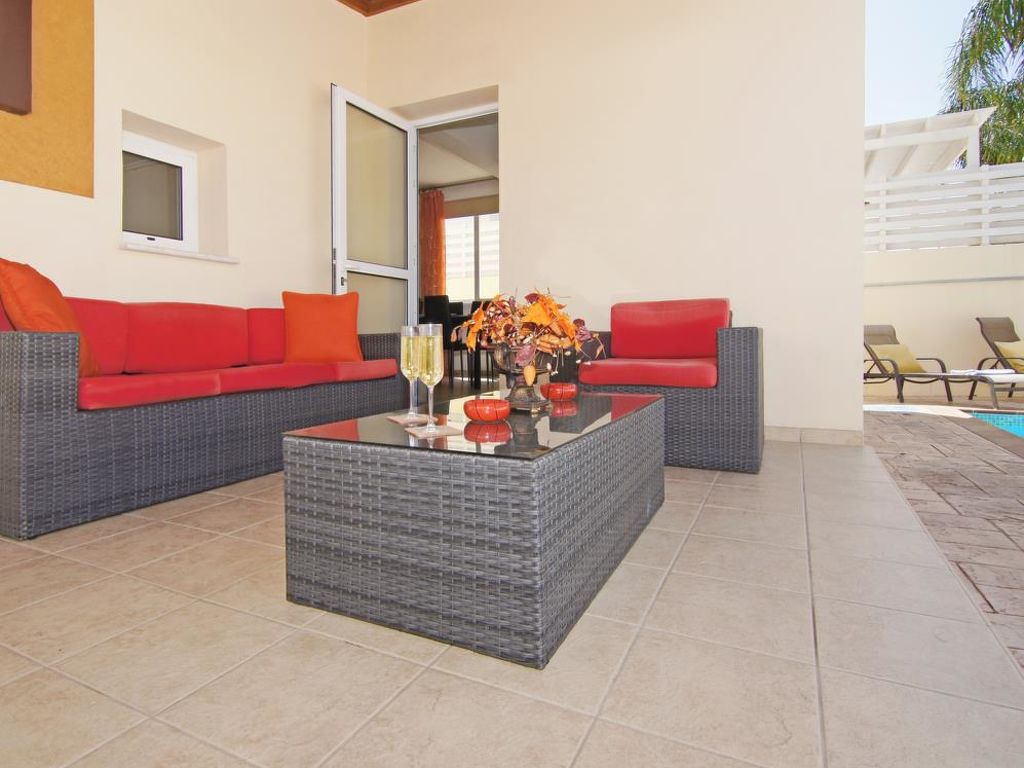 Komfortable Villa "PEDAP6". Hausausstattung: 24h Empfang / Rezeption, Waschmaschine (zur Alleinbenutzung). Zufahrt & Parkmöglichkeiten: reservierter Parkplatz. Ganzjährig Zufahrt bis zum Haus möglich. Lage: im Ortszentrum von Pernera, am Ortsrand von Protaras, zentrale Lage. Aussicht von der Wohnung auf den Garten. Umgebung des Hauses: Grundstück (zur Alleinbenutzung), Swimming Pool (zur Alleinbenutzung, Länge 8 m x Breite 4 m), Aussendusche (zur Alleinbenutzung). Infrastruktur und Distanzen: Supermarkt 200 m, Restaurant 200 m, Sandstrand 300 m.