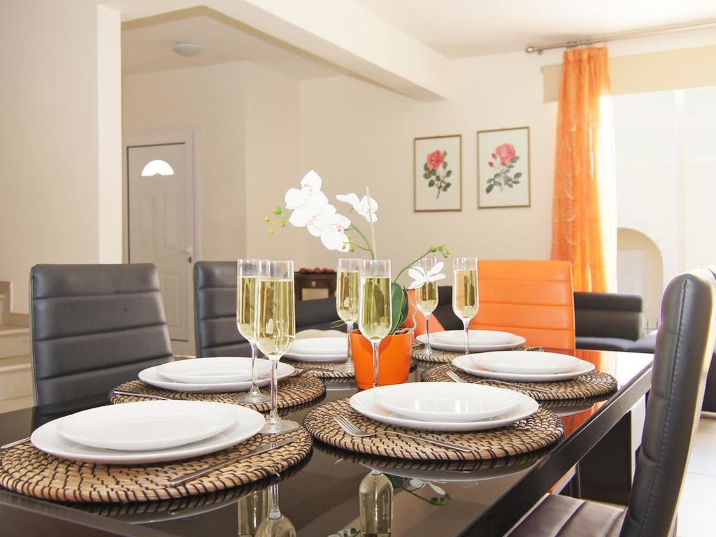 4-Zimmer- Haus (freistehend), für 6 Personen, 120 m2, modern eingerichtet. Wohn-/Esszimmer mit Regional-TV, Sat-TV, DVD und Esstisch. Rauchen nicht erlaubt. Internet (Wireless LAN [WLAN]). Schlafzimmer mit 1 Doppelbett. Schlafzimmer mit 2 Normalbetten. Schlafzimmer mit 2 Normalbetten. Offene Küche mit 4 - Platten Herd, Mikrowelle, Backofen, Esstisch, Kühlschrank und Tiefkühler. Bad und sep. WC. Balkon, Gartensitzplatz, Terrassenmöbel. Weitere Ausstattung: Safe, Haartrockner, Bügeleisen, Waschmaschine. 1 family bathroom with bath. All bathrooms have washing basins.