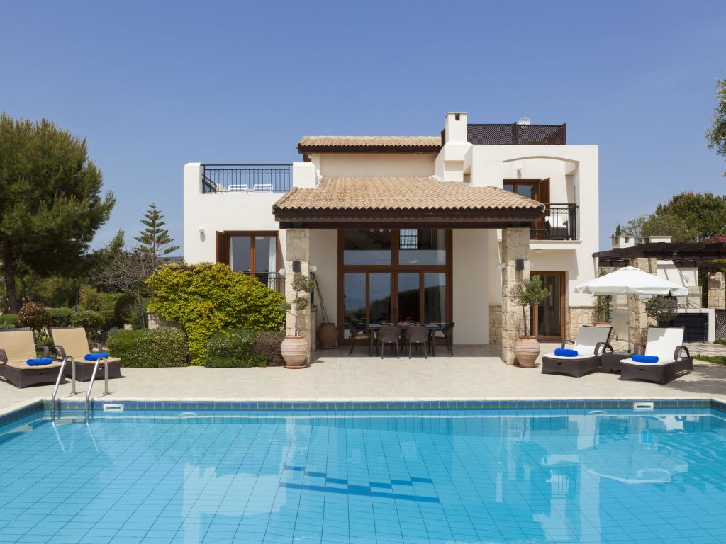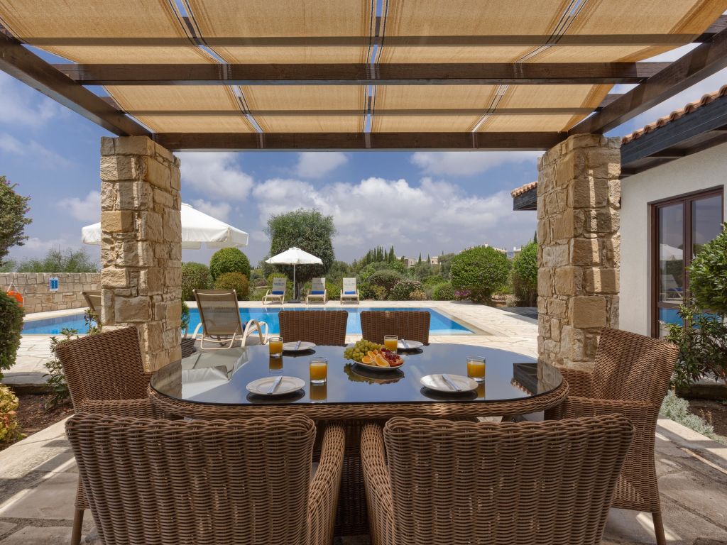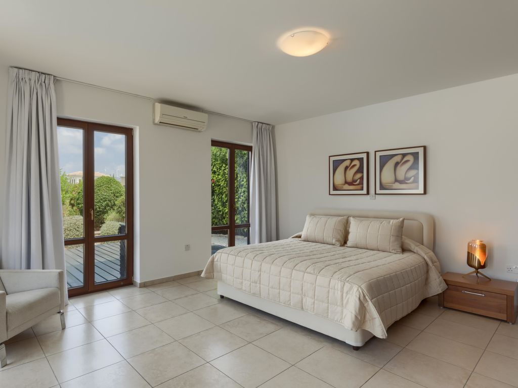Grosse, kinderfreundliche, luxuriöse Villa "Sup.Villa private pool", Baujahr 2006. Hausausstattung: Klimaanlage, Kinderbetreuung, Wäscherei, Waschmaschine (zur Alleinbenutzung). Zufahrt & Parkmöglichkeiten: reservierter Parkplatz. Ganzjährig Zufahrt bis zum Haus möglich. Auto empfohlen, Fussweg. Lage: im Ortszentrum von Aphrodite Hills Resort, am Ortsrand von Paphos, im Ortsteil Kouklia, ausserhalb von 9 mile from Paphos town, ruhige, erhöhte Lage auf einem Hügel, am Meer. Aussicht von der Wohnung auf die Berge, den Garten und die Ortschaft. Umgebung des Hauses: Grundstück (zur Alleinbenutzung), Park (zur Mitbenutzung), Garten (zur Alleinbenutzung), Swimming Pool (zur Alleinbenutzung, Länge 5 m x Breite 10 m), Privatstrand (zur Mitbenutzung), Kinderspielplatz (zur Mitbenutzung), Tennis (zur Mitbenutzung), Grill (zur Alleinbenutzung). Infrastruktur und Distanzen: Einkaufsgeschäft 2 km, Lebensmittelgeschäft 2 km, Supermarkt 2 km, Restaurant 2 km, Steinstrand 2.5 km, Golfplatz 2 km, Tennis 2 km, Tennishalle 2 km, Reiten 3 km, Kinderspielplatz 2 km, Bushaltestelle 2 km. Bitte beachten, in der Nähe befindet sich eine Autobahn in 3 km und ein Flughafen/Flugplatz in 15 km. Important: Pictures are from a sample of numerous properties which comes under this category/types. All properties will be allocated according to type at time of booking.