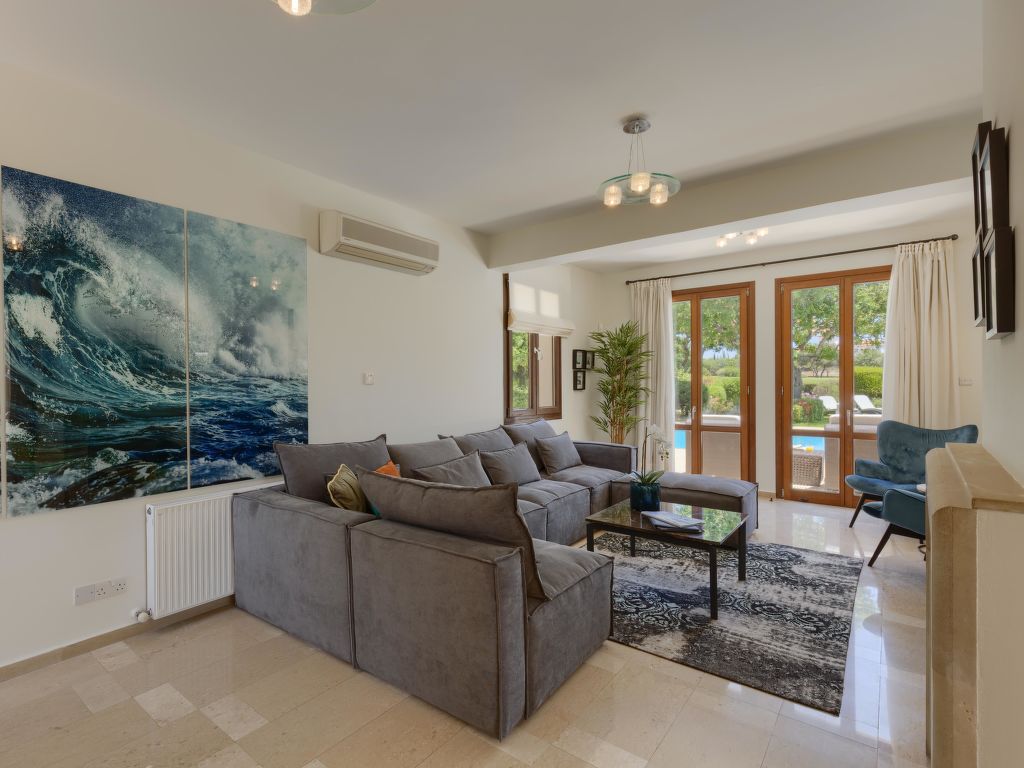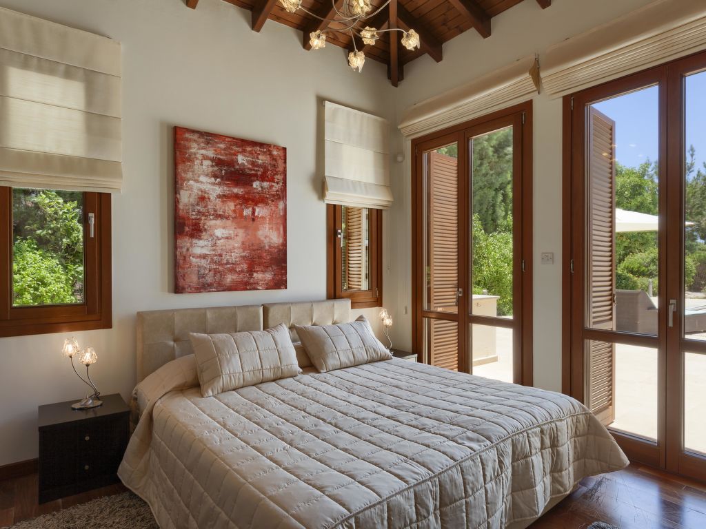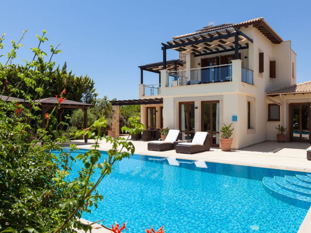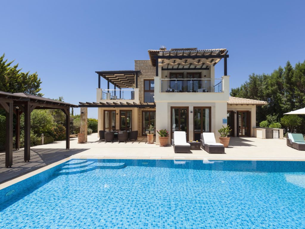 Grosse, kinderfreundliche, luxuriöse Villa "Sup Villa private pool", Baujahr 2006. Hausausstattung: Klimaanlage, Kinderbetreuung, Wäscherei, Waschmaschine (zur Alleinbenutzung). Zufahrt & Parkmöglichkeiten: Parkplatz beim Haus, reservierter Parkplatz. Ganzjährig Zufahrt bis zum Haus möglich. Auto empfohlen, Fussweg. Lage: im Ortszentrum von Aphrodite Hills Resort, am Ortsrand von Paphos, im Ortsteil Kouklia, ausserhalb von 9 mile from Paphos town, ruhige, erhöhte Lage auf einem Hügel, am Meer. Aussicht von der Wohnung auf den Garten und die Ortschaft. Umgebung des Hauses: Grundstück (zur Alleinbenutzung), Park (zur Mitbenutzung), Garten (zur Alleinbenutzung), Swimming Pool (zur Alleinbenutzung, Länge 5 m x Breite 10 m), Privatstrand (zur Mitbenutzung), Kinderspielplatz (zur Mitbenutzung), Tennis (zur Mitbenutzung), Grill (zur Alleinbenutzung). Infrastruktur und Distanzen: Einkaufsgeschäft 2 km, Lebensmittelgeschäft 2 km, Supermarkt 2 km, Restaurant 2 km, Steinstrand 2.5 km, Golfplatz 2 km, Tennis 2 km, Tennishalle 2 km, Reiten 3 km, Kinderspielplatz 2 km, Bushaltestelle 2 km. Bitte beachten, in der Nähe befindet sich eine Autobahn in 3 km und ein Flughafen/Flugplatz in 15 km. Important: Pictures are from a sample of numerous properties which comes under this category/types. All properties will be allocated according to type at time of booking.