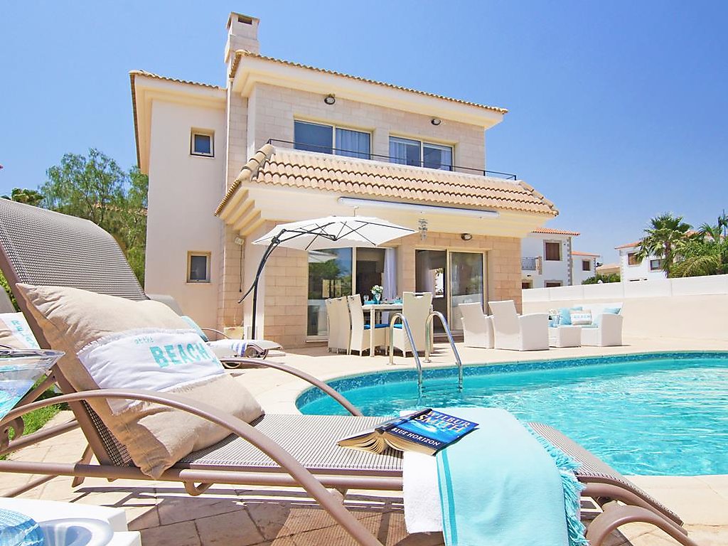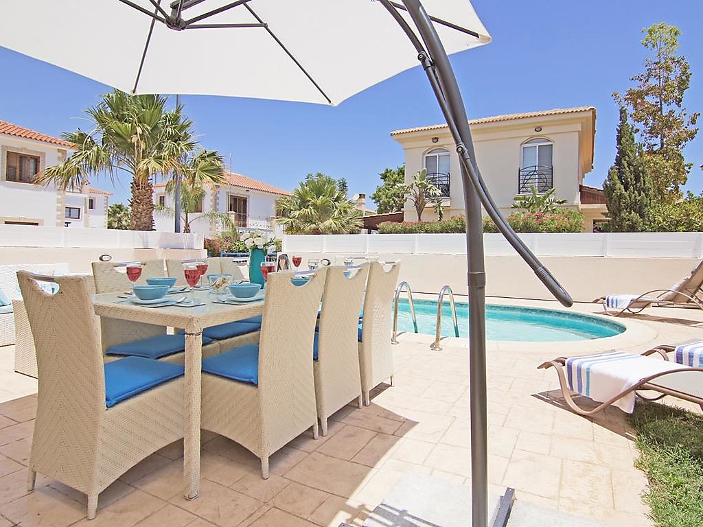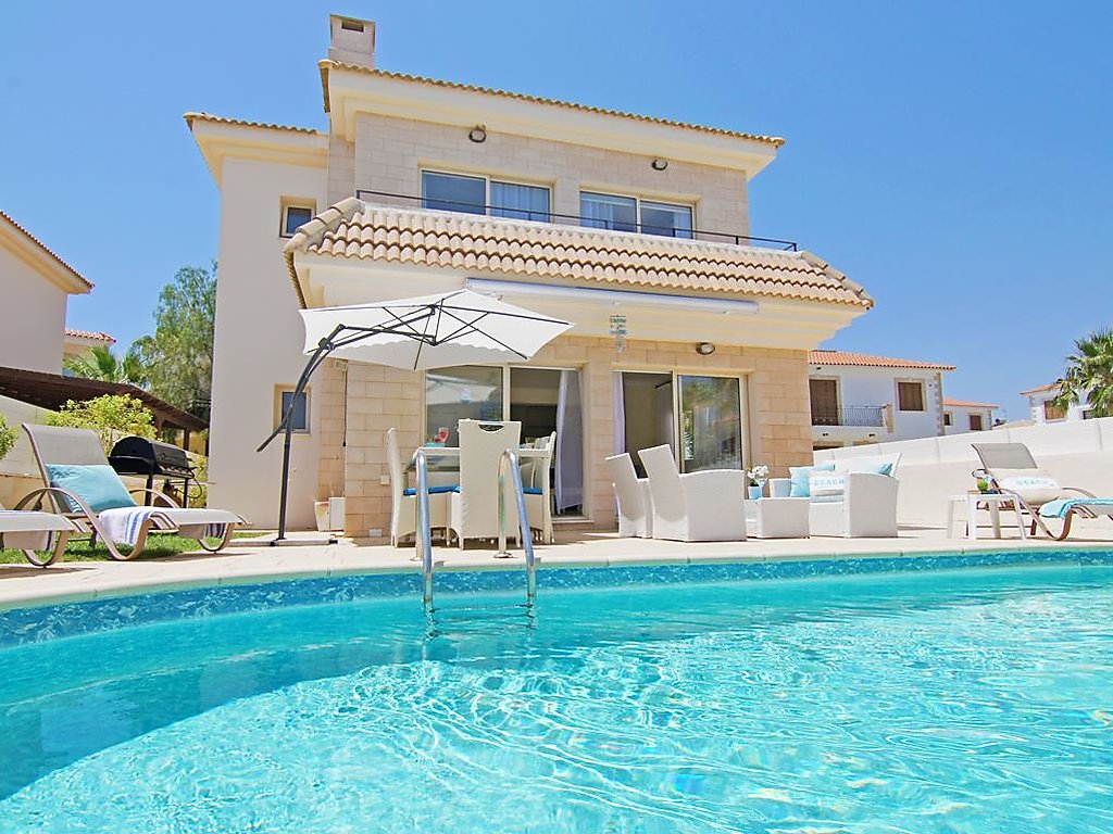 Moderne Villa "KPBWB26B", Baujahr 2010. Hausausstattung: Klimaanlage, Waschmaschine (zur Alleinbenutzung). Zufahrt & Parkmöglichkeiten: reservierter Parkplatz. Ganzjährig Zufahrt bis zum Haus möglich. Lage: im Ortszentrum von Kapparis, am Ortsrand von Protaras, am Meer. Umgebung des Hauses: Swimming Pool (zur Alleinbenutzung, Länge 8 m x Breite 4 m), Aussendusche (zur Alleinbenutzung). Infrastruktur und Distanzen: Einkaufsgeschäft 300 m, Supermarkt 300 m, Restaurant 300 m, Sandstrand 300 m.