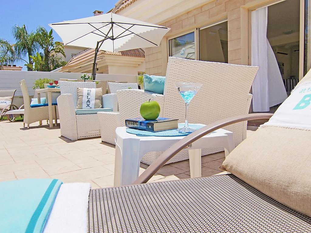 4-Zimmer- Haus (freistehend), für 6 Personen, 120 m2 auf 2 Stockwerken, modern eingerichtet. Wohn-/Esszimmer mit Regional-TV, Sat-TV und DVD. Rauchen nicht erlaubt. Internet (Wireless LAN [WLAN]). Schlafzimmer mit 1 Doppelbett. Schlafzimmer mit 1 Doppelbett. Schlafzimmer mit 3 Normalbetten. Küche mit 4 - Platten Herd, Mikrowelle, Backofen, Esstisch, Geschirrspüler, Kühlschrank und Tiefkühler. Bad, Dusche/WC, Bad/Dusche/WC und sep. WC. Balkon, Terrasse, Gartensitzplatz, Terrassenmöbel. Weitere Ausstattung: Safe, Kinderhochstuhl, Haartrockner, Bügeleisen, Waschmaschine.