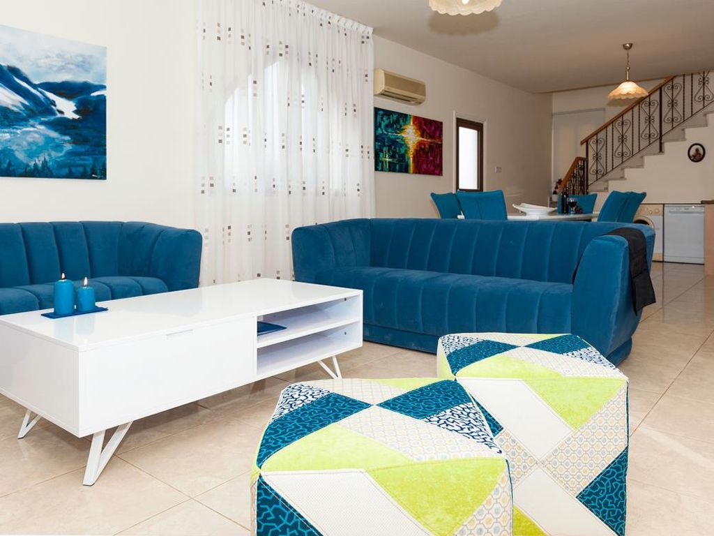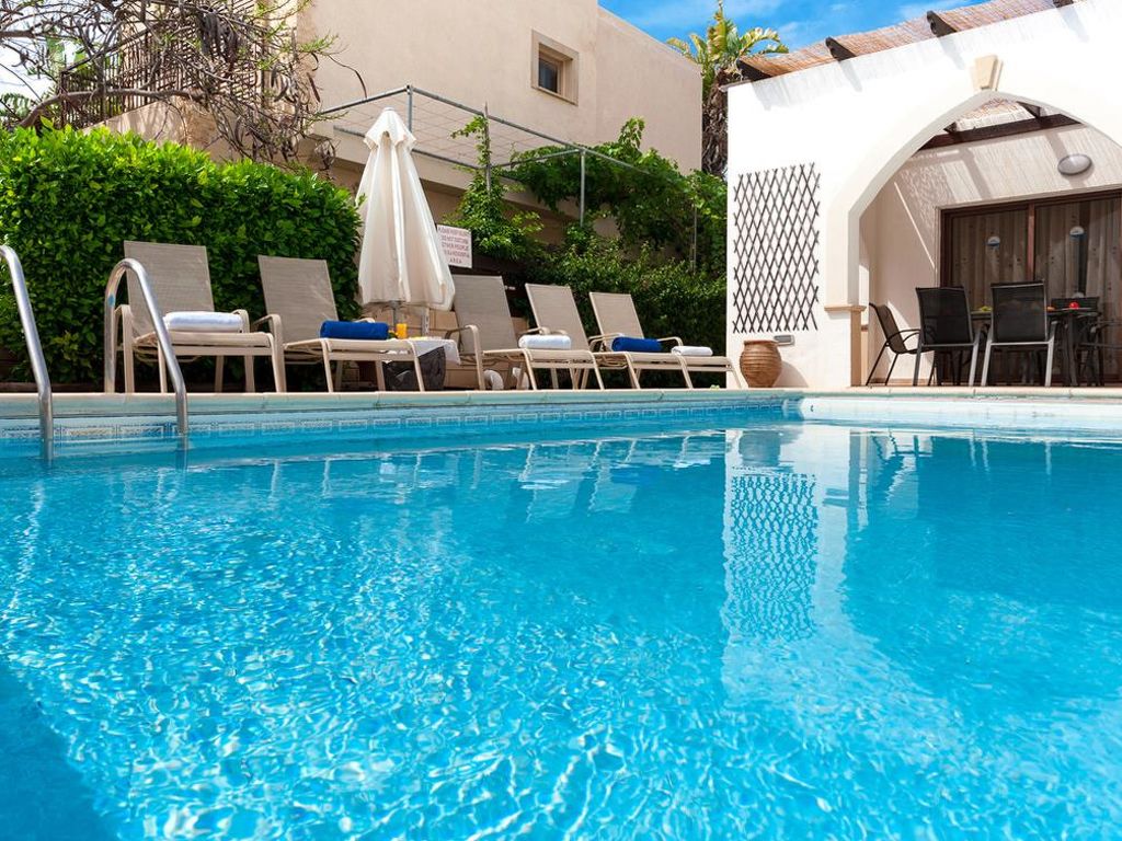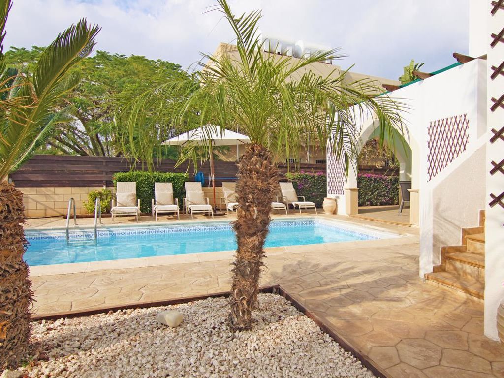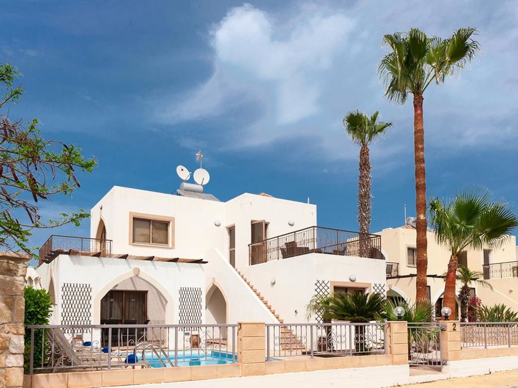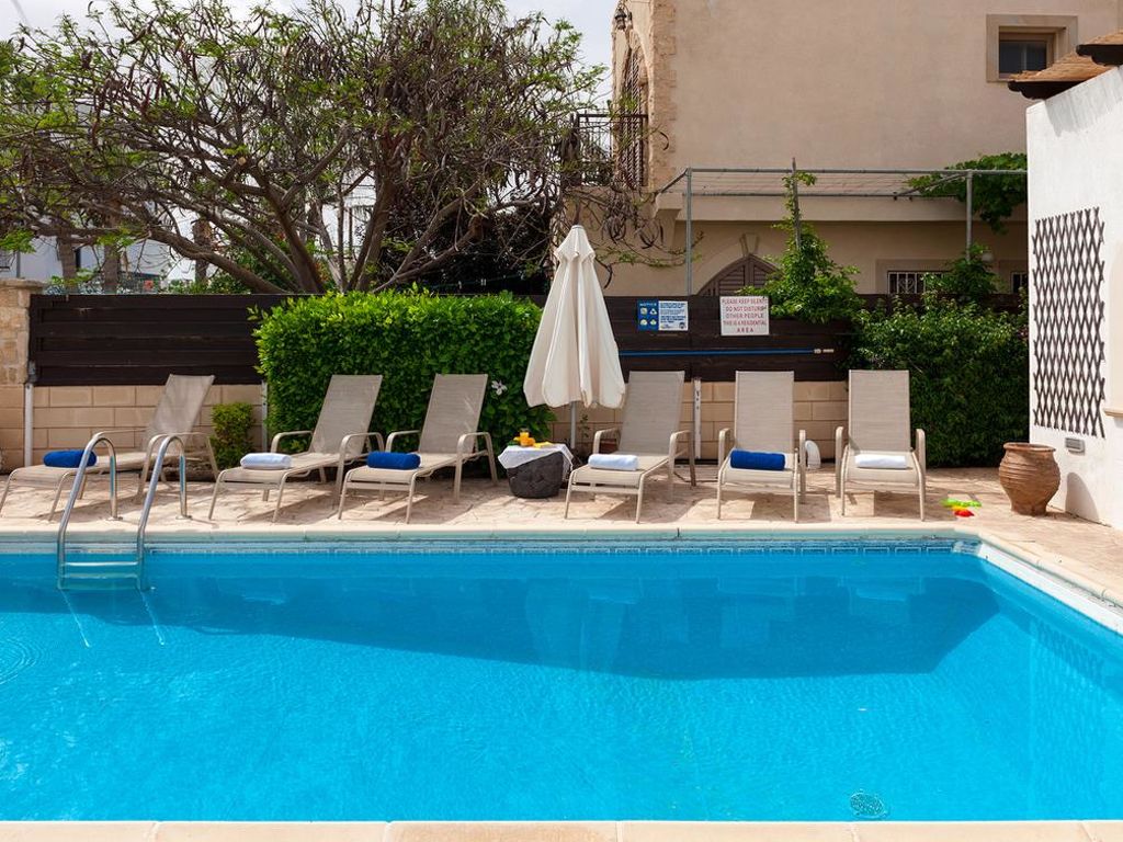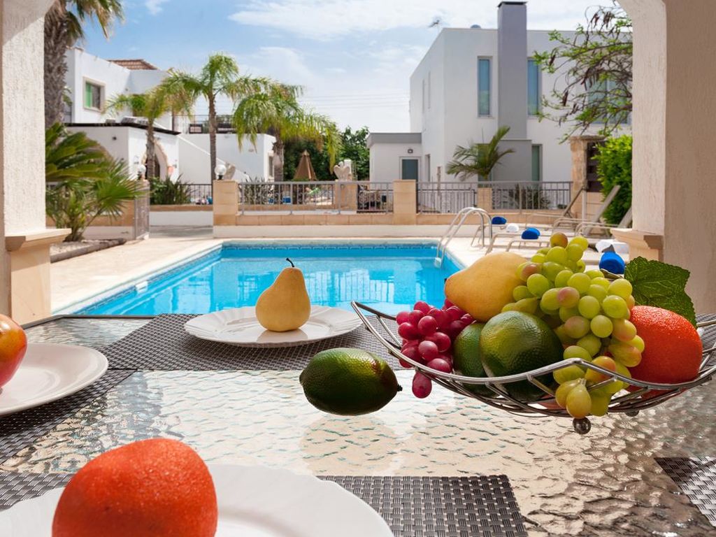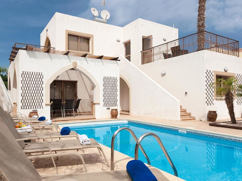 Luxuriöse Villa "PEELE2". Hausausstattung: Klimaanlage, Waschmaschine (zur Alleinbenutzung). Zufahrt & Parkmöglichkeiten: reservierter Parkplatz. Ganzjährig Zufahrt bis zum Haus möglich. Lage: im Ortszentrum von Pernera, am Ortsrand von Protaras, ruhige Lage. Umgebung des Hauses: Grundstück (zur Alleinbenutzung), Swimming Pool (zur Alleinbenutzung), Aussendusche (zur Alleinbenutzung). Infrastruktur und Distanzen: Supermarkt 300 m, Sandstrand 150 m.