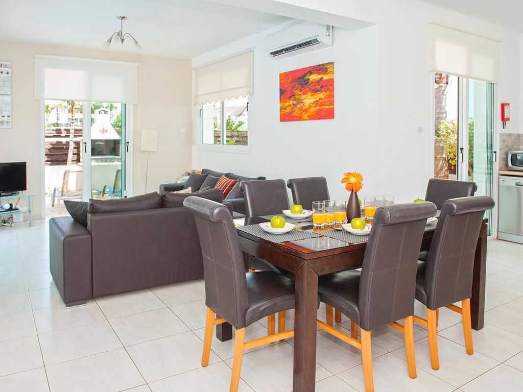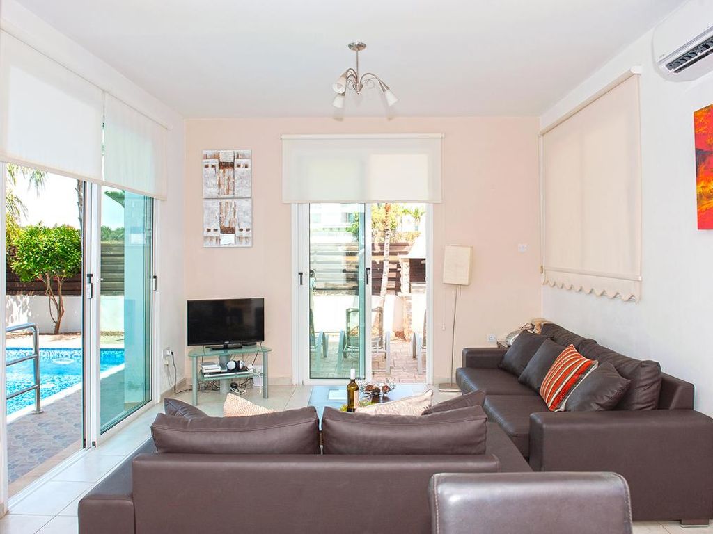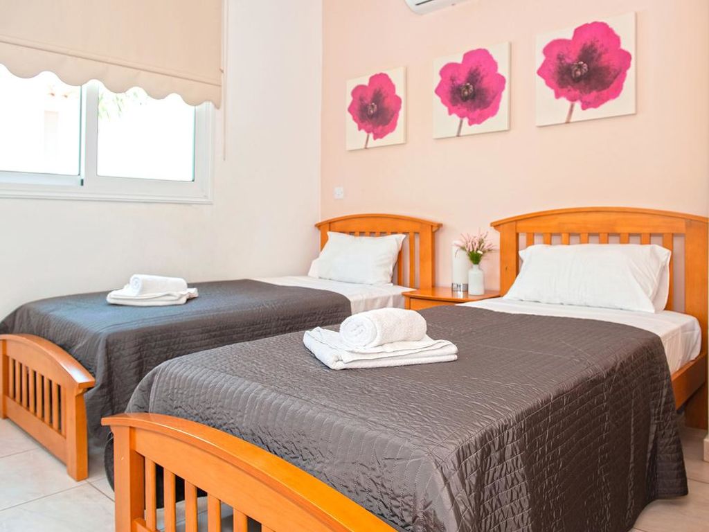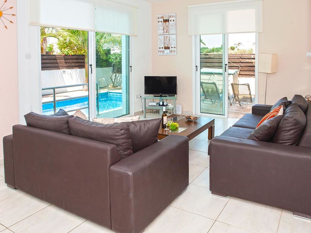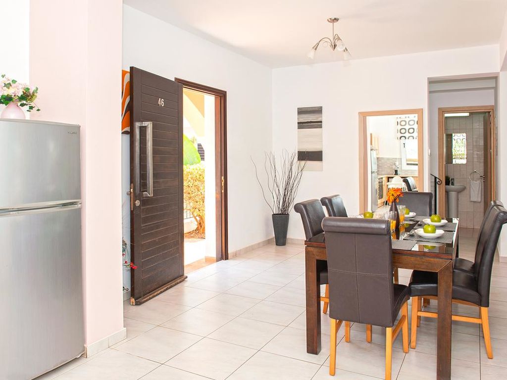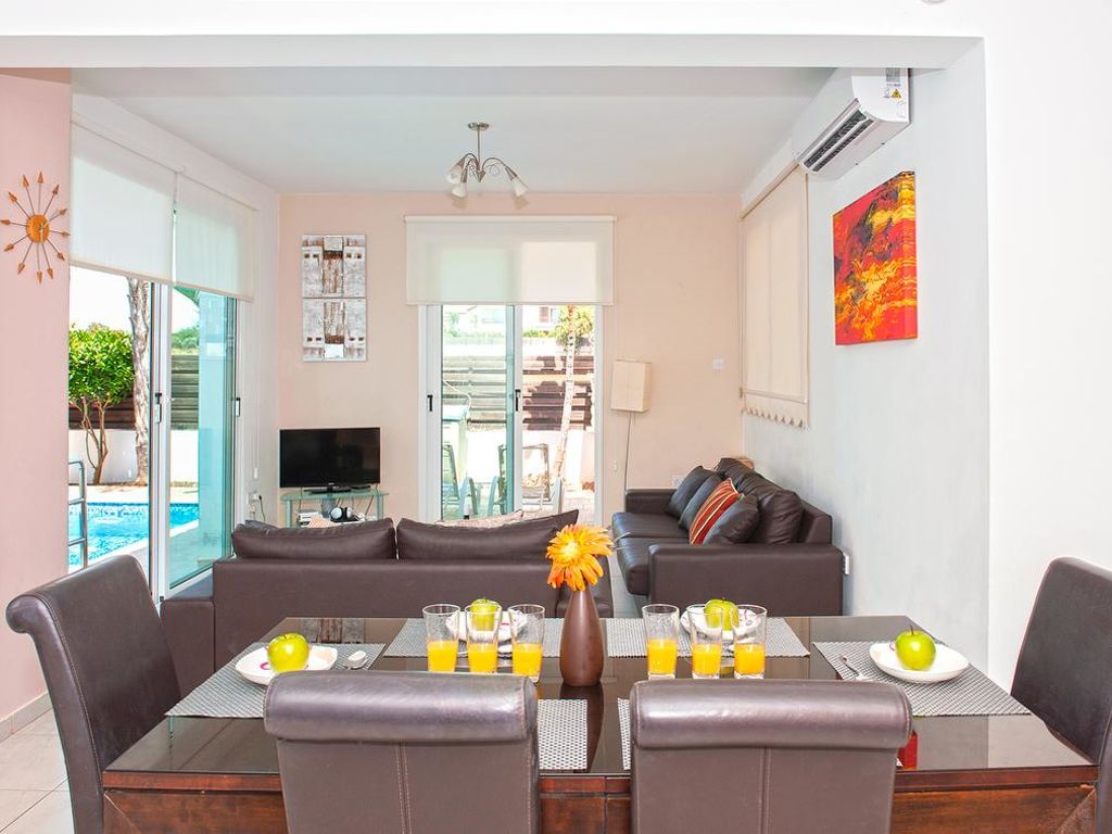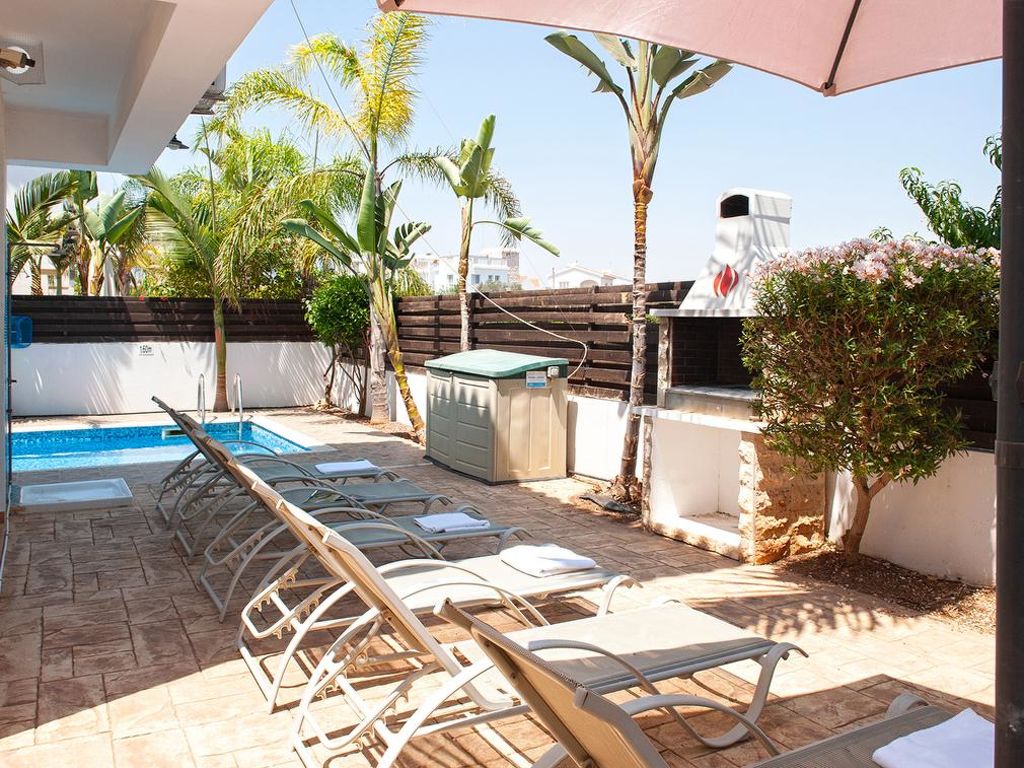 Komfortable Villa "PEORA46". Hausausstattung: Klimaanlage, Waschmaschine (zur Alleinbenutzung). Zufahrt & Parkmöglichkeiten: reservierter Parkplatz. Ganzjährig Zufahrt bis zum Haus möglich. Lage: im Ortszentrum von Pernera. Umgebung des Hauses: Grundstück (zur Alleinbenutzung), Swimming Pool (zur Alleinbenutzung, Länge 7 m x Breite 3 m), Aussendusche (zur Alleinbenutzung), Grill (zur Alleinbenutzung). Infrastruktur und Distanzen: Supermarkt 800 m, Sandstrand 500 m.