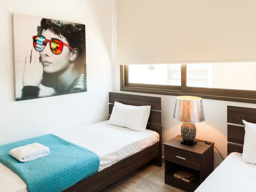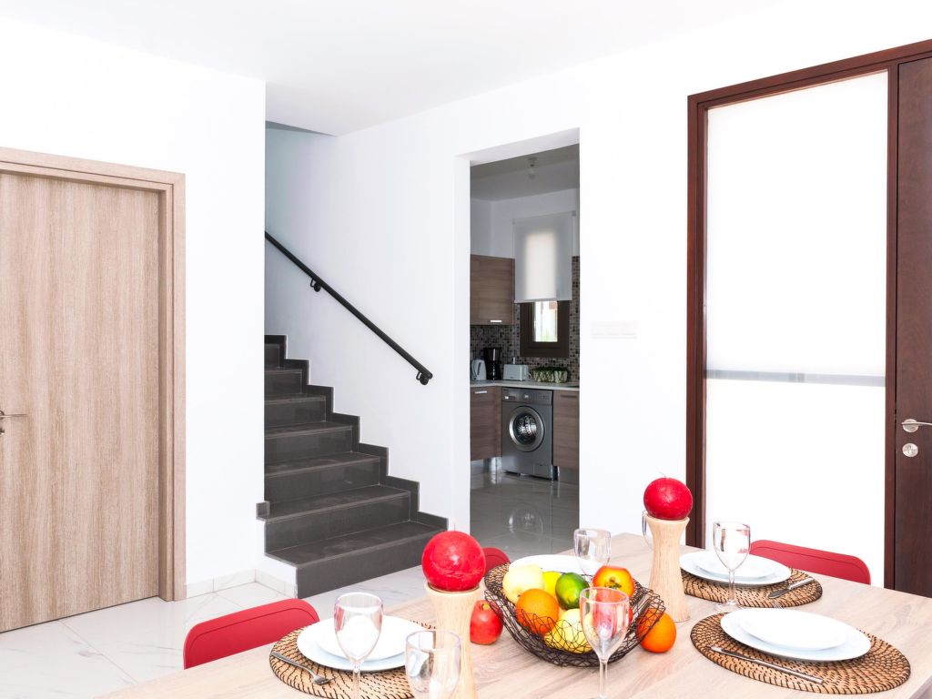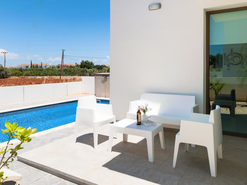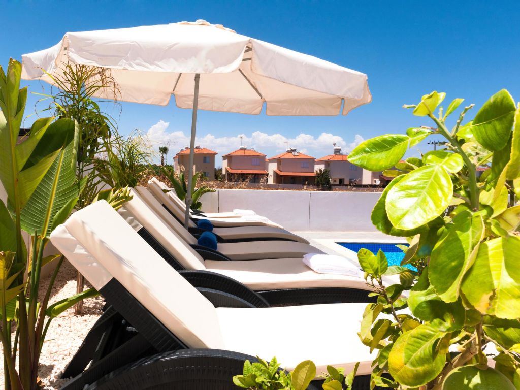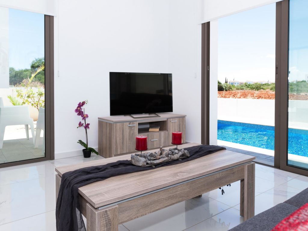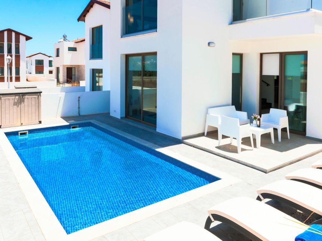 Moderne Villa "ATLEV39". Hausausstattung: Klimaanlage, Waschmaschine (zur Alleinbenutzung). Zufahrt & Parkmöglichkeiten: reservierter Parkplatz. Ganzjährig Zufahrt bis zum Haus möglich. Lage: im Ortszentrum von Ayia Triada, am Ortsrand von Protaras. Umgebung des Hauses: Swimming Pool (zur Alleinbenutzung, Länge 3 m x Breite 6 m), Aussendusche (zur Alleinbenutzung). Infrastruktur und Distanzen: Supermarkt 1 km, Restaurant 1 km, Sandstrand 1.3 km.