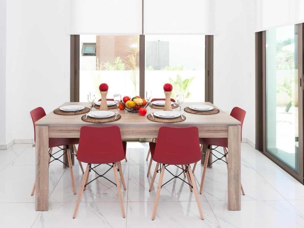 4-Zimmer- Haus (freistehend), für 6 Personen, 130 m2, modern eingerichtet. Wohn-/Esszimmer mit Sat-TV und DVD. Rauchen nicht erlaubt. Internet (Wireless LAN [WLAN]). Schlafzimmer mit 1 Doppelbett. Schlafzimmer mit 1 Doppelbett. Schlafzimmer mit 2 Normalbetten. Küche mit Mikrowelle, Backofen, Esstisch, Geschirrspüler, Kühlschrank und Tiefkühler. Bad, Bad/WC, Dusche und Dusche/WC. Balkon, Gartensitzplatz, Terrassenmöbel. Weitere Ausstattung: Safe, Haartrockner, Bügeleisen, Waschmaschine.