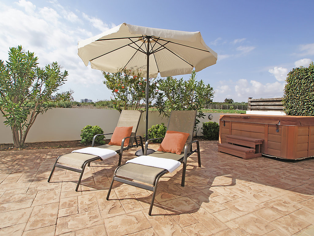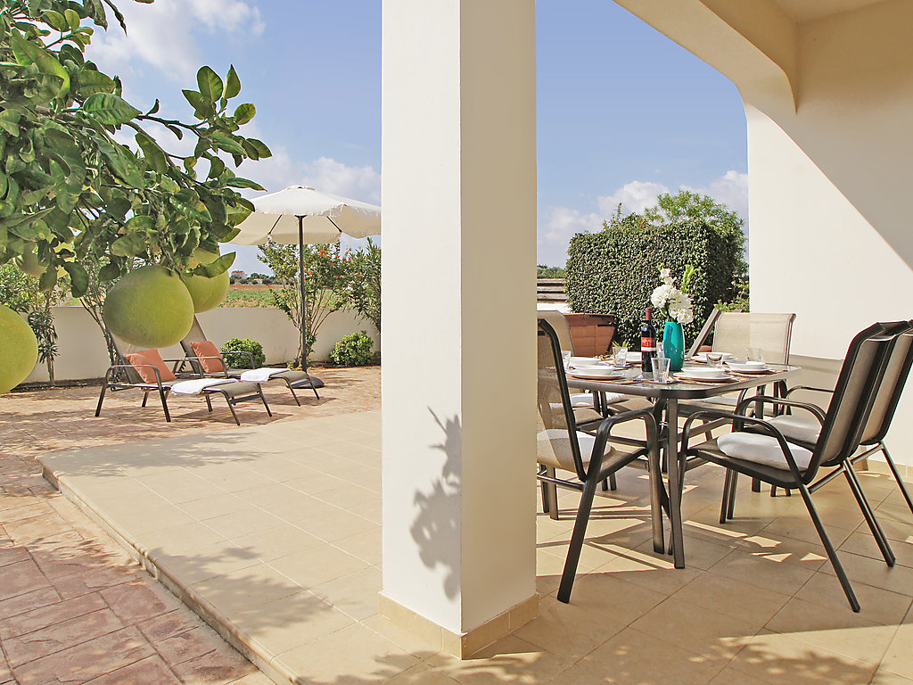 Komfortable Villa "ATRALK12". Hausausstattung: Klimaanlage, Waschmaschine (zur Alleinbenutzung). Zufahrt & Parkmöglichkeiten: reservierter Parkplatz. Ganzjährig Zufahrt bis zum Haus möglich. Lage: im Ortszentrum von Ayia Triada, am Ortsrand von Protaras, ruhige Lage. Aussicht von der Wohnung auf den Garten. Umgebung des Hauses: Aussendusche (zur Alleinbenutzung). Infrastruktur und Distanzen: Supermarkt 400 m, Restaurant 400 m, Sandstrand 400 m.