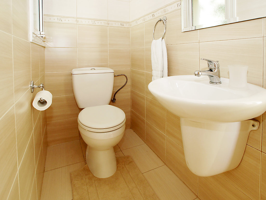4-Zimmer- Haus (freistehend), für 6 Personen, 120 m2 auf 2 Stockwerken, komfortabel eingerichtet. Wohn-/Esszimmer mit Regional-TV, Sat-TV und DVD. Rauchen nicht erlaubt. Internet (Wireless LAN [WLAN]). Schlafzimmer mit 1 Doppelbett. Schlafzimmer mit 1 Doppelbett. Schlafzimmer mit 2 Normalbetten. Küche mit 4 - Platten Herd, Mikrowelle, Backofen, Esstisch, Geschirrspüler, Kühlschrank und Tiefkühler. Bad, Dusche und sep. WC. Balkon, Terrasse, Gartensitzplatz, Terrassenmöbel. Weitere Ausstattung: Safe, Haartrockner, Bügeleisen, Waschmaschine, Sprudelbad.