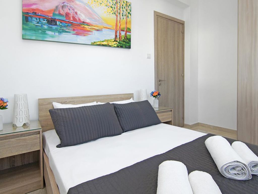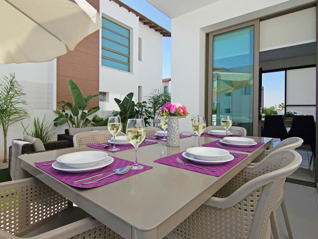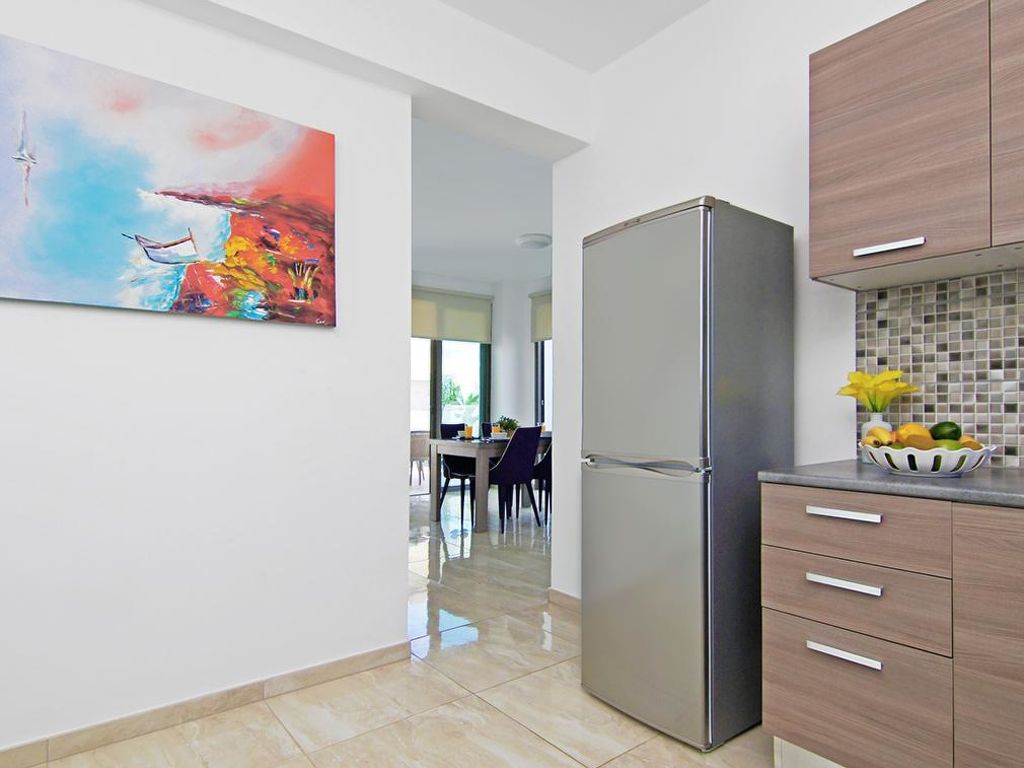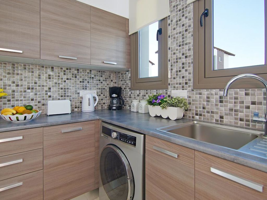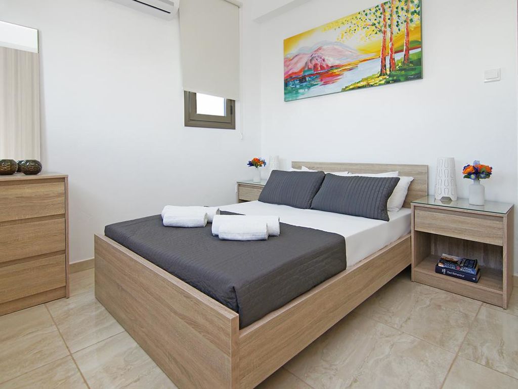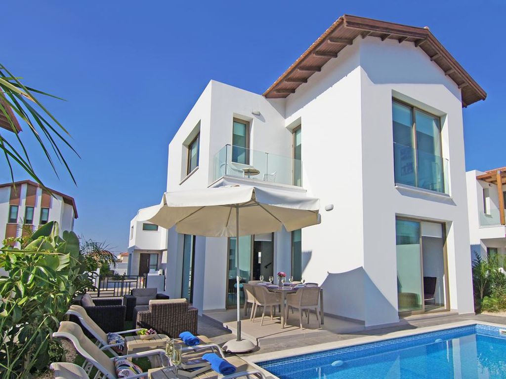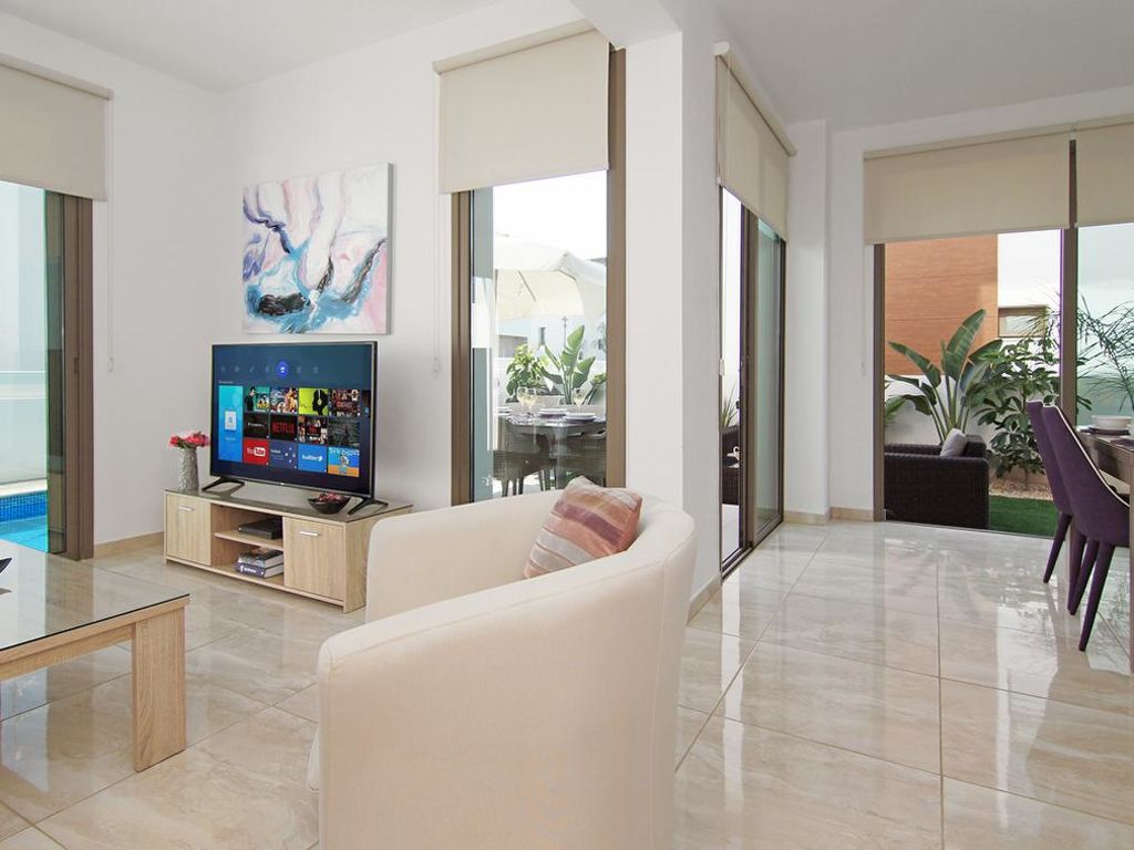 Moderne Villa "ATLEV43". Hausausstattung: Klimaanlage, Waschmaschine (zur Alleinbenutzung). Zufahrt & Parkmöglichkeiten: reservierter Parkplatz. Ganzjährig Zufahrt bis zum Haus möglich. Lage: im Ortszentrum von Ayia Triada, am Ortsrand von Protaras. Umgebung des Hauses: Swimming Pool (zur Alleinbenutzung, Länge 3 m x Breite 6 m), Aussendusche (zur Alleinbenutzung). Infrastruktur und Distanzen: Supermarkt 1 km, Restaurant 1 km, Sandstrand 1.3 km.