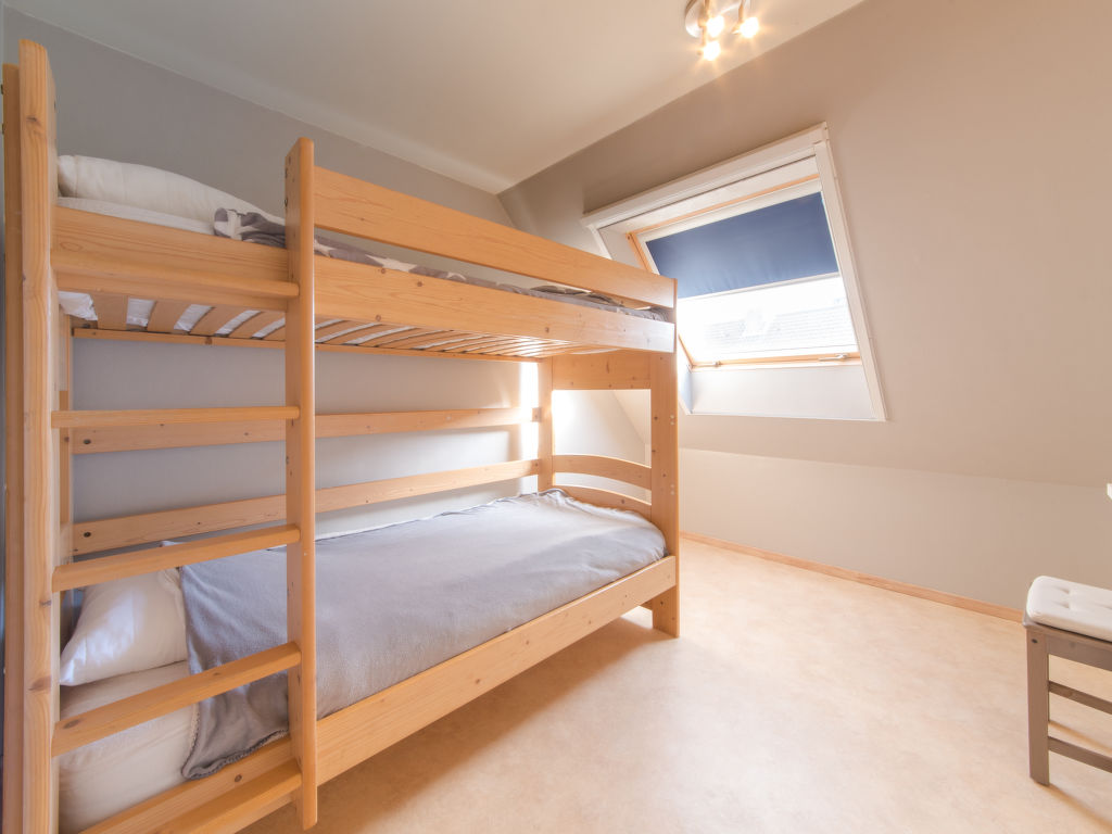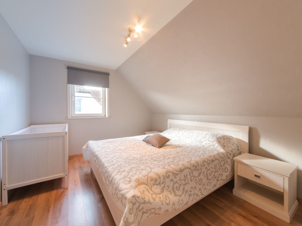 "Boonenhove nr.72", 5-Zimmer-Haus 150 m2 auf 3 Stockwerken. Objekt geeignet für 6 Erwachsene + 2 Kinder. Geräumig, zweckmässig und komfortabel eingerichtet: Eingang mit sep. WC. Wohn-/Esszimmer mit Esstisch, TV und Internationale TV-Sender (Flachbildschirm), CD und DVD. Ausgang zum Garten. Küche (Backofen, Geschirrspüler, 4 Glaskeramikherd Platten, Toaster, Wasserkocher, Mikrowelle, Tiefkühler, elektrische Kaffeemaschine). Obergeschoss: 2 Doppelzimmer, jedes Zimmer mit 1 Doppelbett (1 x 160 cm, Länge 200 cm). 1 Zimmer mit 1 x 1 Etagenbetten (90 cm, Länge 200 cm). Dusche/WC. 2. Obergeschoss: 1 Doppelzimmer mit 1 Doppelbett (160 cm, Länge 200 cm). Garten 100 m2. Terrassenmöbel, Sitzplatz. Zur Verfügung: Waschmaschine, Kinderhochstuhl, Babybett, Haartrockner. Internet (Wireless LAN, gratis). Parkplatz (2 Autos) beim Haus. Bitte beachten: Nichtraucher-Haus. Rauchmelder, Feuerlöscher.