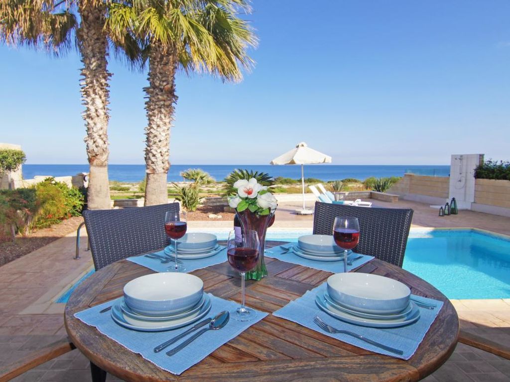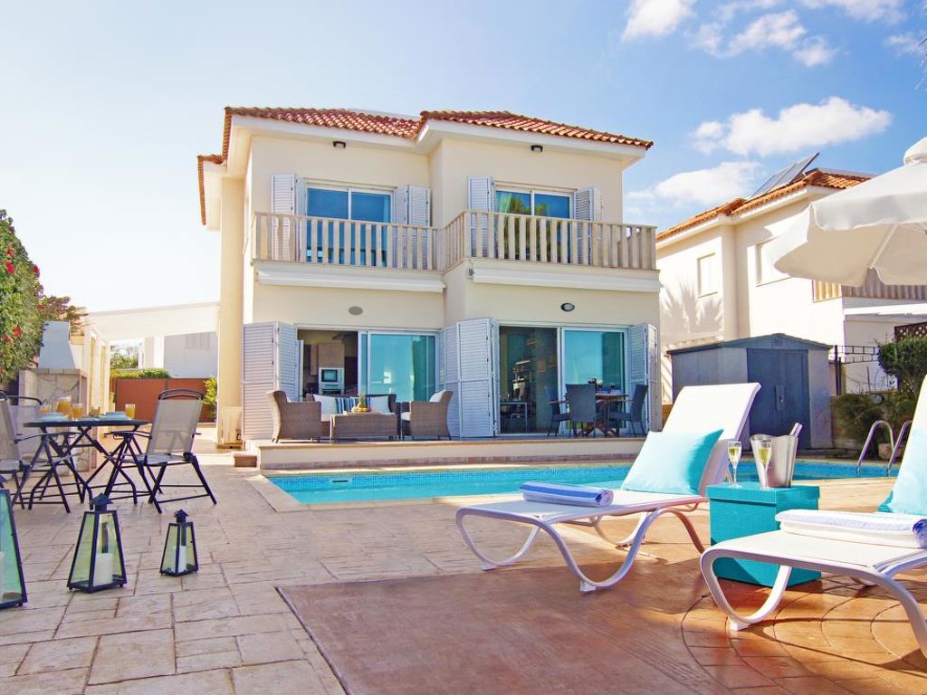 Neue, moderne, luxuriöse Villa "CAVNER3". Hausausstattung: Klimaanlage, Waschmaschine (zur Alleinbenutzung). Zufahrt & Parkmöglichkeiten: reservierter Parkplatz. Ganzjährig Zufahrt bis zum Haus möglich. Lage: im Ortszentrum von Cavo Greco, am Ortsrand von Protaras, ruhige Lage am Meer. Aussicht von der Wohnung auf das Meer. Umgebung des Hauses: Grundstück (zur Alleinbenutzung), Swimming Pool (zur Alleinbenutzung, Länge 8 m x Breite 4 m), Aussendusche (zur Alleinbenutzung). Infrastruktur und Distanzen: Supermarkt 800 m, Restaurant 800 m, Sandstrand 450 m.