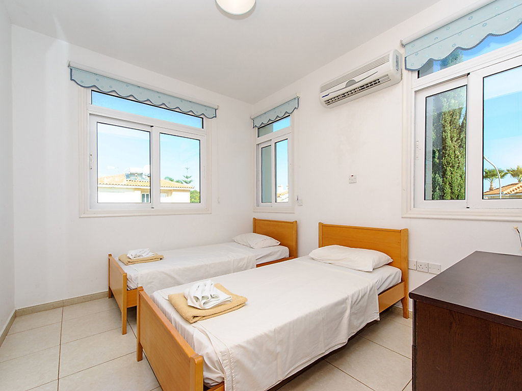 Moderne, komfortable Villa "PRMEA36". Hausausstattung: Klimaanlage, Waschmaschine (zur Alleinbenutzung). Zufahrt & Parkmöglichkeiten: reservierter Parkplatz. Ganzjährig Zufahrt bis zum Haus möglich. Lage: im Ortszentrum von Protaras, zentrale Lage am Meer. Aussicht von der Wohnung auf das Meer und den Garten. Umgebung des Hauses: Grundstück (zur Alleinbenutzung), Garten (zur Alleinbenutzung), Liegewiese (zur Alleinbenutzung), Swimming Pool (zur Alleinbenutzung, Länge 8 m x Breite 4 m), Aussendusche (zur Alleinbenutzung). Infrastruktur und Distanzen: Einkaufsgeschäft 200 m, Lebensmittelgeschäft 500 m, Supermarkt 200 m, Restaurant 500 m, Sandstrand 500 m.