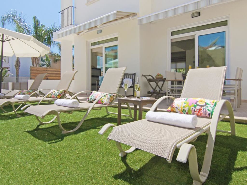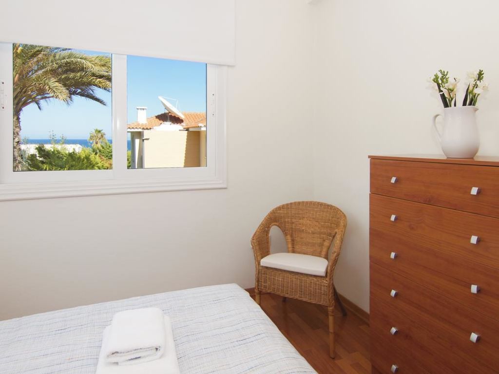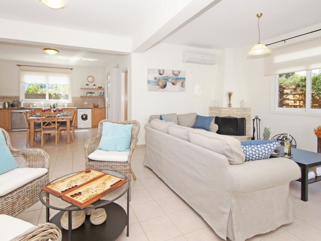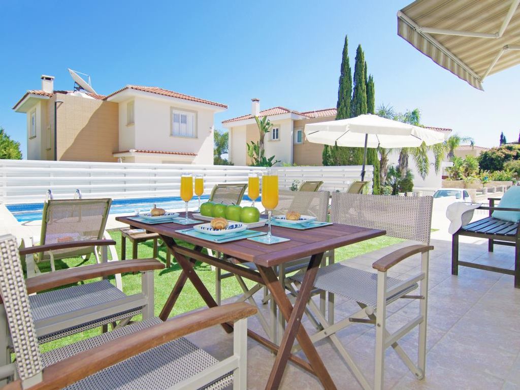 Moderne Villa "PRMEA11". Hausausstattung: Klimaanlage, Waschmaschine (zur Alleinbenutzung). Zufahrt & Parkmöglichkeiten: reservierter Parkplatz. Ganzjährig Zufahrt bis zum Haus möglich. Lage: im Ortszentrum von Protaras, zentrale Lage am Meer. Aussicht von der Wohnung auf den Garten. Umgebung des Hauses: Grundstück (zur Alleinbenutzung), Garten (zur Alleinbenutzung), Liegewiese (zur Alleinbenutzung), Swimming Pool (zur Alleinbenutzung, Länge 8 m x Breite 4 m), Aussendusche (zur Alleinbenutzung). Infrastruktur und Distanzen: Supermarkt 400 m, Restaurant 400 m, Sandstrand 500 m, Kieselstrand 150 m.