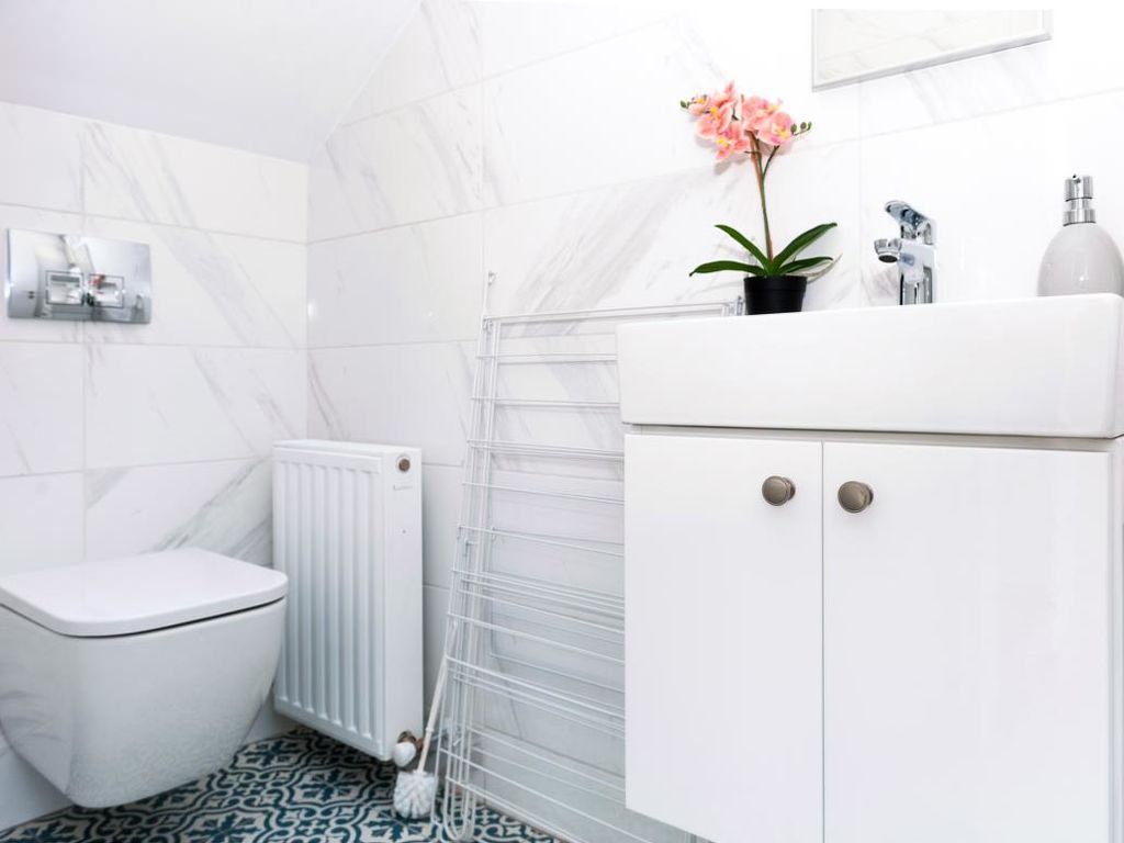 4-Zimmer- Haus (freistehend), für 6 Personen, 130 m2 auf 2 Stockwerken, modern eingerichtet. Wohn-/Esszimmer mit Regional-TV, Sat-TV und DVD. Rauchen nicht erlaubt. Internet (Wireless LAN [WLAN]). Schlafzimmer mit 1 Doppelbett. Schlafzimmer mit 1 Doppelbett. Schlafzimmer mit 2 Normalbetten. Küche mit 4 - Platten Herd, Mikrowelle, Backofen, Esstisch, Geschirrspüler, Kühlschrank und Tiefkühler. Dusche, Dusche/WC und sep. WC. Balkon, Gartensitzplatz, Terrassenmöbel. Weitere Ausstattung: Safe, Haartrockner, Bügeleisen, Waschmaschine. 1 guest toilet. 1 family bathroom with bath tub. 1 en-suite bathroom with toilet and shower room. All bathrooms have with washing basins.