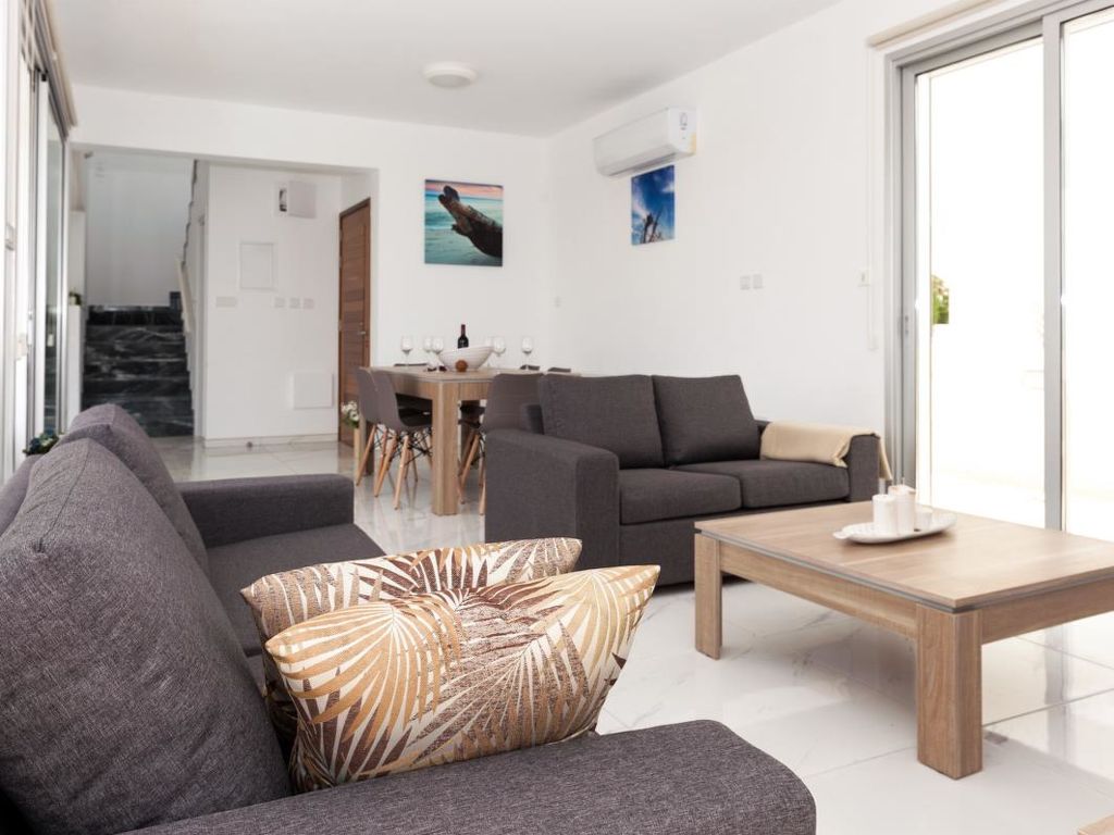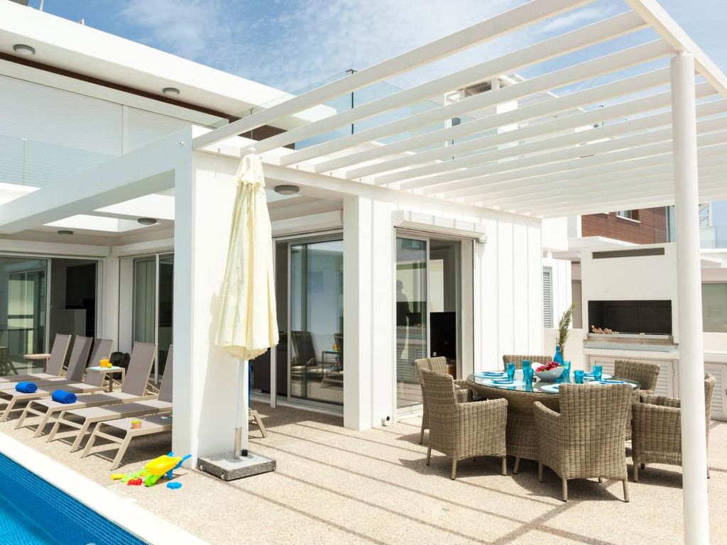 Luxuriöse Villa "ANEBL12". Hausausstattung: Klimaanlage, Waschmaschine (zur Alleinbenutzung). Zufahrt & Parkmöglichkeiten: reservierter Parkplatz. Ganzjährig Zufahrt bis zum Haus möglich. Lage: im Ortszentrum von Ayia Napa. Umgebung des Hauses: Grundstück (zur Alleinbenutzung), Swimming Pool (zur Alleinbenutzung, Länge 8 m x Breite 4 m), Grill (zur Alleinbenutzung). Infrastruktur und Distanzen: Supermarkt 400 m, Sandstrand 3 km.