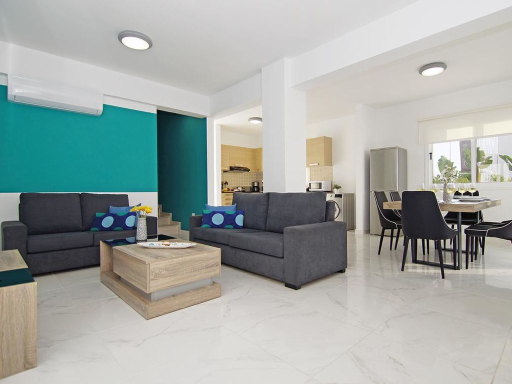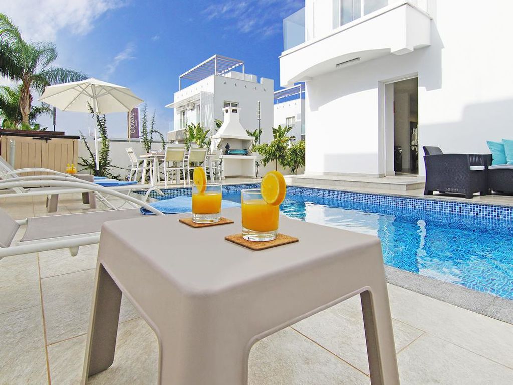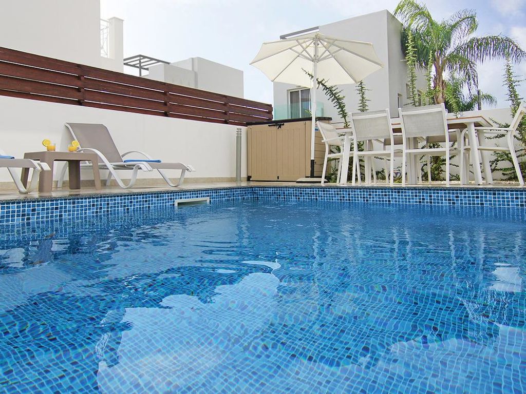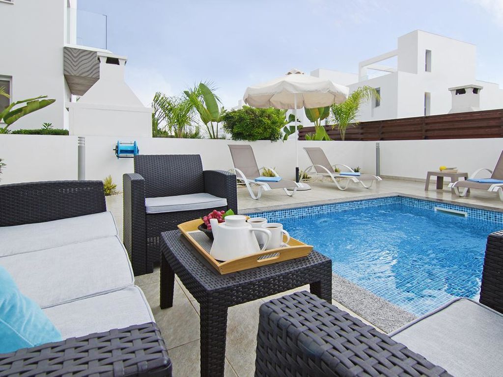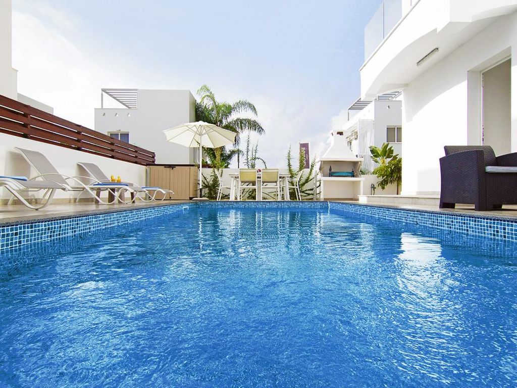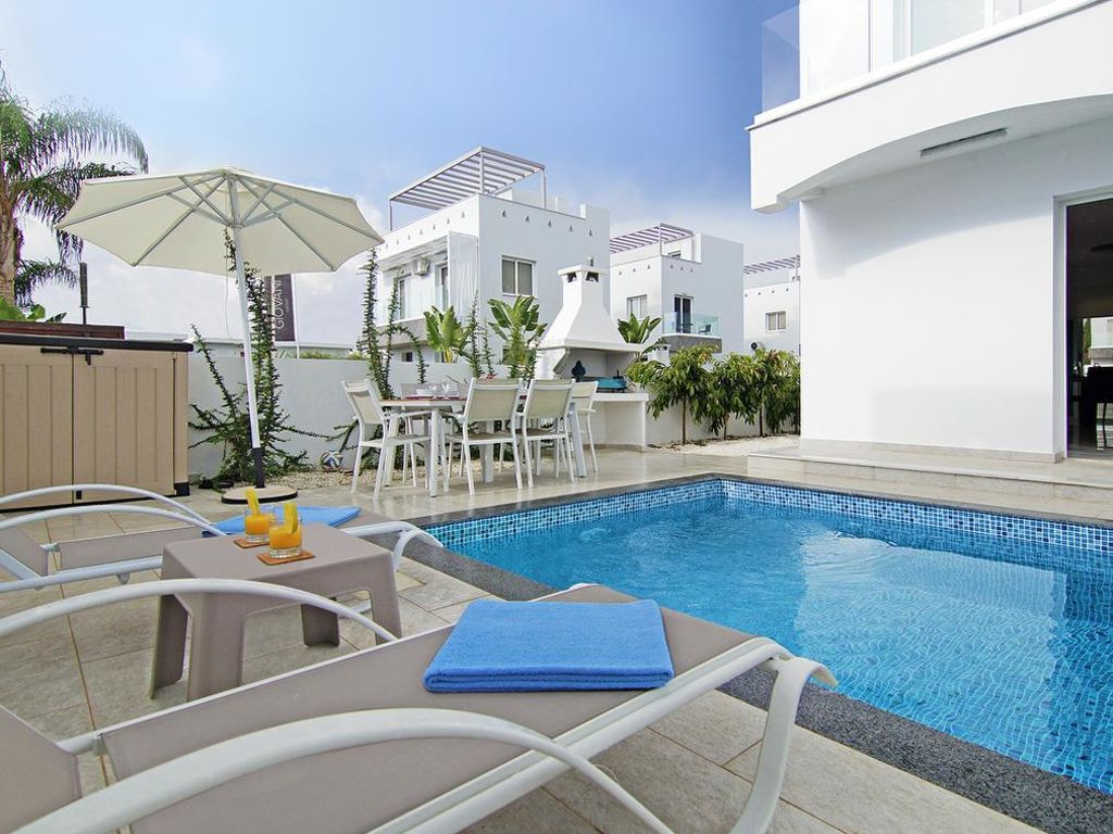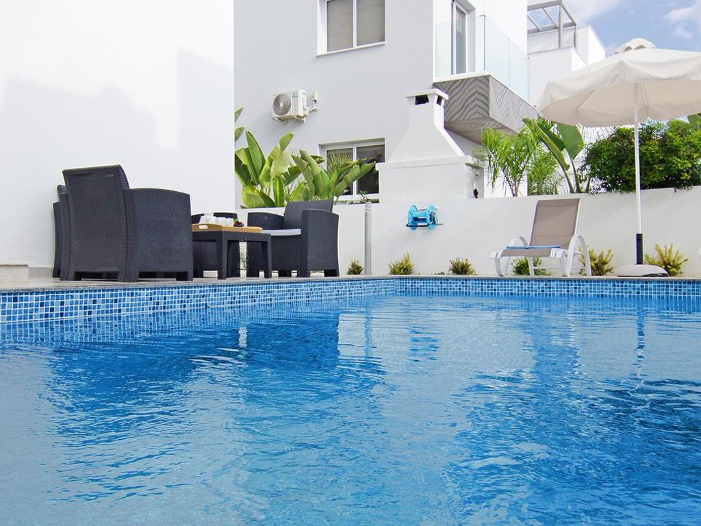 Komfortable Villa "ANNIS19". Hausausstattung: Klimaanlage, Waschmaschine (zur Alleinbenutzung). Zufahrt & Parkmöglichkeiten: reservierter Parkplatz. Ganzjährig Zufahrt bis zum Haus möglich. Lage: im Ortszentrum von Ayia Napa. Umgebung des Hauses: Grundstück (zur Alleinbenutzung), Swimming Pool (zur Alleinbenutzung, Länge 7 m x Breite 3 m), Aussendusche (zur Alleinbenutzung). Infrastruktur und Distanzen: Supermarkt 300 m, Restaurant 400 m, Sandstrand 500 m.