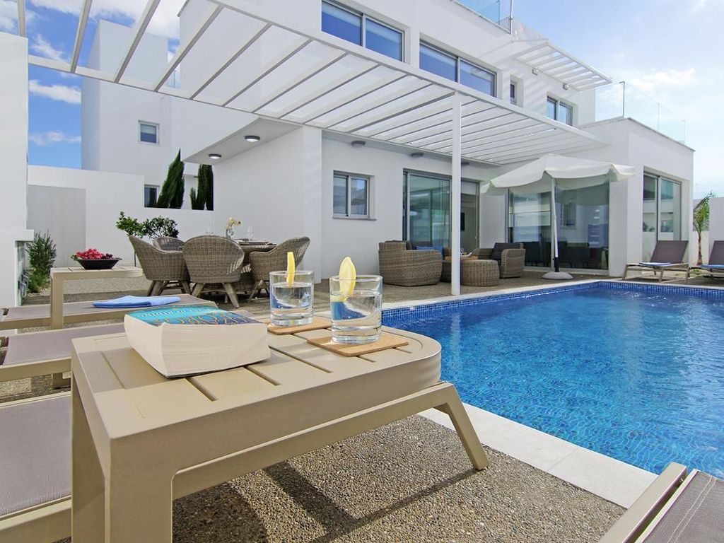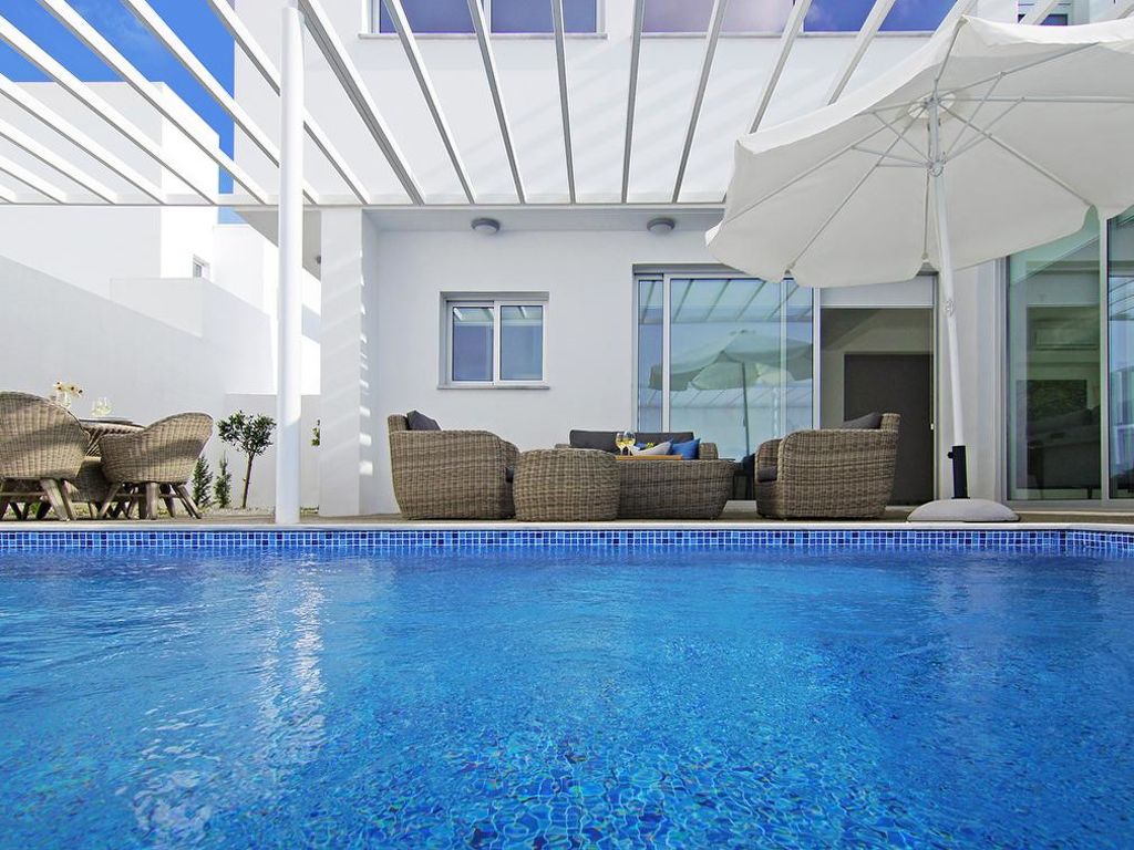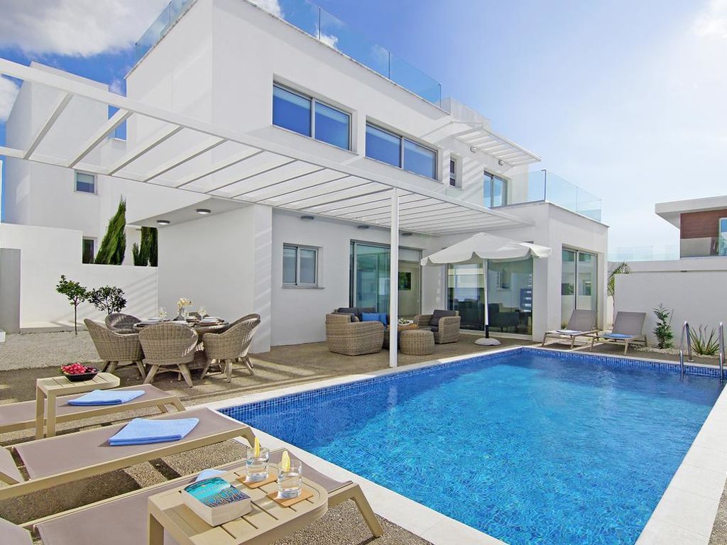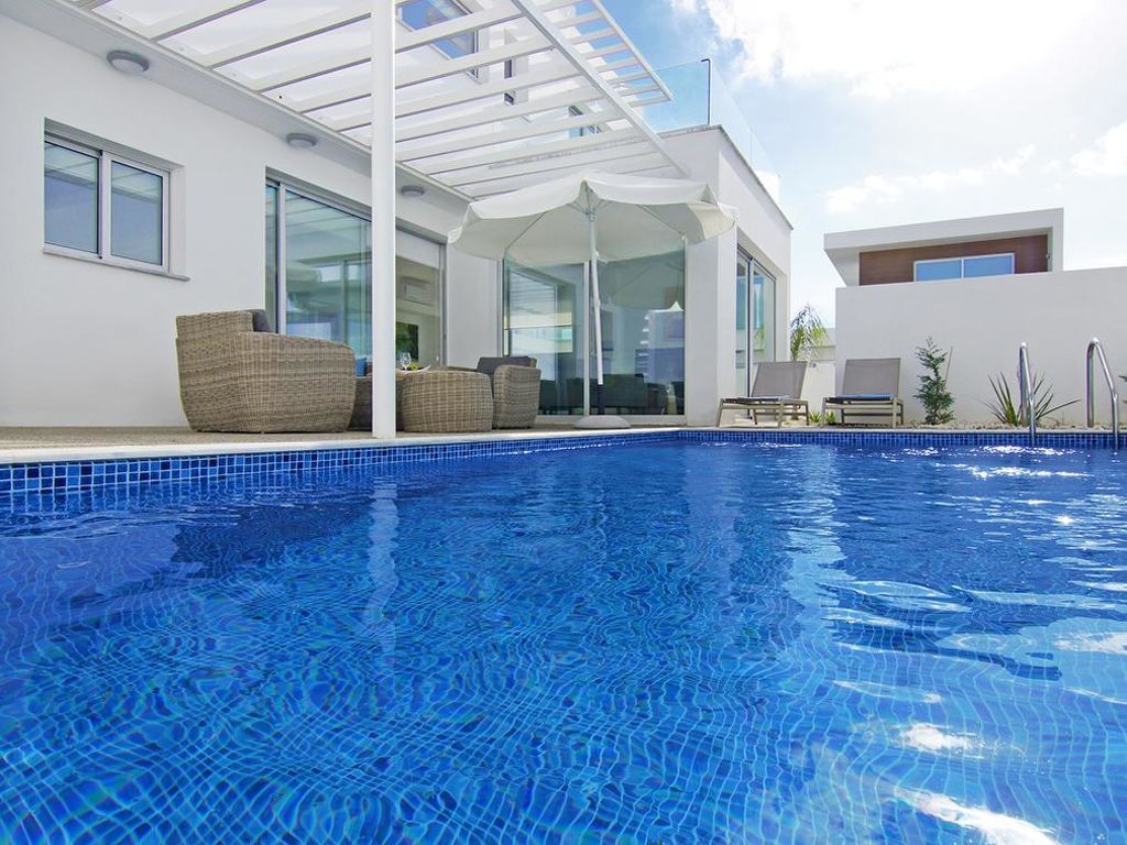 Luxuriöse Villa "ANEBL34". Hausausstattung: Klimaanlage, Waschmaschine (zur Alleinbenutzung). Zufahrt & Parkmöglichkeiten: reservierter Parkplatz. Ganzjährig Zufahrt bis zum Haus möglich. Lage: im Ortszentrum von Ayia Napa, im Grünen. Umgebung des Hauses: Grundstück (zur Alleinbenutzung), Swimming Pool (zur Alleinbenutzung, Länge 8 m x Breite 4 m). Infrastruktur und Distanzen: Supermarkt 700 m, Sandstrand 2 km.