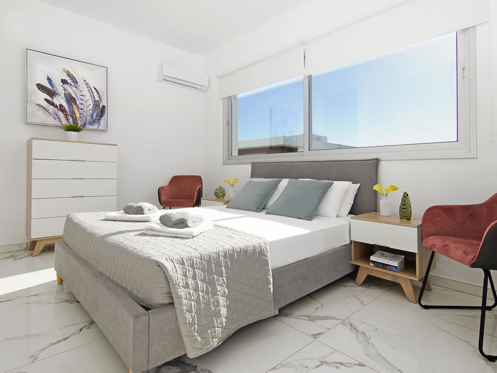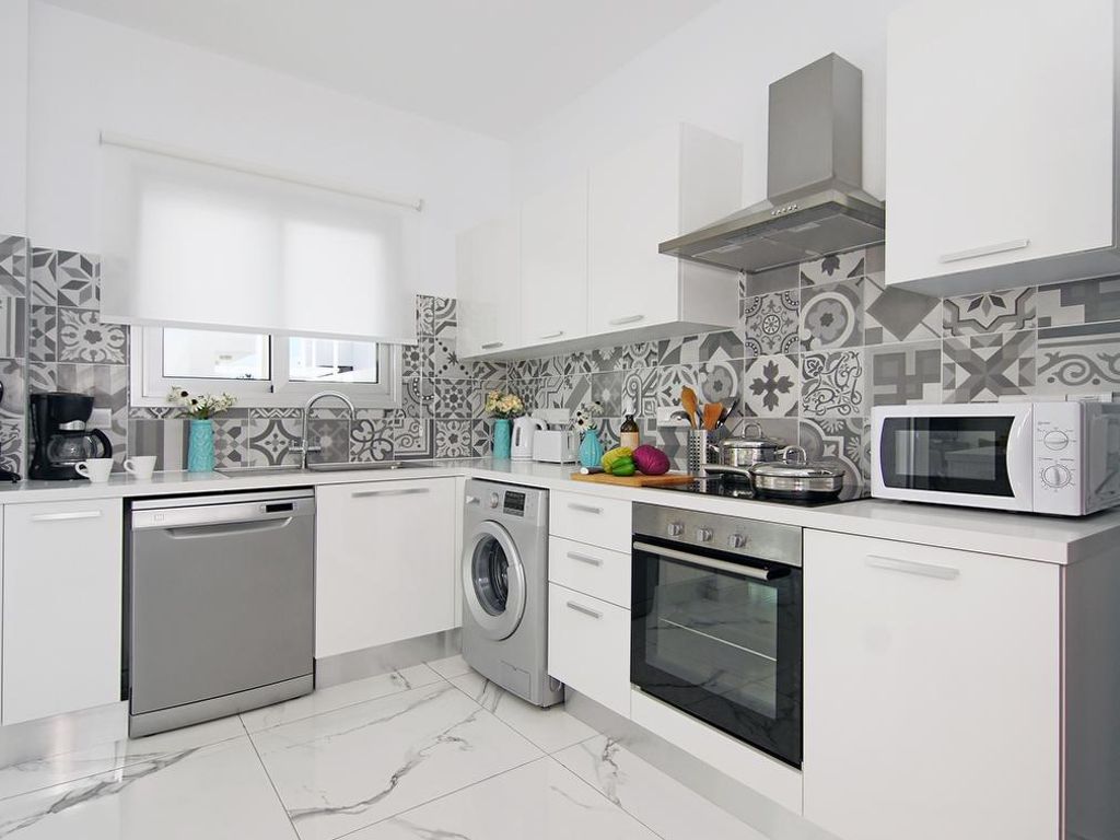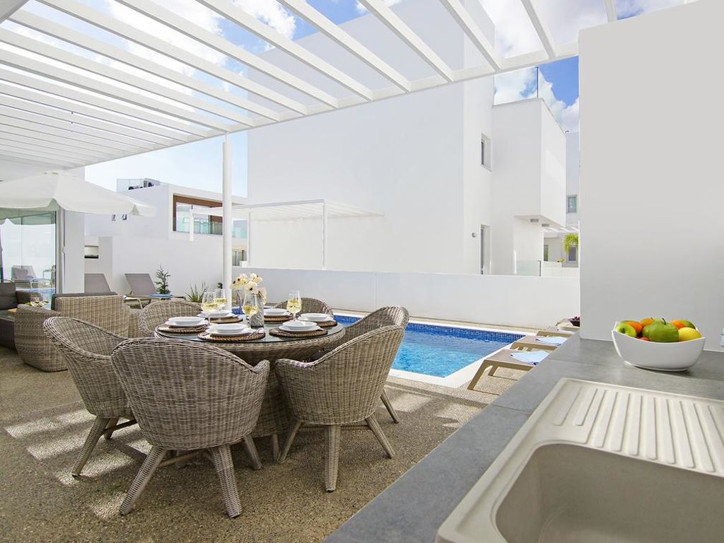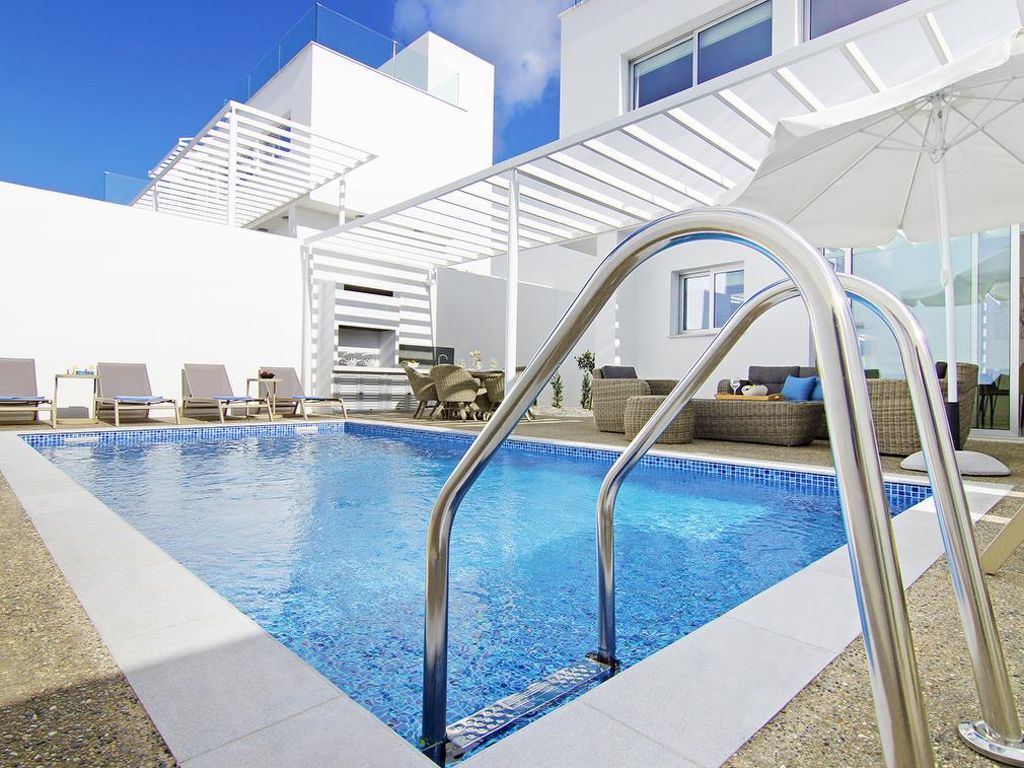 Luxuriöse Villa "ANEBL34". Hausausstattung: Klimaanlage, Waschmaschine (zur Alleinbenutzung). Zufahrt & Parkmöglichkeiten: reservierter Parkplatz. Ganzjährig Zufahrt bis zum Haus möglich. Lage: im Ortszentrum von Ayia Napa, im Grünen. Umgebung des Hauses: Grundstück (zur Alleinbenutzung), Swimming Pool (zur Alleinbenutzung, Länge 8 m x Breite 4 m). Infrastruktur und Distanzen: Supermarkt 700 m, Sandstrand 2 km.