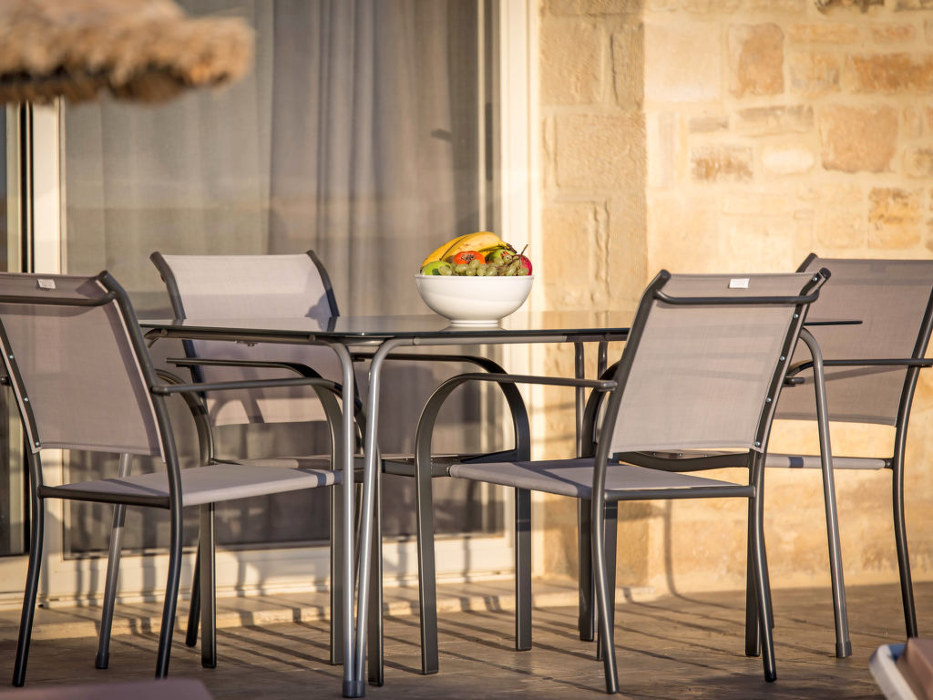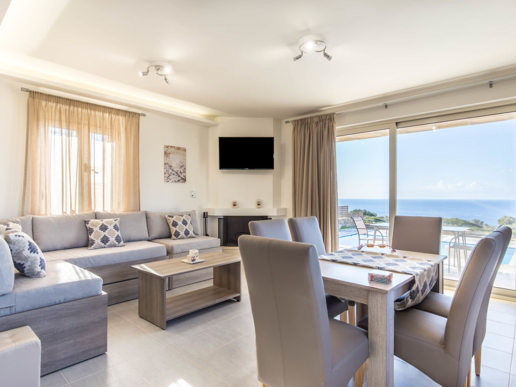 "Thea", 4-Zimmer-Villa 120 m2. Geräumig und hell, sehr komfortabel und luxuriös eingerichtet: offenes Wohn-/Esszimmer mit 2 Diwanbetten, offenem Kamin, Esstisch, Sat-TV und Klimaanlage. Ausgang zur Veranda, zum Schwimmbad. 1 Doppelzimmer mit 2 Betten, Sat-TV und Klimaanlage. Ausgang zum Garten, zum Schwimmbad. Grosse Küche (4 Kochplatten, Geschirrspüler, Mikrowelle, Tiefkühler, elektrische Kaffeemaschine, Dampfgarer). Ausgang zur Veranda, zum Schwimmbad. Bad/WC. Obergeschoss: 2 Doppelzimmer, jedes Zimmer mit 1 Doppelbett, Bad, Sat-TV und Klimaanlage. Ausgang zur Veranda. Gartengrill. Sehr schöne Panoramasicht auf das Meer und die Landschaft. Zur Verfügung: Waschmaschine, Haartrockner. Internet (Wireless LAN, gratis). Geeignet für Familien. 1041K122K2675901