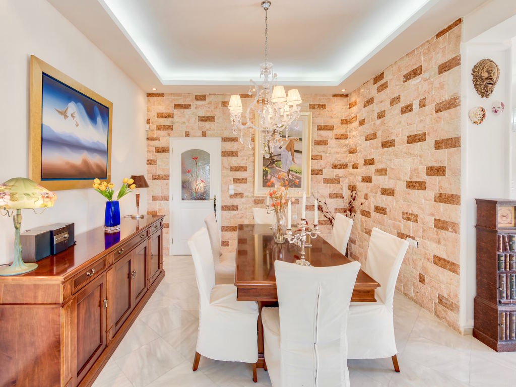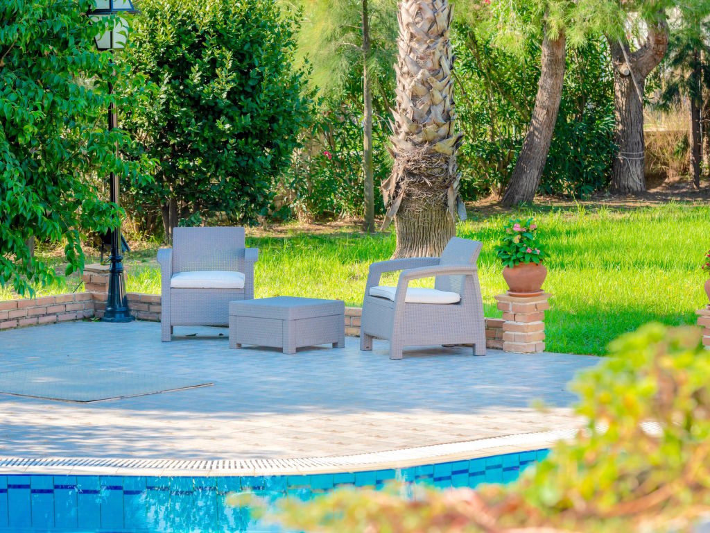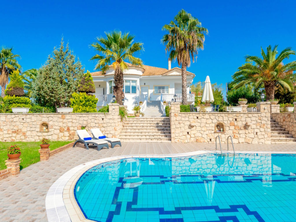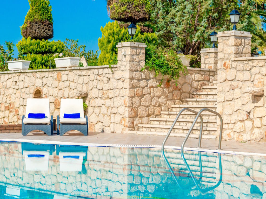 "Silia", 4-Zimmer-Villa 180 m2. Sehr schön und stilvoll eingerichtet: grosser Salon mit offenem Kamin und Sat-TV (Flachbildschirm). Ausgang zum Balkon. Offenes Esszimmer mit Esstisch. 2 grosse Doppelzimmer, jedes Zimmer mit 1 Doppelbett. Ausgang zum Balkon. 1 Doppelzimmer mit 2 Betten. Ausgang zum Balkon. Offene Küche (Backofen, Geschirrspüler, 4 Glaskeramikherd Platten, Mikrowelle, elektrische Kaffeemaschine). Dusche/WC, Bad/Dusche/WC. Klimaanlage. 2 Balkone. Balkonmöbel, Sitzplatz. Sicht auf das Schwimmbad und den Garten. Zur Verfügung: Waschmaschine, Wäschetrockner, Safe, Haartrockner. Internet (Wireless LAN, gratis). 1088239
