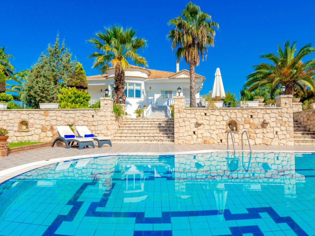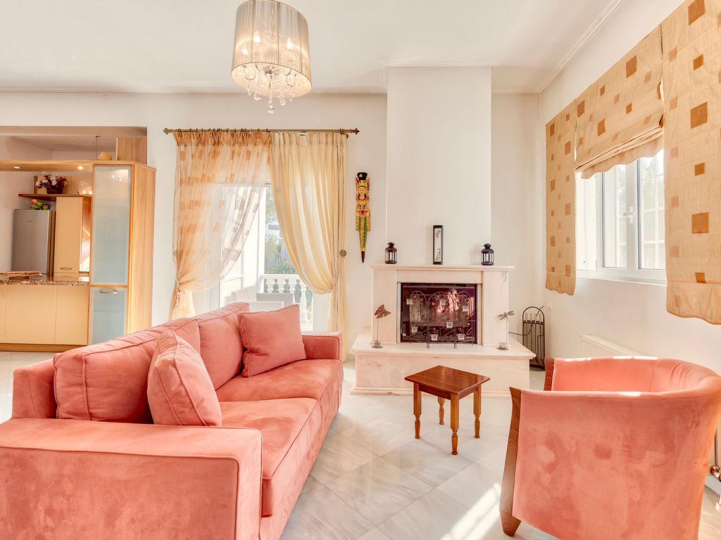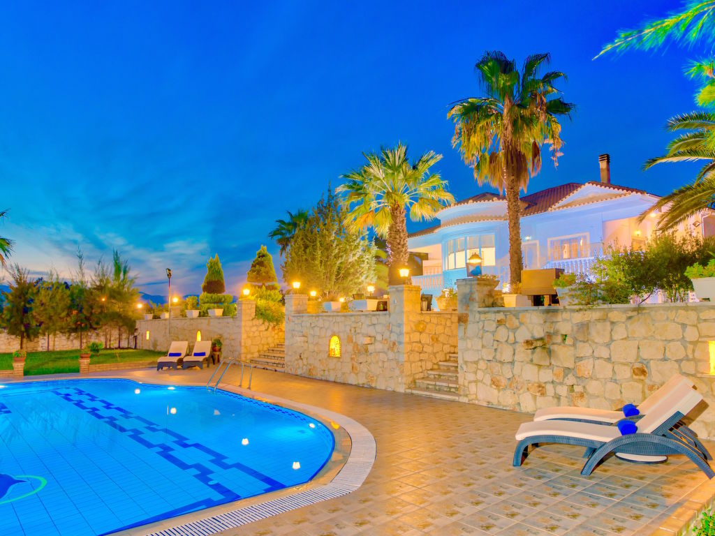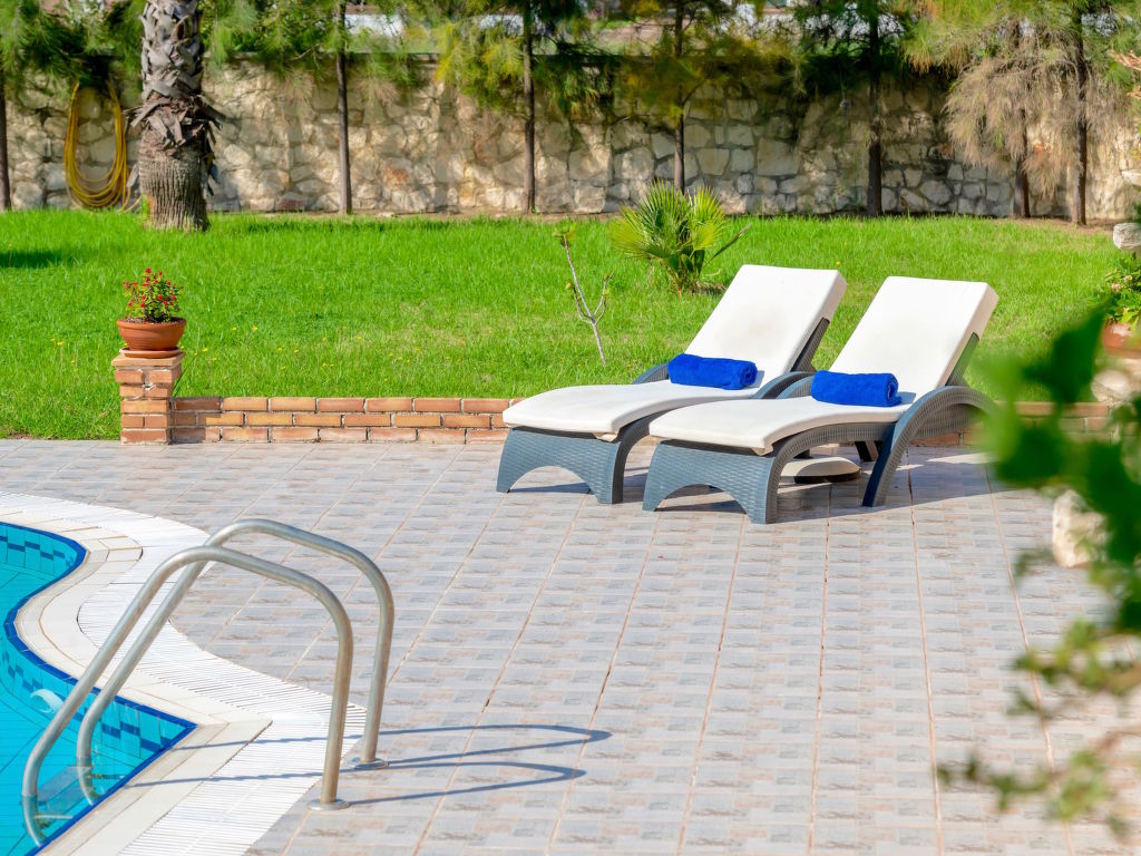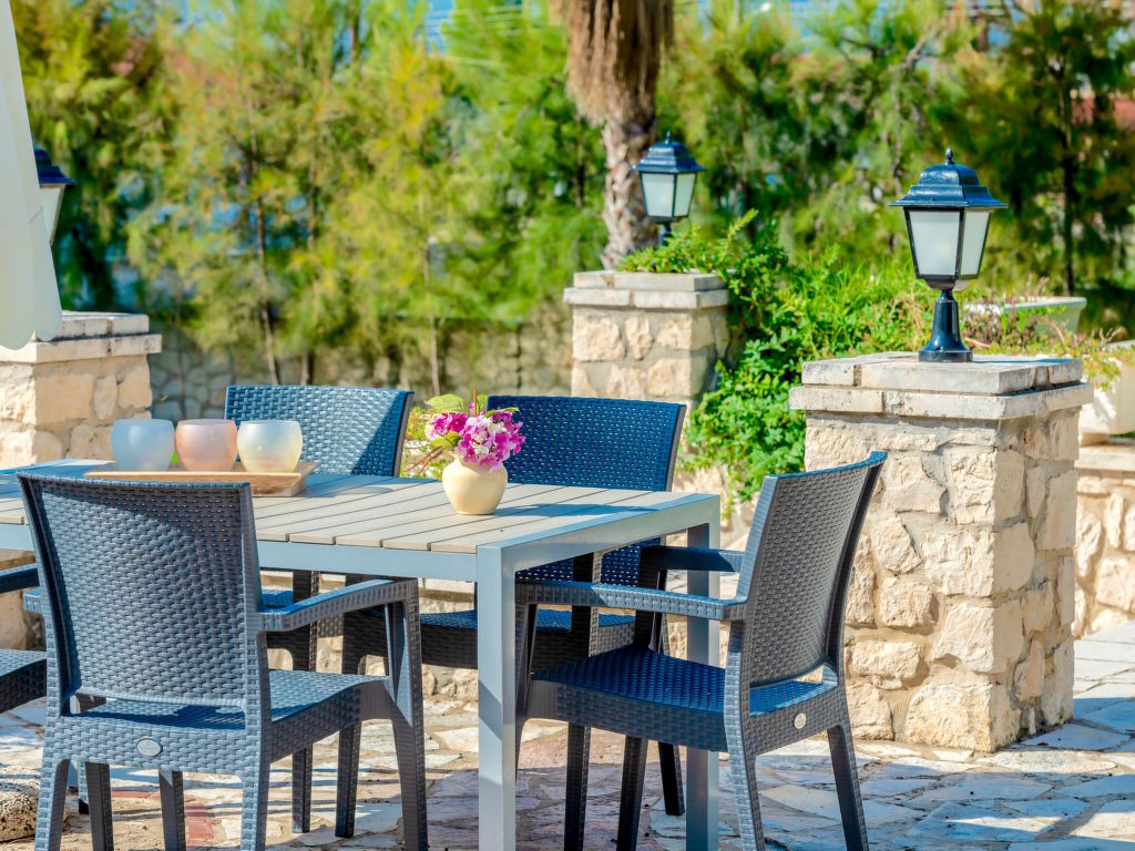 "Silia", 4-Zimmer-Villa 180 m2. Sehr schön und stilvoll eingerichtet: grosser Salon mit offenem Kamin und Sat-TV (Flachbildschirm). Ausgang zum Balkon. Offenes Esszimmer mit Esstisch. 2 grosse Doppelzimmer, jedes Zimmer mit 1 Doppelbett. Ausgang zum Balkon. 1 Doppelzimmer mit 2 Betten. Ausgang zum Balkon. Offene Küche (Backofen, Geschirrspüler, 4 Glaskeramikherd Platten, Mikrowelle, elektrische Kaffeemaschine). Dusche/WC, Bad/Dusche/WC. Klimaanlage. 2 Balkone. Balkonmöbel, Sitzplatz. Sicht auf das Schwimmbad und den Garten. Zur Verfügung: Waschmaschine, Wäschetrockner, Safe, Haartrockner. Internet (Wireless LAN, gratis). 1088239