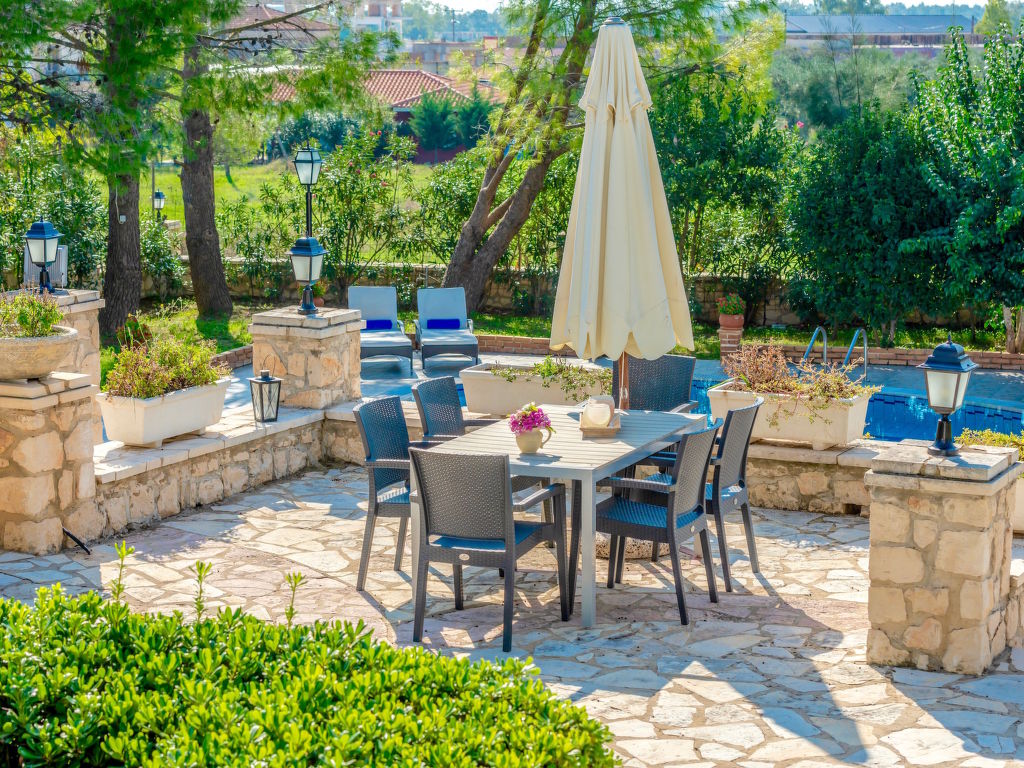 Sehr moderne, schöne, alleinstehende Villa "Silia", Baujahr 2010, renoviert im Jahre 2018. Im Ort, 300 m vom Zentrum von Ampelokipoi, exzellente Lage: Absolut zentral und dennoch ruhig, 3 km vom Strand, in einer Sackgasse. Zur Alleinbenutzung: grosser, schöner Garten (eingezäunt) mit Blumen und Bäumen, Schwimmbad nicht einsehbar (01.05.-31.10.). Sitzplatz, Gartenmöbel, Grill. Im Hause: Klimaanlage. Wäschewechsel 2 mal wöchentlich. Handtuchwechsel 2 mal wöchentlich. Wohnungsreinigung 2 mal wöchentlich (inkl.). Parkplatz beim Haus. Supermarkt 700 m, Einkaufszentrum 300 m, Restaurant 200 m, Bäckerei 450 m, Sandstrand "Laganas" 3 km. Nahe gelegene Sehenswürdigkeiten: Zante town 2 km, Kalamaki beach 3 km. Bitte beachten: Fahrzeug empfohlen. Geeignet für Familien, Babyausstattung auf Anfrage (inkl.). Jugendgruppen nur auf Anfrage.