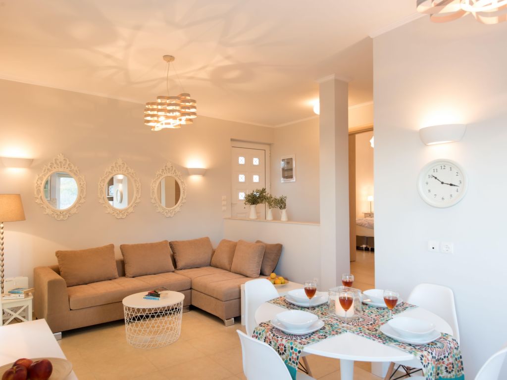 "Siren", 4-Zimmer-Villa 130 m2 auf 2 Stockwerken. Geräumig und hell, modern und stilvoll eingerichtet: 1 Doppelzimmer mit 1 Doppelbett. Ausgang zur Terrasse. 1 Doppelzimmer mit 1 Doppelbett, Küchenblock, Dusche/WC und Sat-TV (Flachbildschirm). Ausgang zur Terrasse. Wohnküche (Backofen, Geschirrspüler, 4 Glaskeramikherd Platten, Mikrowelle, elektrische Kaffeemaschine) mit 1 Diwanbett, Esstisch und Sat-TV (Flachbildschirm). Ausgang zur Terrasse. Bad/Dusche/WC. Klimaanlage. Obergeschoss: 1 Doppelzimmer mit 1 Doppelbett, Dusche/WC und Klimaanlage. Ausgang zum Balkon. Balkon, grosse Terrasse. Terrassenmöbel, Balkonmöbel, Gartengrill (mobil), Sitzplatz. Herrliche Sicht auf das Meer. Zur Verfügung: Waschmaschine, Safe, Bügeleisen, Haartrockner. Internet (Wireless LAN, gratis). Bitte beachten: geeignet für Familien ein Doppelzimmer liegt außerhalb der Wohnung. 1058301