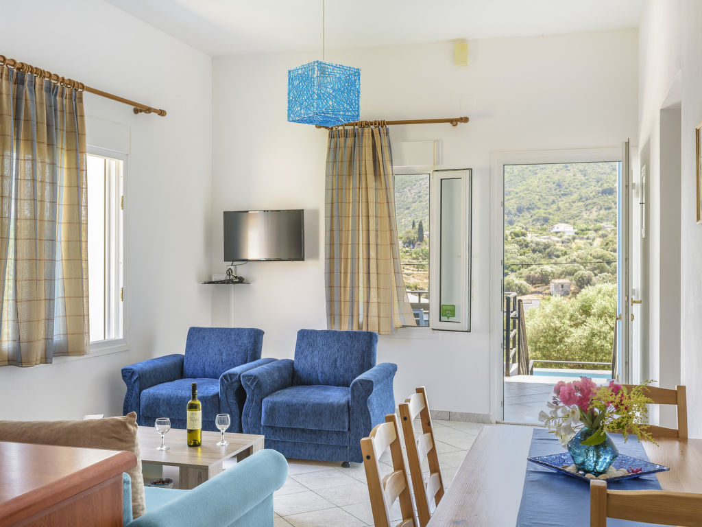 Schöne, alleinstehende, komfortable Villa "Azzurro", Baujahr 2008, umgeben von Bäumen. Im Ortsteil Agia Paraskevi, 450 m vom Meer, 450 m vom Strand. Zur Alleinbenutzung: schöner Garten mit Blumen und Bäumen, Schwimmbad eckig (15.04.-31.10.). Aussendusche, Grill. Wäschewechsel 2 mal wöchentlich. Handtuchwechsel 2 mal wöchentlich. Wohnungsreinigung 2 mal wöchentlich. Parkplatz beim Haus. Lebensmittelgeschäft 9 km, Supermarkt 9 km, Restaurant 450 m, Bäckerei 9 km, Café 450 m, Kieselstrand "Agia Paraskevi" 450 m, Tauchzentrum 18.2 km. Reitstall 6.4 km. Nahe gelegene Sehenswürdigkeiten: Samos Wine Museum 11.4 km, Archaeological Museum of Samos 9.3 km, Natural History Museum of Aegean 22.2 km, Archaeological Museum of Pythagorion 20.7 km, Pythagoras Caves 60.3 km. Bitte beachten: Fahrzeug empfohlen. Geeignet für Familien, Babyausstattung auf Anfrage (inkl.). Jugendgruppen nur auf Anfrage.
