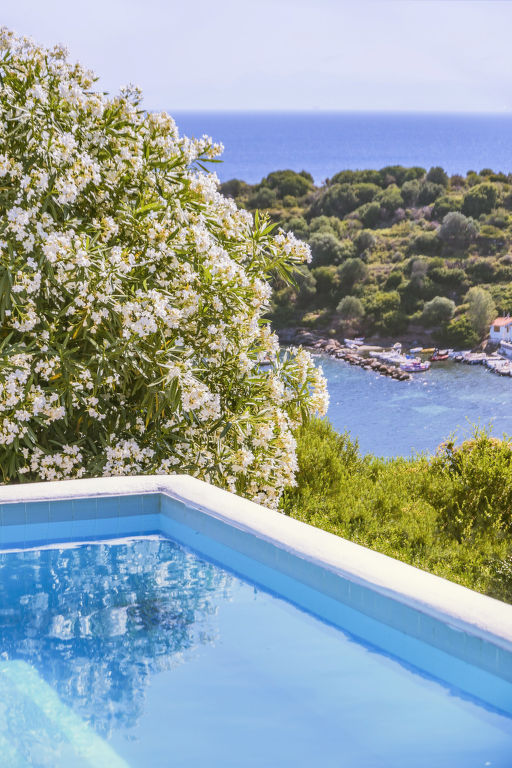 "Azzurro", 3-Zimmer-Villa 90 m2. Geräumig und hell, komfortabel und schön eingerichtet: offenes Wohn-/Schlafzimmer mit 2 Diwanbetten und Sat-TV (Flachbildschirm). Ausgang zur Terrasse, zum Schwimmbad. 1 Doppelzimmer mit 1 Doppelbett. Ausgang zur Terrasse. 1 Doppelzimmer mit 2 Betten. Ausgang zur Terrasse. Offene Küche (Backofen, 4 Glaskeramikherd Platten, elektrische Kaffeemaschine, Kapseln für die Kaffeemaschine (Nespresso) extra). Dusche/WC. Klimaanlage. Grosse Terrasse teilweise überdacht. Gartengrill. Schöne Sicht auf das Meer und die Landschaft. Zur Verfügung: Waschmaschine, Bügeleisen, Haartrockner. Internet (Wireless LAN, gratis). Bitte beachten: Nichtraucher-Haus. 0311K12K20311400
