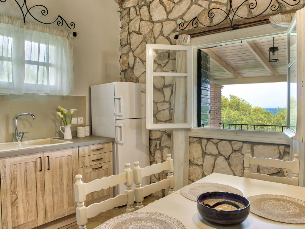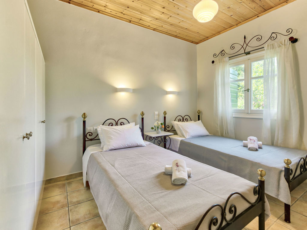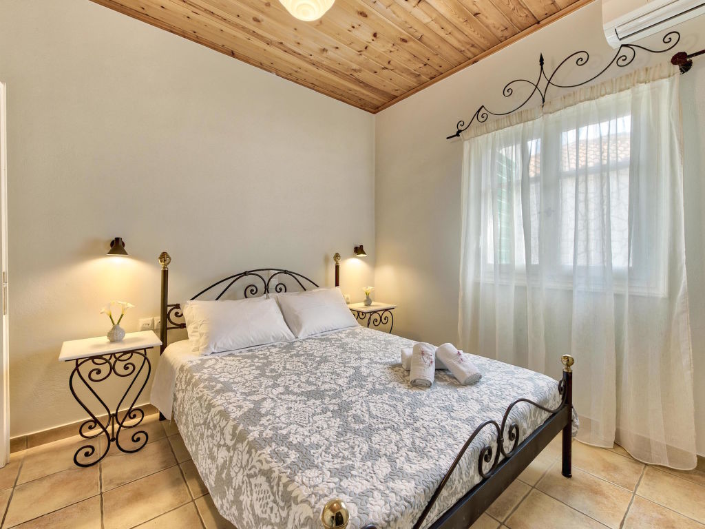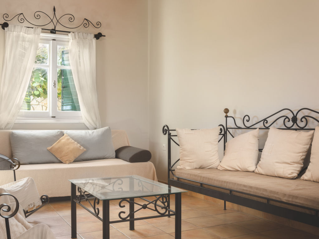 "Helona", 3-Zimmer-Villa 80 m2. Geräumig und hell, sehr schön und rustikal eingerichtet: Wohn-/Schlafzimmer mit 1 Diwanbett, 1 Doppeldiwanbett und Sat-TV (Flachbildschirm). Ausgang zum Balkon. 1 Doppelzimmer mit 1 Doppelbett. 1 Doppelzimmer mit 2 Betten. Offene Küche (Backofen, Geschirrspüler, 4 Glaskeramikherd Platten, elektrische Kaffeemaschine) mit Esstisch. Dusche/WC. Klimaanlage. Grosser Balkon. Balkonmöbel. Sehr schöne Sicht auf das Meer. Zur Verfügung: Waschmaschine, Safe, Bügeleisen, Haartrockner. Internet (Wireless LAN, gratis). Geeignet für Familien.
