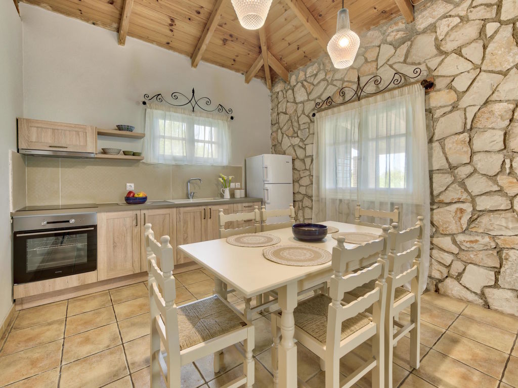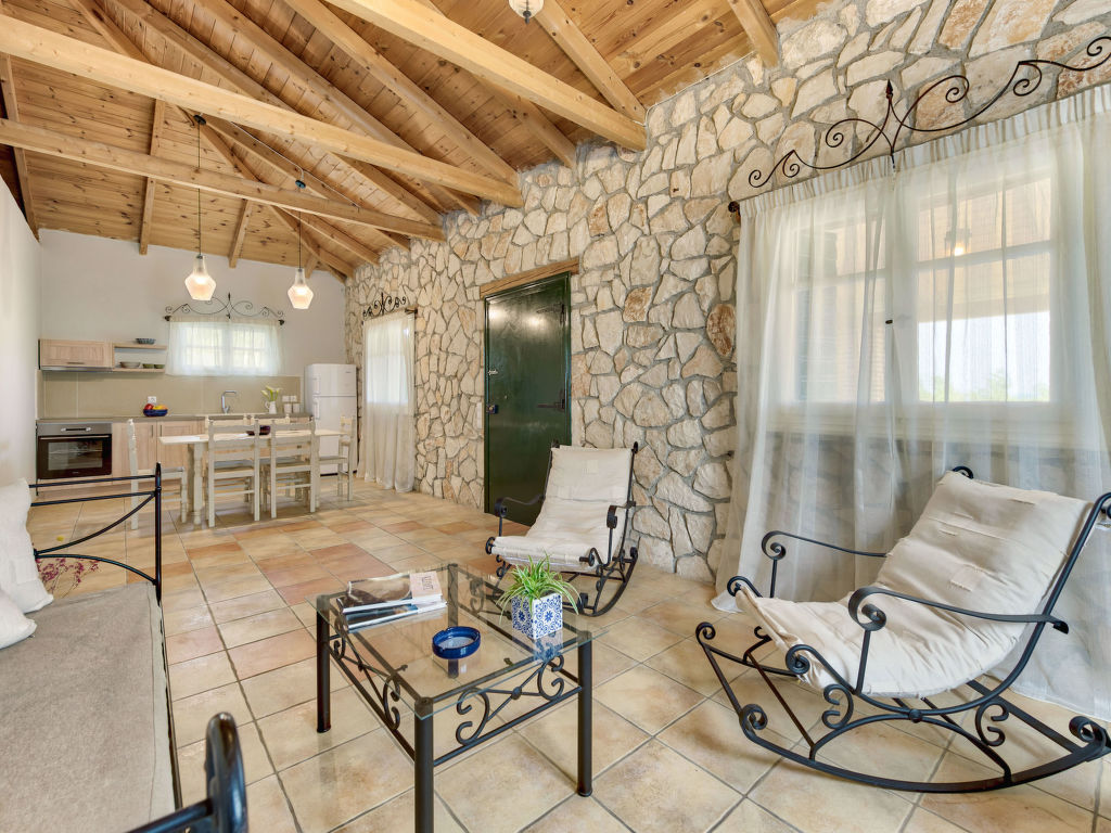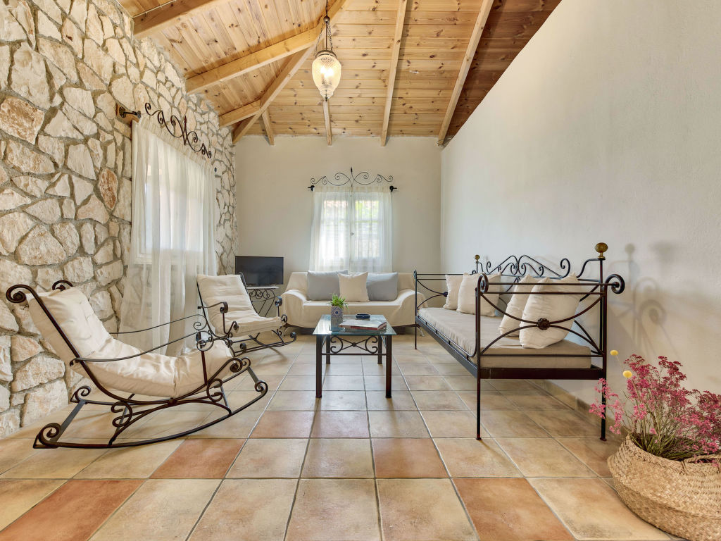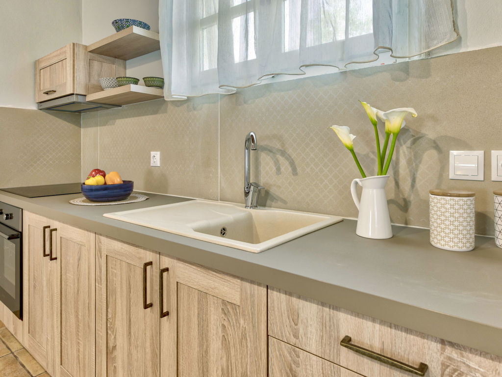 "Helona", 3-Zimmer-Villa 80 m2. Geräumig und hell, sehr schön und rustikal eingerichtet: Wohn-/Schlafzimmer mit 1 Diwanbett, 1 Doppeldiwanbett und Sat-TV (Flachbildschirm). Ausgang zum Balkon. 1 Doppelzimmer mit 1 Doppelbett. 1 Doppelzimmer mit 2 Betten. Offene Küche (Backofen, Geschirrspüler, 4 Glaskeramikherd Platten, elektrische Kaffeemaschine) mit Esstisch. Dusche/WC. Klimaanlage. Grosser Balkon. Balkonmöbel. Sehr schöne Sicht auf das Meer. Zur Verfügung: Waschmaschine, Safe, Bügeleisen, Haartrockner. Internet (Wireless LAN, gratis). Geeignet für Familien.