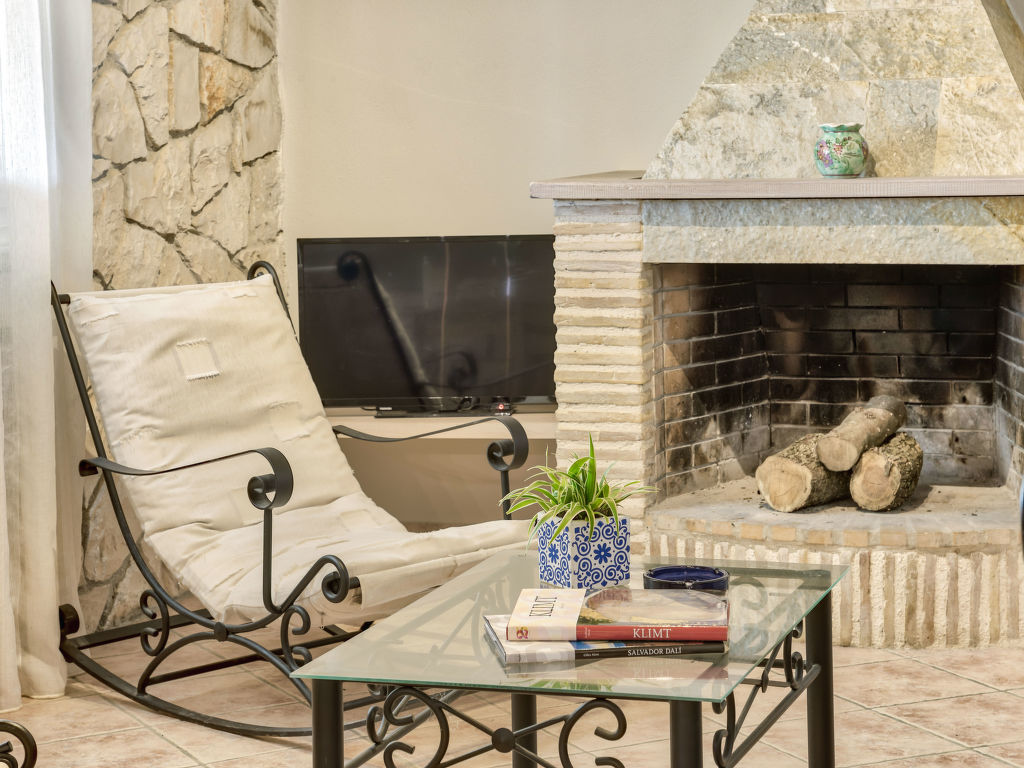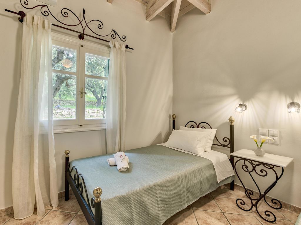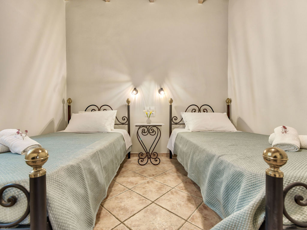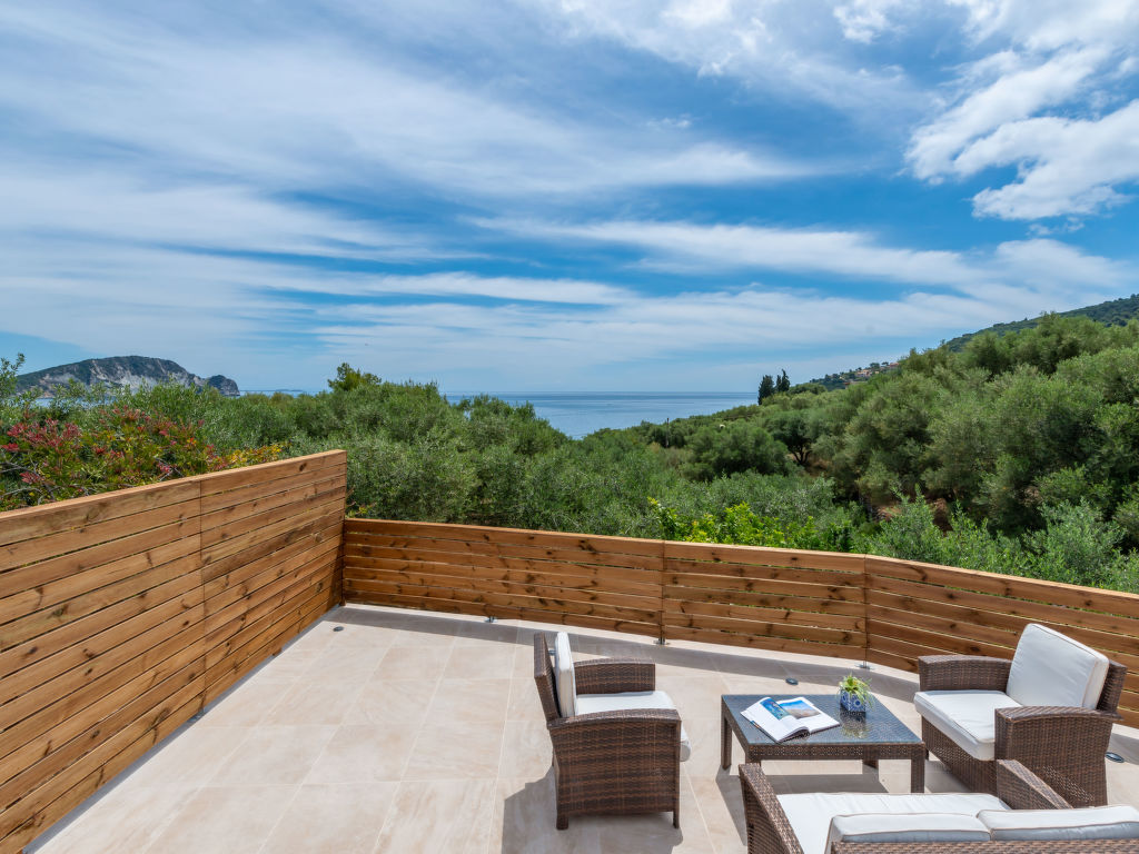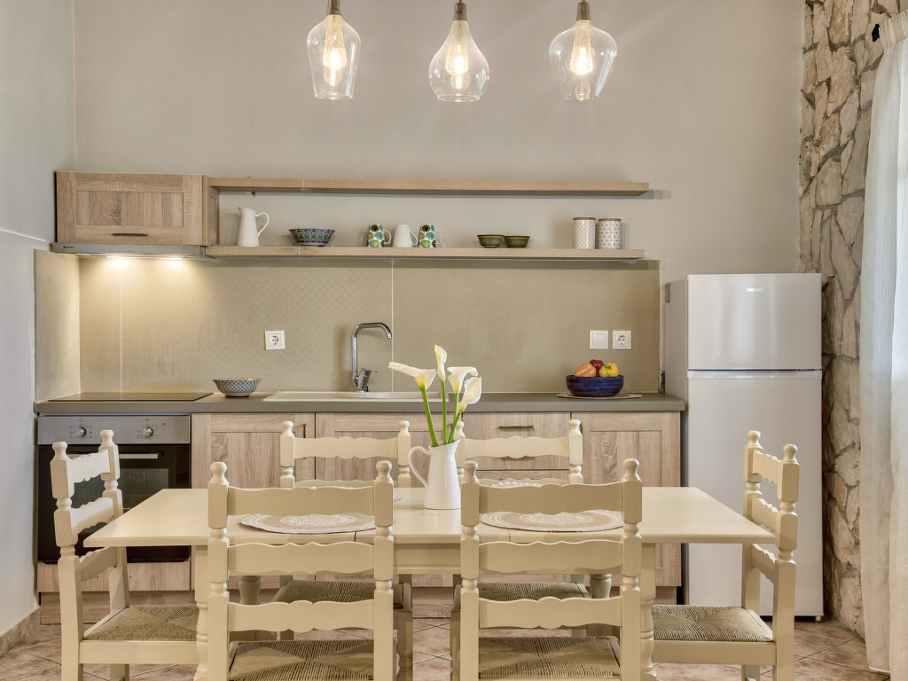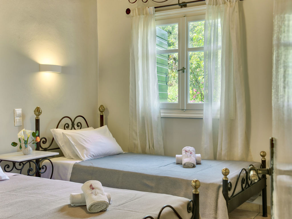 "Marathias", 3-Zimmer-Villa 80 m2. Geräumig und hell, romantisch eingerichtet: Wohn-/Schlafzimmer mit 1 Diwanbett, 1 Doppeldiwanbett und Sat-TV (Flachbildschirm). Ausgang zum Balkon. 1 Doppelzimmer mit 2 Betten und Klimaanlage. 1 Doppelzimmer mit 1 Doppelbett und Klimaanlage. Grosse, offene Küche (Backofen, Geschirrspüler, 4 Glaskeramikherd Platten, Toaster, Wasserkocher, Mikrowelle, elektrische Kaffeemaschine). Dusche/WC. Komfortable Einrichtung im Landhausstil. Terrassenmöbel, Balkonmöbel, Gartengrill, Sitzplatz. Herrliche Sicht auf das Meer. Zur Verfügung: Waschmaschine, Kinderhochstuhl, Babybett bis 2 Jahre, Haartrockner. Internet (Wireless LAN, gratis). Bitte beachten: Nichtraucher-Haus. Rauchmelder, Feuerlöscher. 1118189