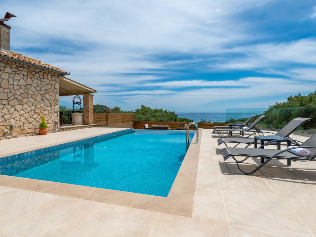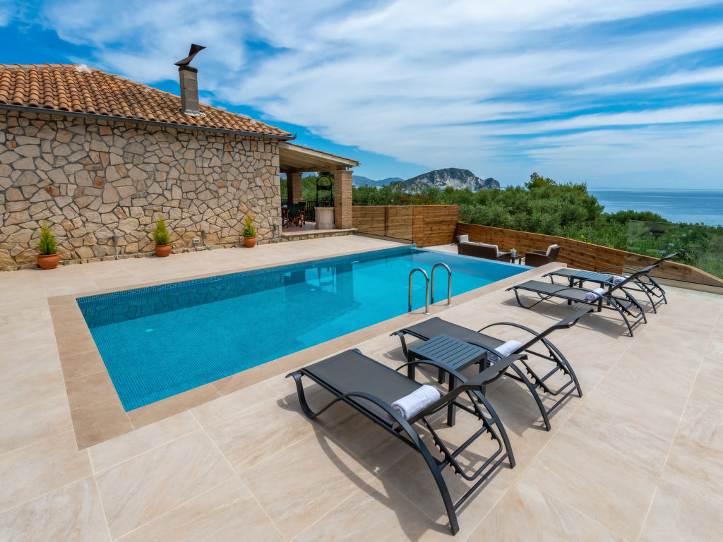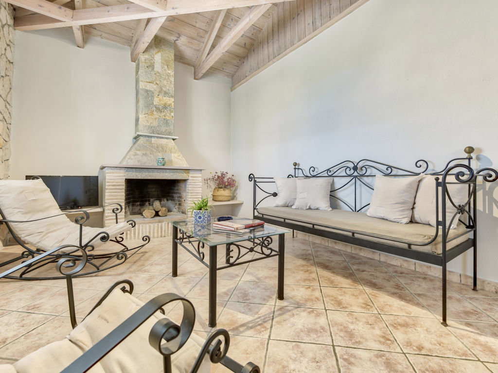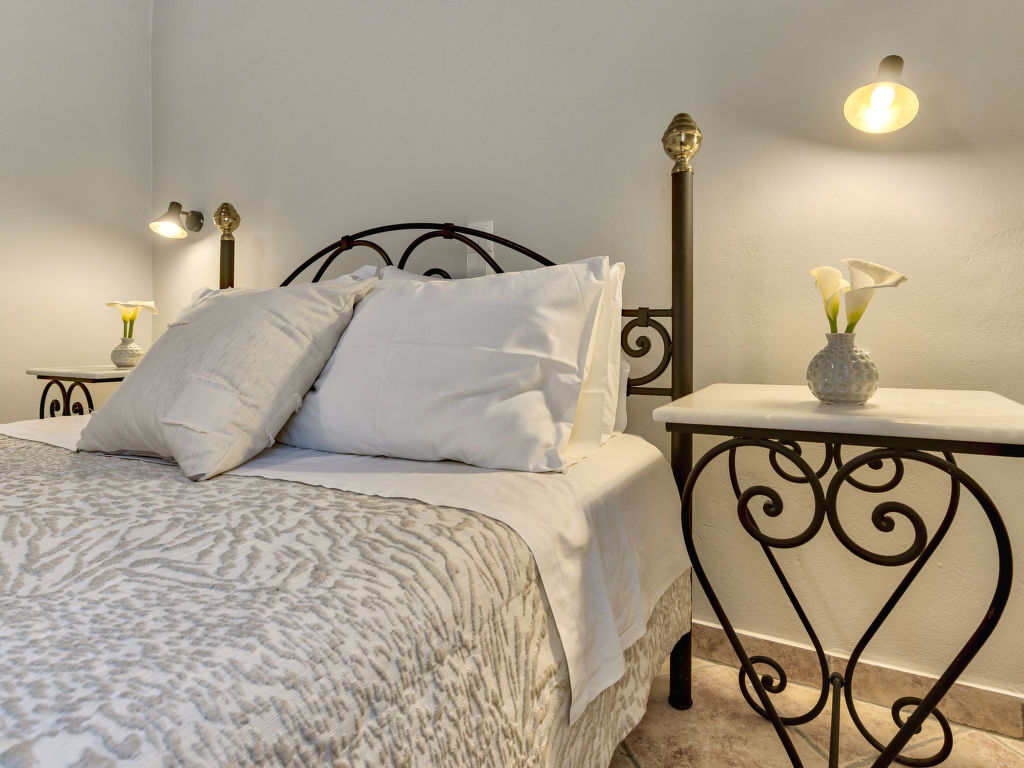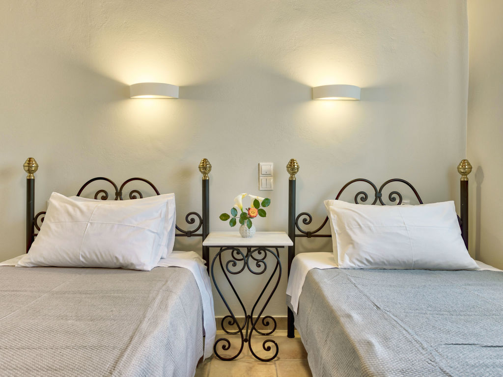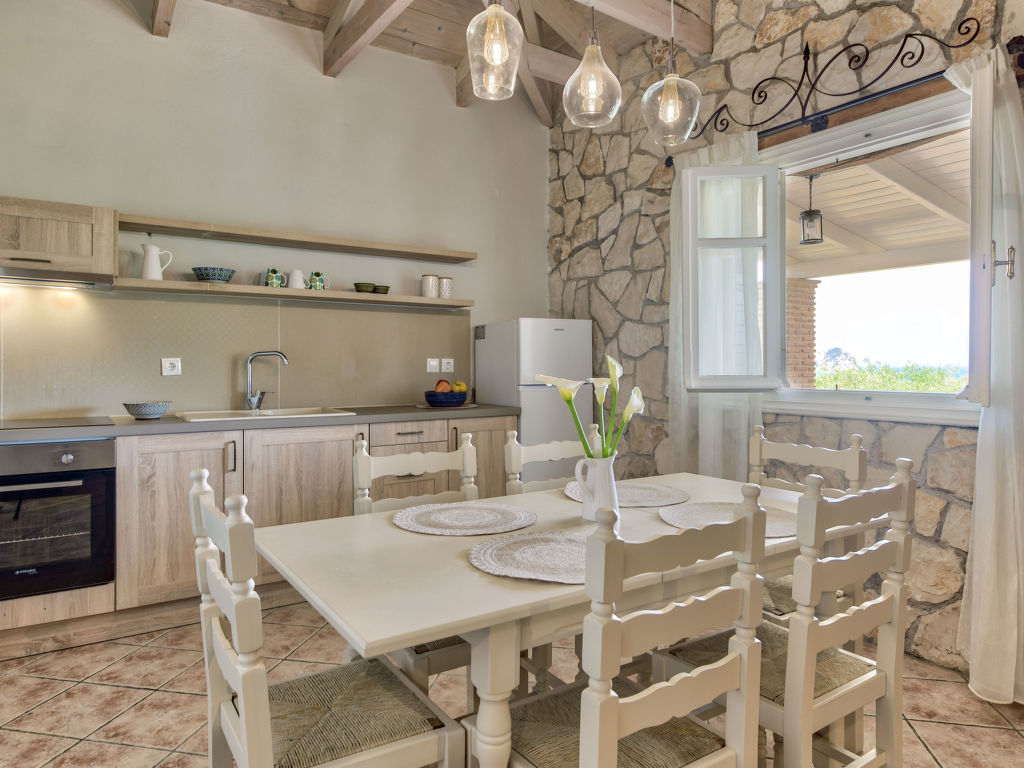 "Marathias", 3-Zimmer-Villa 80 m2. Geräumig und hell, romantisch eingerichtet: Wohn-/Schlafzimmer mit 1 Diwanbett, 1 Doppeldiwanbett und Sat-TV (Flachbildschirm). Ausgang zum Balkon. 1 Doppelzimmer mit 2 Betten und Klimaanlage. 1 Doppelzimmer mit 1 Doppelbett und Klimaanlage. Grosse, offene Küche (Backofen, Geschirrspüler, 4 Glaskeramikherd Platten, Toaster, Wasserkocher, Mikrowelle, elektrische Kaffeemaschine). Dusche/WC. Komfortable Einrichtung im Landhausstil. Terrassenmöbel, Balkonmöbel, Gartengrill, Sitzplatz. Herrliche Sicht auf das Meer. Zur Verfügung: Waschmaschine, Kinderhochstuhl, Babybett bis 2 Jahre, Haartrockner. Internet (Wireless LAN, gratis). Bitte beachten: Nichtraucher-Haus. Rauchmelder, Feuerlöscher. 1118189