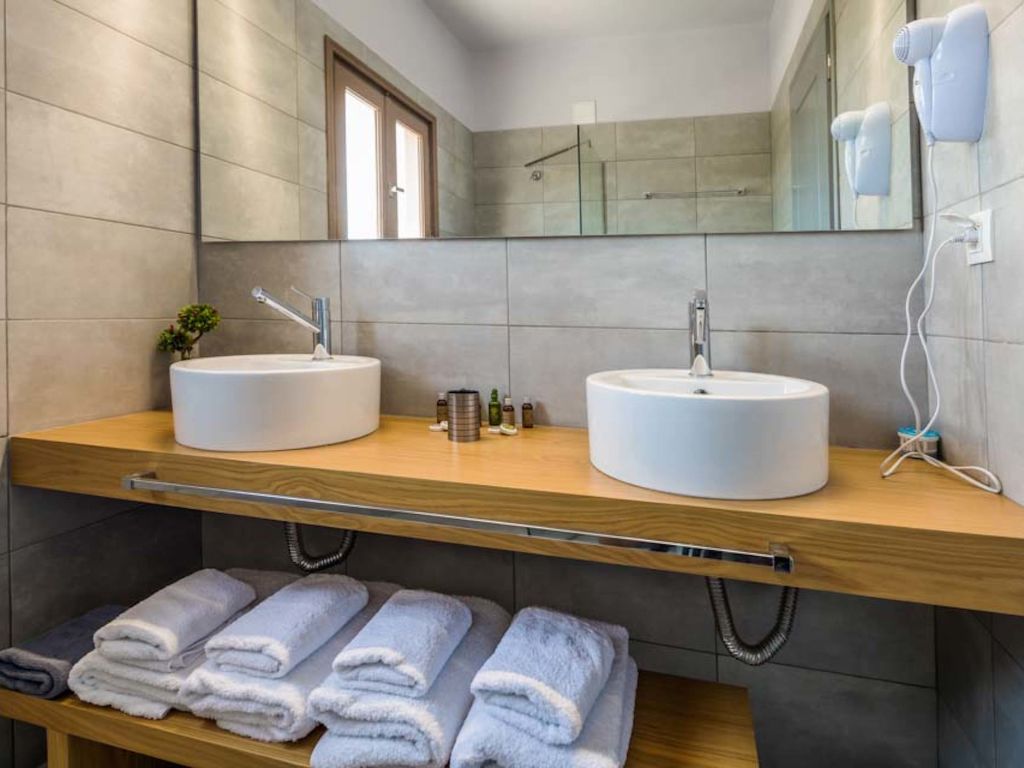 "Melograno I", 6-Zimmer-Villa 165 m2 auf 2 Stockwerken. Modern eingerichtet: Wohn-/Esszimmer mit Sat-TV (Flachbildschirm), Klimaanlage. Ausgang zum Garten, zur Terrasse, zum Schwimmbad. 1 grosses Doppelzimmer mit 2 Betten und Klimaanlage. Ausgang zum Garten. 1 Zimmer mit 1 Doppeldiwanbett und Klimaanlage. Küche (Backofen, Geschirrspüler, 4 Glaskeramikherd Platten, Toaster, Wasserkocher, Mikrowelle, elektrische Kaffeemaschine). Ausgang zum Garten. Dusche/WC. Obergeschoss: (geländerlose Treppe) 1 grosses Doppelzimmer mit 1 Doppelbett, Bad/Dusche/WC und Sat-TV (Flachbildschirm), Klimaanlage. Ausgang zum Balkon. 1 Doppelzimmer mit 1 Doppelbett und Sat-TV (Flachbildschirm), Klimaanlage. Ausgang zum Balkon. 1 Doppelzimmer mit 2 Betten und Sat-TV (Flachbildschirm), Klimaanlage. Ausgang zum Balkon. Dusche/WC. Terrassenmöbel, Gartengrill. Sehr schöne Sicht auf das Schwimmbad, den Garten und die Landschaft. Zur Verfügung: Waschmaschine, Wäschetrockner, Bügeleisen, Haartrockner. Internet (Wireless LAN, gratis). Bitte beachten: Rauchmelder, Feuerlöscher. 1047448
