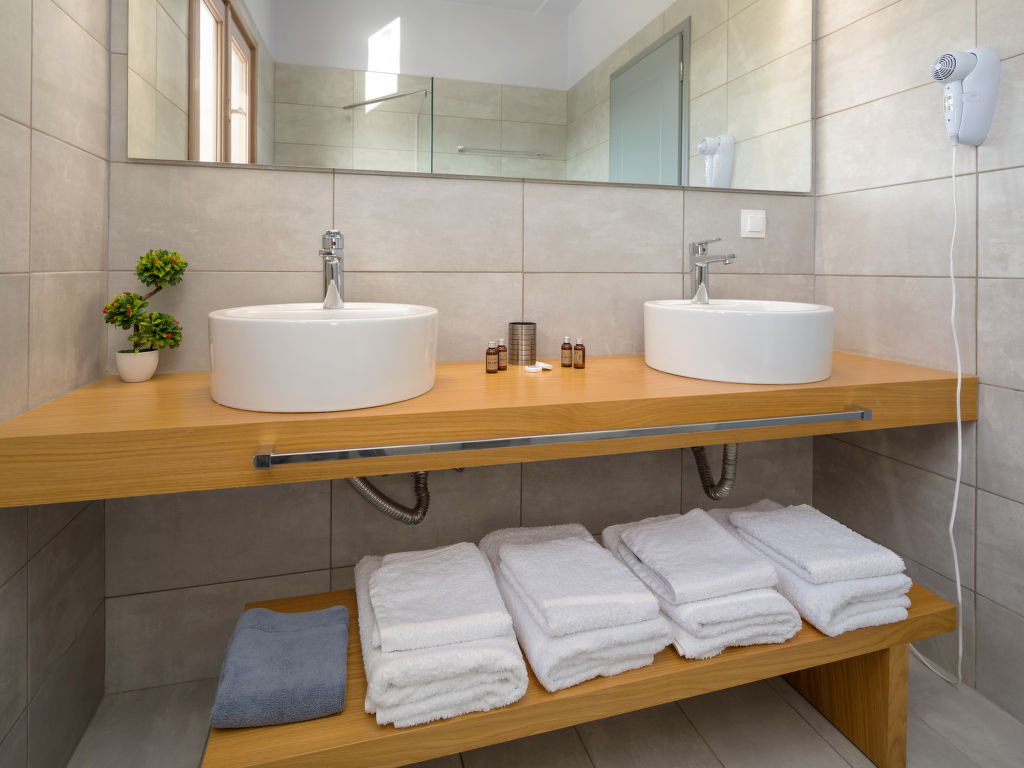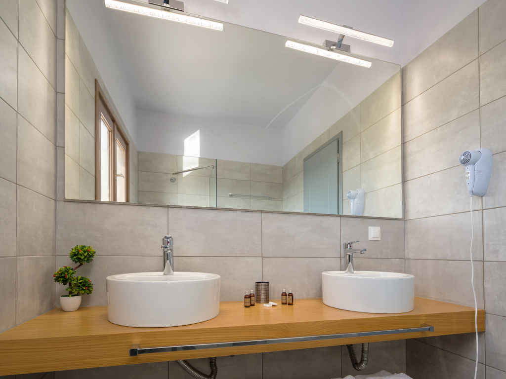 "Melograno II", 6-Zimmer-Villa 165 m2 auf 2 Stockwerken. Modern eingerichtet: Wohn-/Esszimmer mit Sat-TV (Flachbildschirm), Klimaanlage. Ausgang zum Garten, zur Terrasse, zum Schwimmbad. 1 grosses Doppelzimmer mit 2 Betten und Klimaanlage. Ausgang zum Garten. 1 Zimmer mit 1 Doppeldiwanbett und Klimaanlage. Ausgang zum Garten. Küche (Backofen, Geschirrspüler, 4 Glaskeramikherd Platten, Toaster, Wasserkocher, Mikrowelle, elektrische Kaffeemaschine). Ausgang zum Garten. Dusche/WC. Obergeschoss: (geländerlose Treppe) 1 grosses Doppelzimmer mit 1 Doppelbett, Bad/Dusche/WC und Sat-TV (Flachbildschirm), Klimaanlage. Ausgang zum Balkon. 1 Doppelzimmer mit 1 Doppelbett und Sat-TV (Flachbildschirm), Klimaanlage. Ausgang zum Balkon. 1 Doppelzimmer mit 2 Betten und Sat-TV (Flachbildschirm), Klimaanlage. Ausgang zum Balkon. Dusche/WC. Terrassenmöbel, Gartengrill. Sehr schöne Sicht auf das Schwimmbad, den Garten und die Landschaft. Zur Verfügung: Waschmaschine, Wäschetrockner, Bügeleisen, Haartrockner. Internet (Wireless LAN, gratis). Bitte beachten: Rauchmelder, Feuerlöscher. 1047448