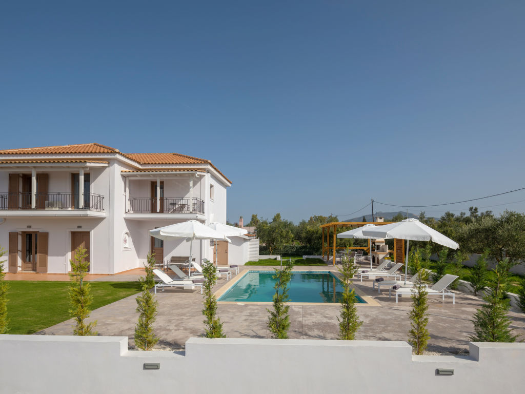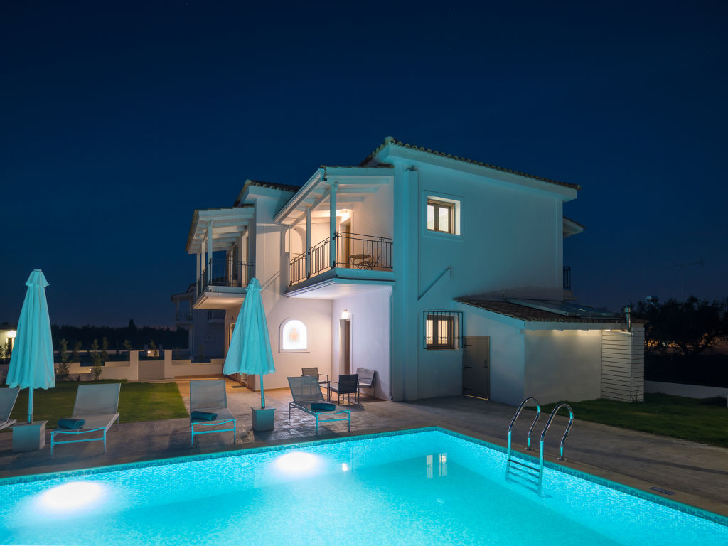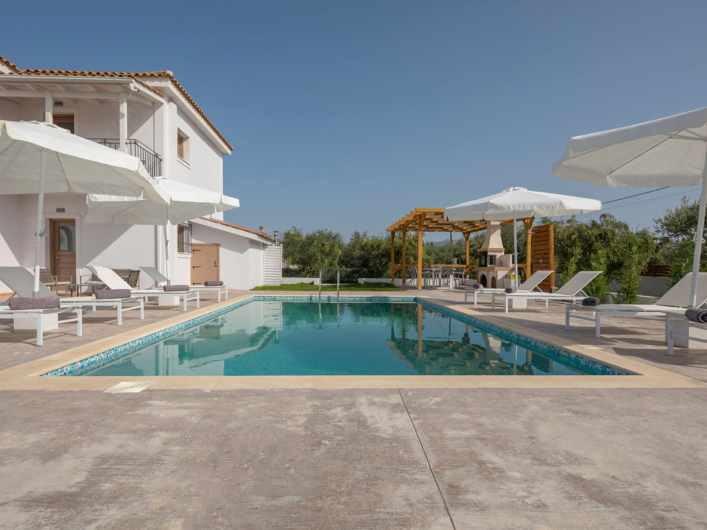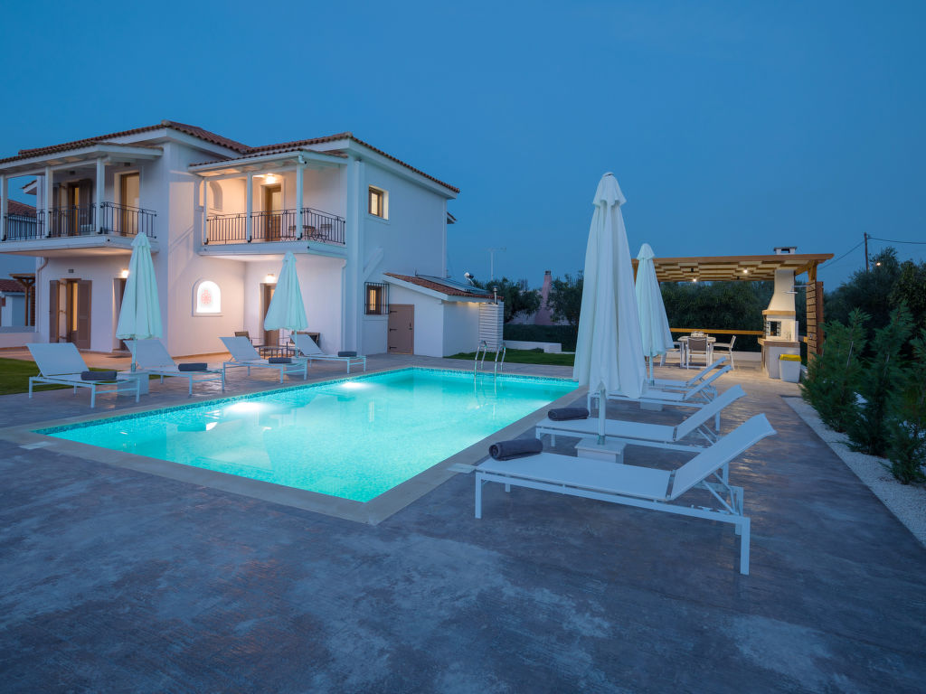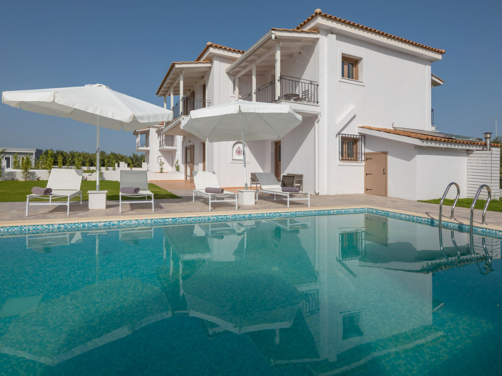 Sehr moderne, alleinstehende Villa "Melograno II", auf 2 Stockwerken, Baujahr 2010, renoviert im Jahre 2018, umgeben von Bäumen, Wiesen und Feldern. Am Ortsrand, 4 km vom Zentrum von Laganas, ruhige, sonnige Lage, 4 km vom Meer, 4 km vom Strand. Zur Alleinbenutzung: Grundstück 500 m2, wunderschöner Garten zum Entspannen, Schwimmbad (8 x 5 m, 01.05.-31.10.). Terrasse, Gartenmöbel, Grill. Wäschewechsel 2 mal wöchentlich. Handtuchwechsel 2 mal wöchentlich. Wohnungsreinigung 2 mal wöchentlich. Parkplatz (für 2 Autos) beim Haus. Supermarkt 2 km, Restaurant 1 km, Bäckerei 1 km, Café 1 km, Sandstrand "Laganas" 4 km. Jacht-Hafen 8 km. Bitte beachten: Fahrzeug empfohlen. Geeignet für Familien, Babyausstattung auf Anfrage (inkl.). Der Besitzer akzeptiert keine Jugendgruppen. Die Wohnung befindet sich in einer für den Verkehr begrenzt zugänglichen Zone (ZTL). In diesem Haus sind weitere Ferienwohnungen mietbar.