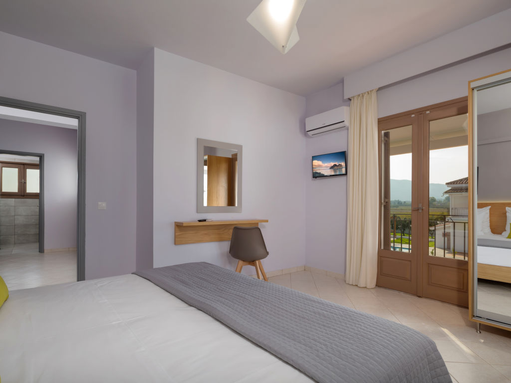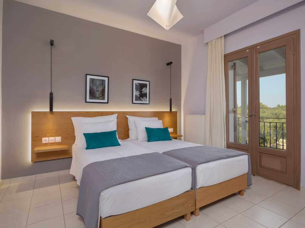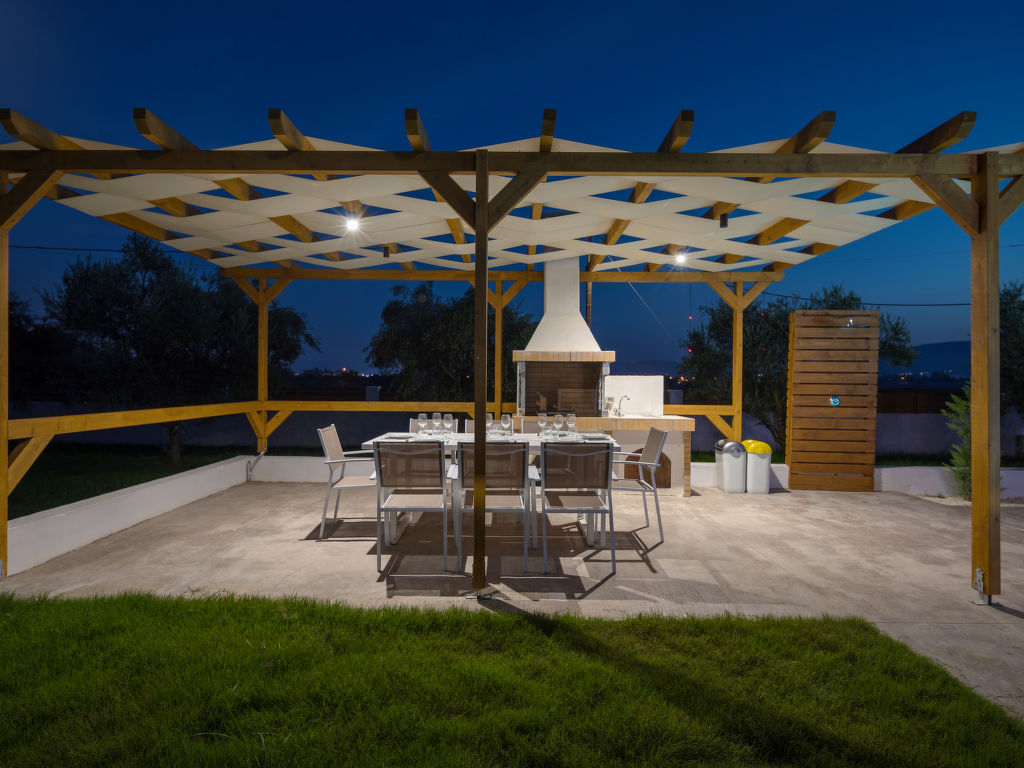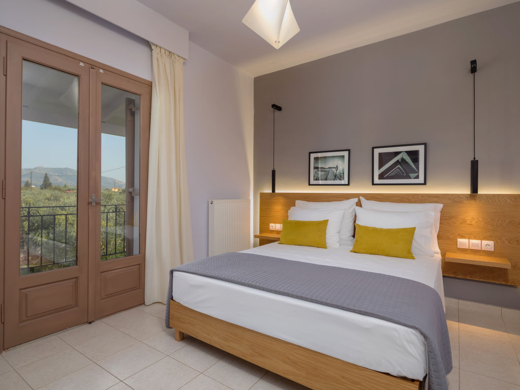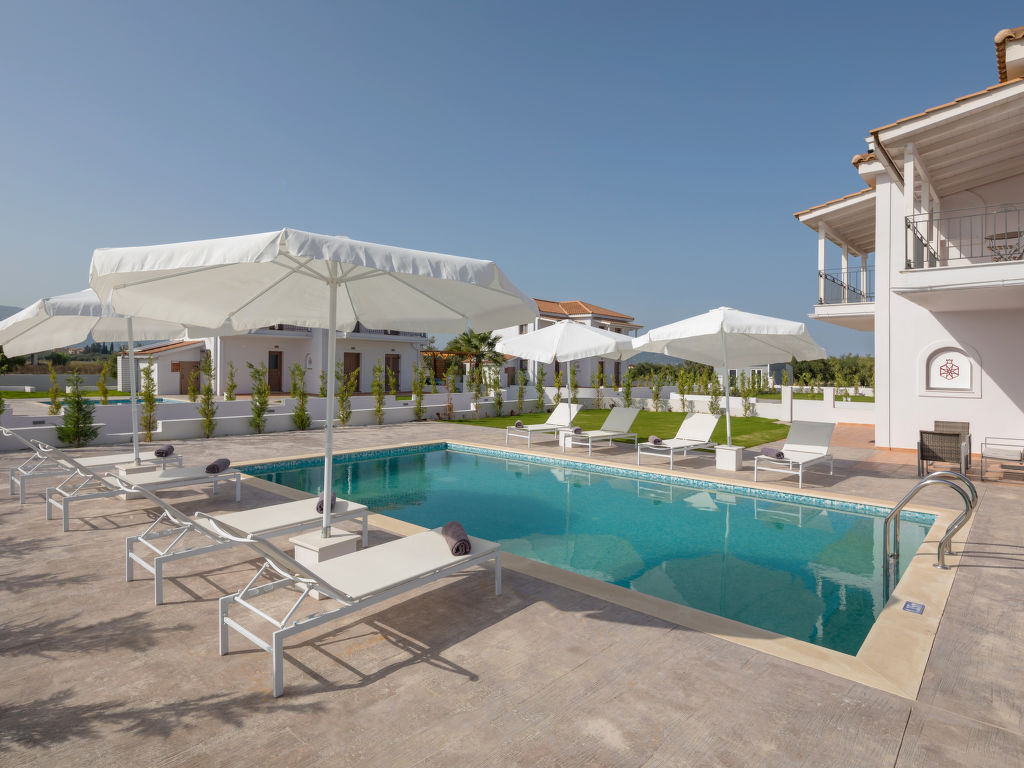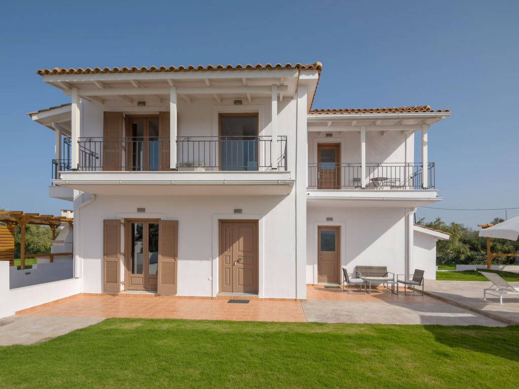 Sehr moderne, alleinstehende Villa "Melograno II", auf 2 Stockwerken, Baujahr 2010, renoviert im Jahre 2018, umgeben von Bäumen, Wiesen und Feldern. Am Ortsrand, 4 km vom Zentrum von Laganas, ruhige, sonnige Lage, 4 km vom Meer, 4 km vom Strand. Zur Alleinbenutzung: Grundstück 500 m2, wunderschöner Garten zum Entspannen, Schwimmbad (8 x 5 m, 01.05.-31.10.). Terrasse, Gartenmöbel, Grill. Wäschewechsel 2 mal wöchentlich. Handtuchwechsel 2 mal wöchentlich. Wohnungsreinigung 2 mal wöchentlich. Parkplatz (für 2 Autos) beim Haus. Supermarkt 2 km, Restaurant 1 km, Bäckerei 1 km, Café 1 km, Sandstrand "Laganas" 4 km. Jacht-Hafen 8 km. Bitte beachten: Fahrzeug empfohlen. Geeignet für Familien, Babyausstattung auf Anfrage (inkl.). Der Besitzer akzeptiert keine Jugendgruppen. Die Wohnung befindet sich in einer für den Verkehr begrenzt zugänglichen Zone (ZTL). In diesem Haus sind weitere Ferienwohnungen mietbar.