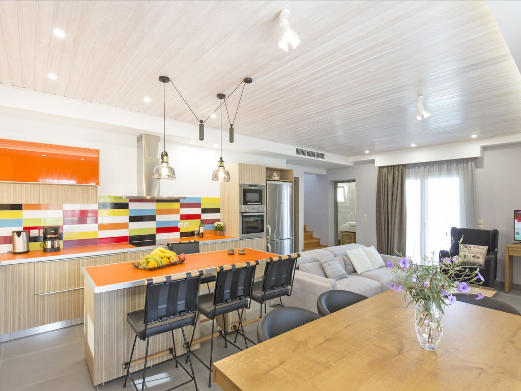 Schöne, alleinstehende, komfortable Villa "Castello", auf 2 Stockwerken, Baujahr 2017. Im Ortsteil Paleokastro, 6 km vom Zentrum von Samos Town, ruhige, sonnige Lage, 4.7 km vom Meer, 4.7 km vom Strand. Zur Alleinbenutzung: Schwimmbad eckig (20 m2, 150 cm tief, 01.04.-31.10.). Aussendusche. Wohnungsreinigung 2 mal wöchentlich. Parkplatz (für 3 Autos) beim Haus. Lebensmittelgeschäft, Supermarkt, Restaurant, Bar, Bäckerei, Café 800 m, Kieselstrand "Charavgi" 4.7 km. Nahe gelegene Sehenswürdigkeiten: Samos Wine Museum 5.2 km, Archaeological Museum of Vathy 6.1 km, Natural History Museum of Aegean 12.1 km, Archaeological Museum of Pythagorion 10.6 km, Pythagoras Caves 50.7 km. Bitte beachten: Fahrzeug empfohlen. Geeignet für Familien, Babyausstattung auf Anfrage (inkl.). Jugendgruppen nur auf Anfrage.